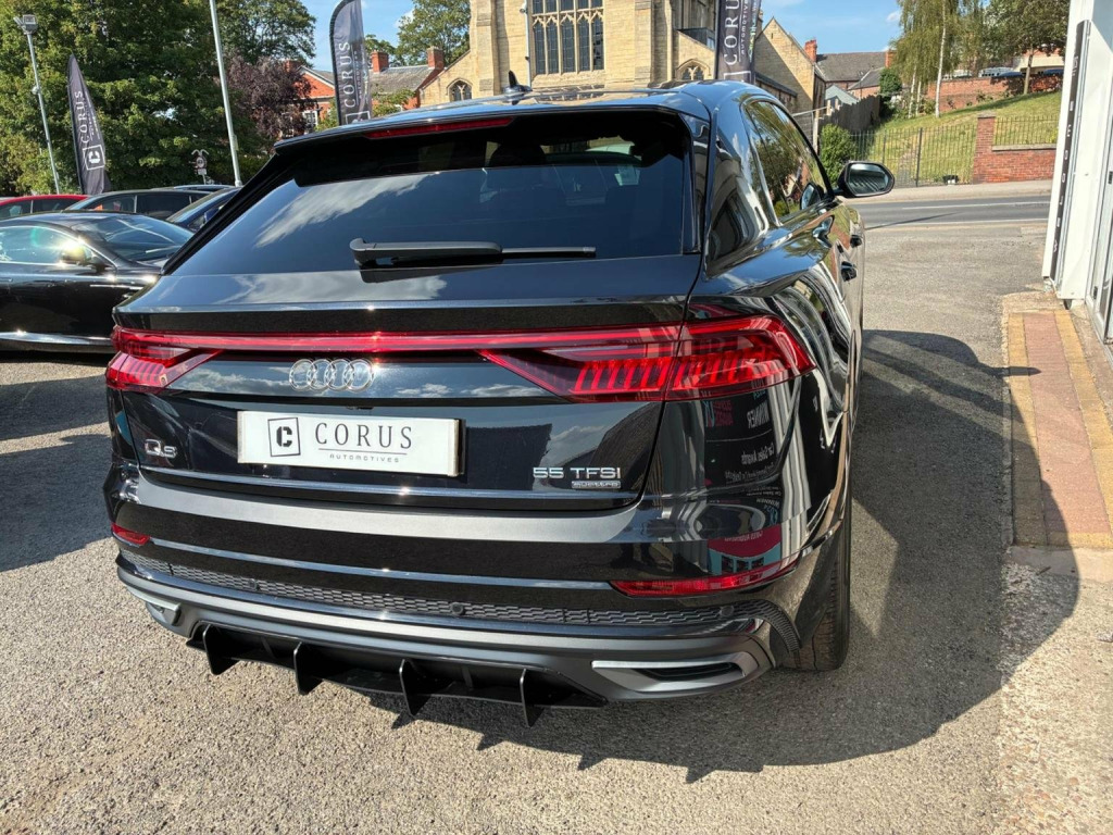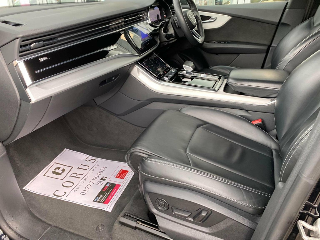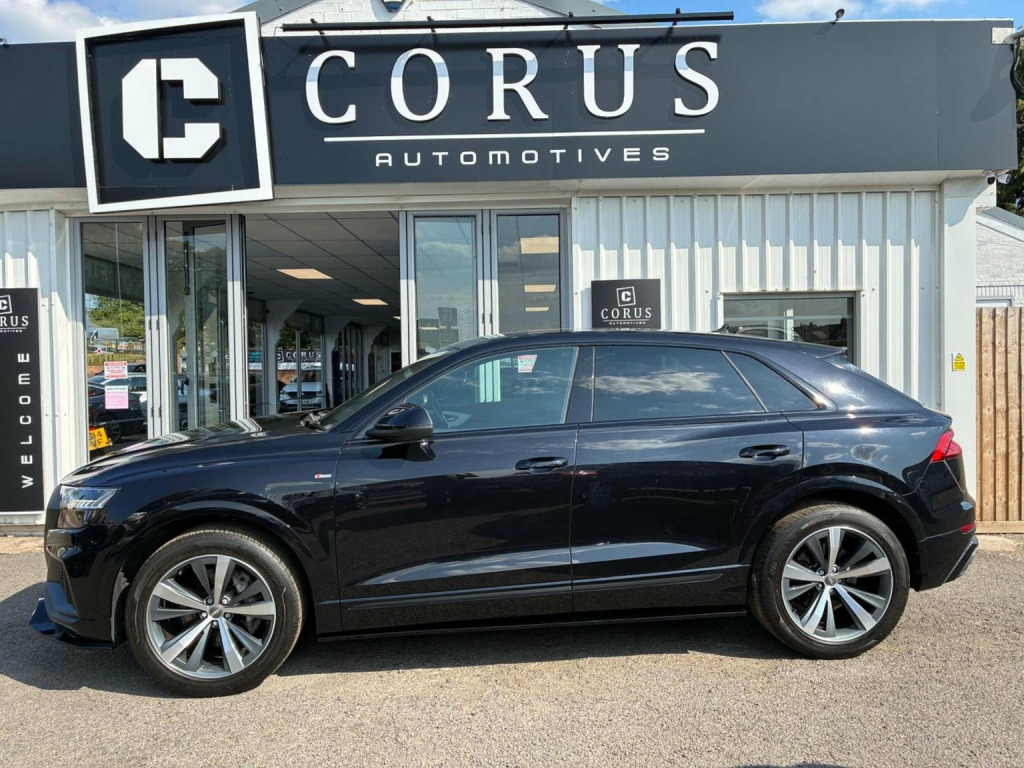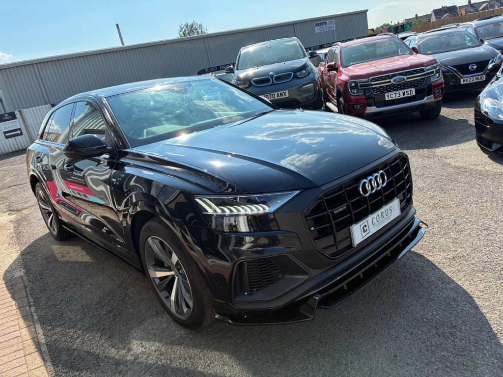 This 2020 Audi Q8 TFSI V6 S line boasts a clear vehicle history, offering you peace of mind. This impressive four wheel drive model is powered by a 3.0 litre petrol engine, meeting Euro 6 emissions standards. It comes equipped with a luxurious Bang and Olufsen 3D Advanced Sound System, an Extended Leather Package, and stylish 21 inch alloy wheels in a contrasting grey star design. For your comfort, it features heated front seats and deluxe 2 zone electronic climate control. Experience exhilarating performance with a rapid 0 to 62mph acceleration time of just 5.9 seconds, demonstrating its capability compared to similar vehicles. The Q8 also offers substantial boot space, making it practical for all your needs. With a towing weight of 2800 kg, this S line variant is as versatile as it is sophisticated. This car comes with full service history and has just had a fresh service by ourselves and a 200 point health check in our workshop. Included in the preparation we also do a full electronic diagnostic health check with a printout for peace of mind. We have also had the car through our bodyshop for inspection and quality checks, All our cars come fully valeted including a full polish and wax. Please contact a member of our team to arrange a private viewing appointment at our forecourt in Retford, Nottinghamshire . With all main dealership facilities, we offer extremely competitive part exchange prices, finance options and nationwide delivery at a time convenient to you!, # Every Vehicle comes with 3 months warranty as standard and breakdown cover and a full Hpi Certificate # please check specifications prior to purchase