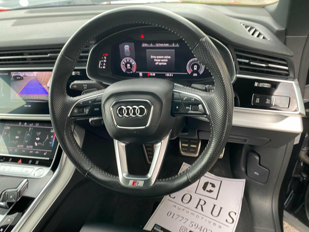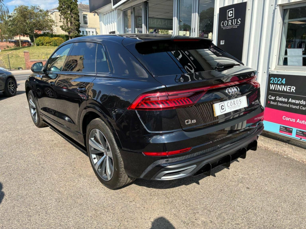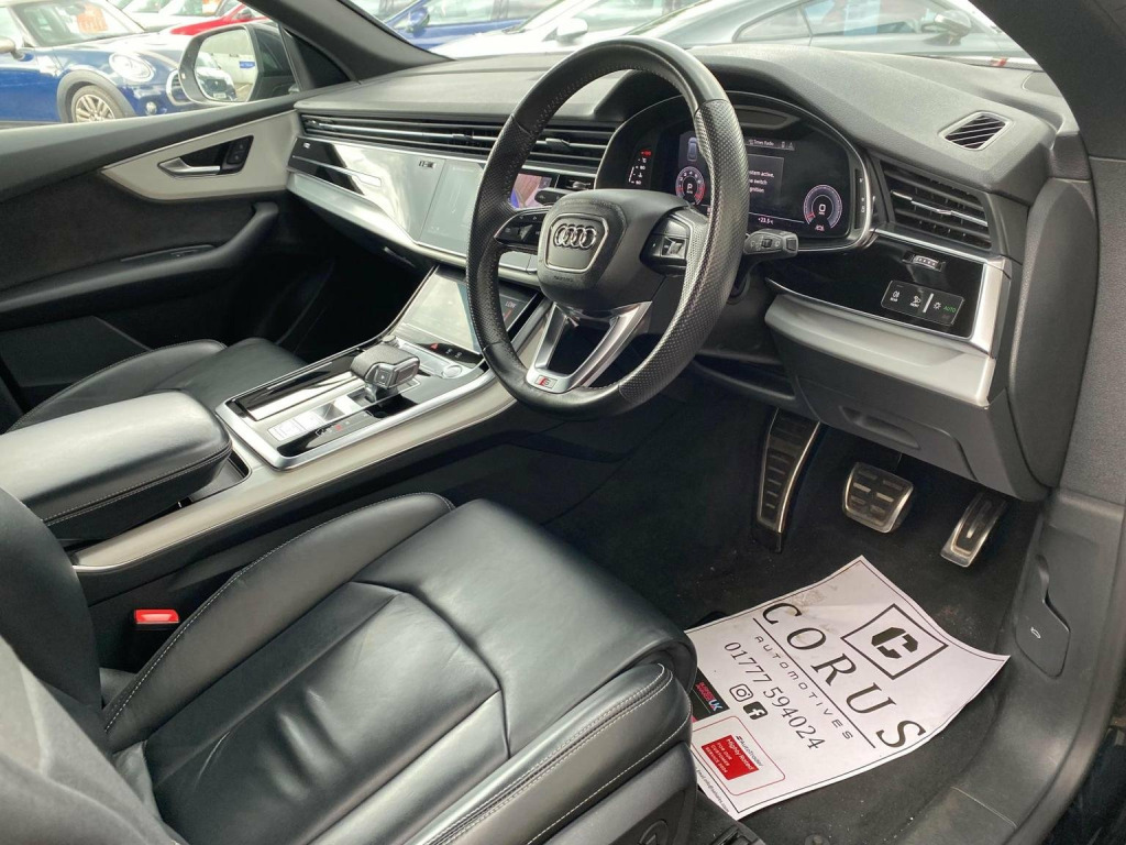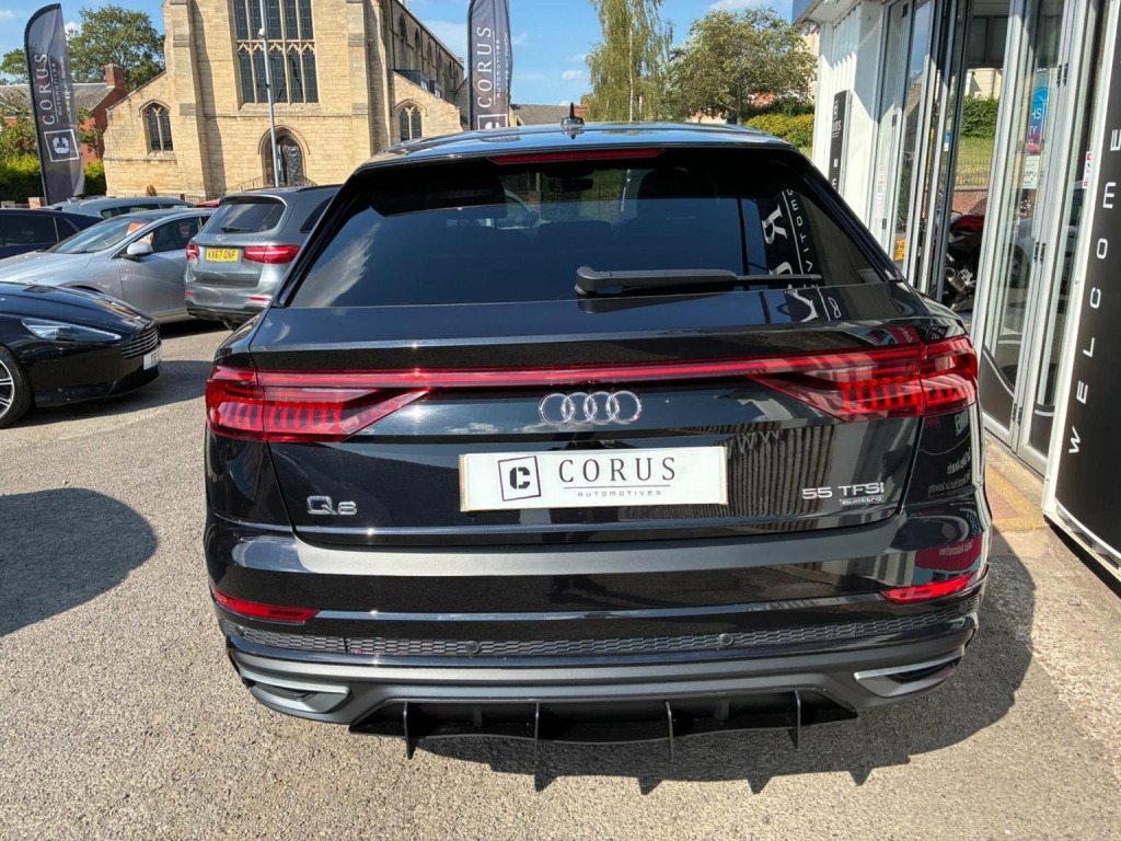 This 2020 Audi Q8 TFSI V6 S line boasts a clear vehicle history, offering you peace of mind. This impressive four wheel drive model is powered by a 3.0 litre petrol engine, meeting Euro 6 emissions standards. It comes equipped with a luxurious Bang and Olufsen 3D Advanced Sound System, an Extended Leather Package, and stylish 21 inch alloy wheels in a contrasting grey star design. For your comfort, it features heated front seats and deluxe 2 zone electronic climate control. Experience exhilarating performance with a rapid 0 to 62mph acceleration time of just 5.9 seconds, demonstrating its capability compared to similar vehicles. The Q8 also offers substantial boot space, making it practical for all your needs. With a towing weight of 2800 kg, this S line variant is as versatile as it is sophisticated. This car comes with full service history and has just had a fresh service by ourselves and a 200 point health check in our workshop. Included in the preparation we also do a full electronic diagnostic health check with a printout for peace of mind. We have also had the car through our bodyshop for inspection and quality checks, All our cars come fully valeted including a full polish and wax. Please contact a member of our team to arrange a private viewing appointment at our forecourt in Retford, Nottinghamshire . With all main dealership facilities, we offer extremely competitive part exchange prices, finance options and nationwide delivery at a time convenient to you!, # Every Vehicle comes with 3 months warranty as standard and breakdown cover and a full Hpi Certificate # please check specifications prior to purchase