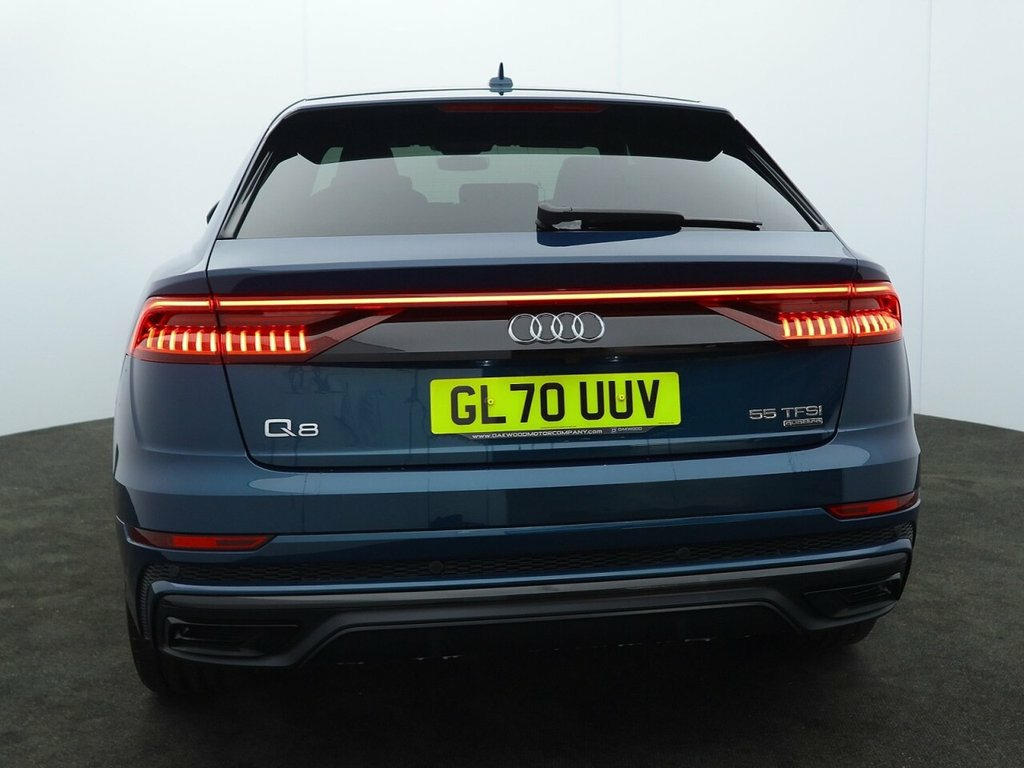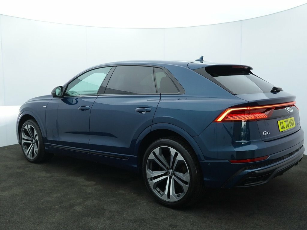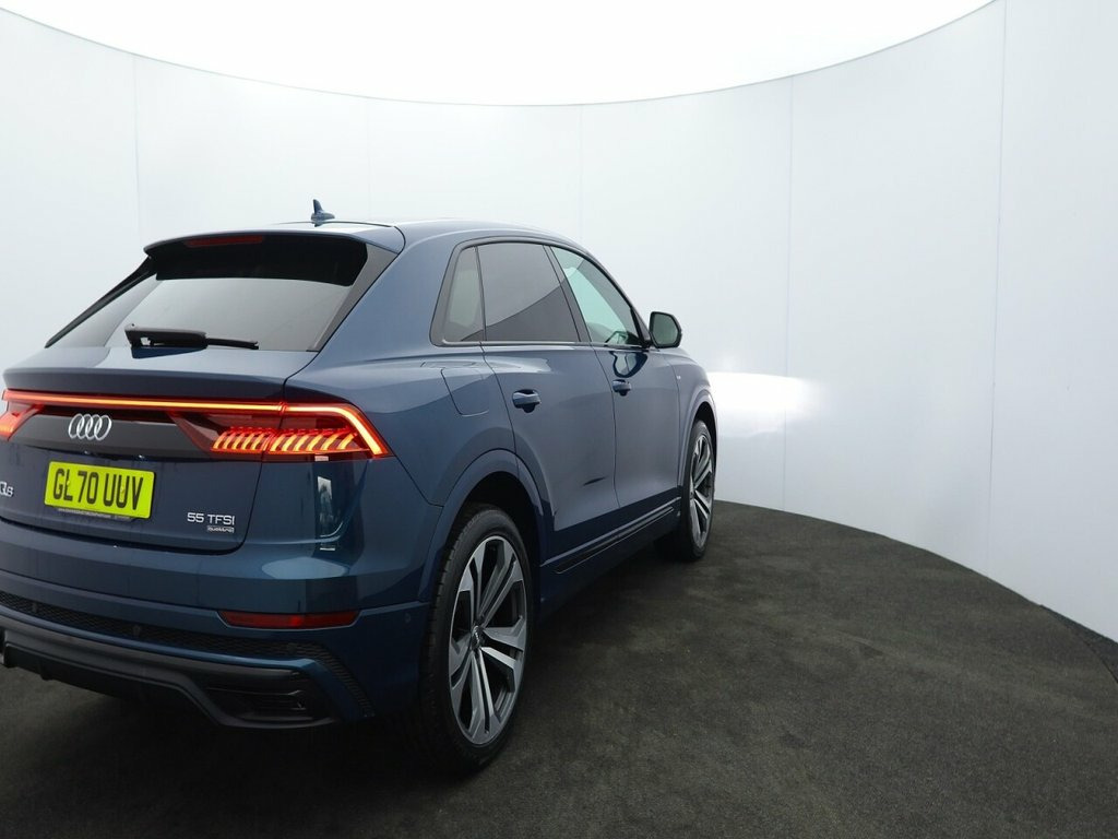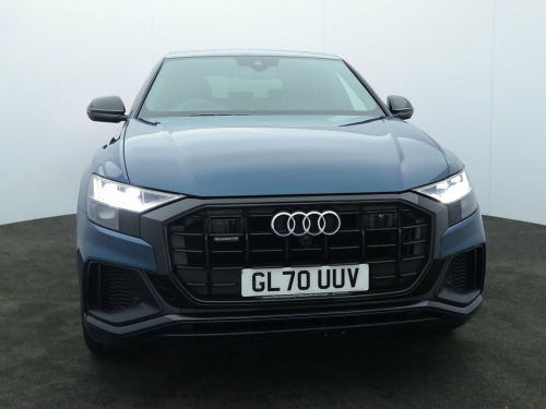 This 2020 Audi Q8 TFSI V6 Vorsprung boasts a long MOT, offering peace of mind for the coming years. This impressive four wheel drive model is equipped with a powerful 3.0 litre petrol engine, meeting Euro 6 emission standards. The Vorsprung trim level ensures a premium experience, complemented by a host of notable features. These include a heated 3 spoke leather sports steering wheel with shift paddles, and Parking System Plus with front and rear sensors, along with a rear view camera to aid manoeuvring. For enhanced driving comfort, the Tour Pack provides adaptive cruise control, and the panoramic glass sunroof brings an airy feel to the cabin. The Audi Q8 TFSI V6 Vorsprung delivers exhilarating performance, accelerating from 0 to 60mph in just 5.9 seconds, demonstrating its dynamic capabilities. Its substantial towing weight of 2800 kg makes it a versatile choice for various needs. The generous boot space further adds to its practicality, ensuring ample room for luggage or equipment. These highlights collectively indicate how this Audi Q8 offers a superior driving experience and greater utility compared to similar vehicles on the market. AMI - Audi Music Interface, Audi Connect, Audi Connect Safety and Service - e-call, Audi Music Interface in the Rear, Audi Phone Box with Wireless Charging, Audi Smartphone Interface, DAB Digital Radio, Emergency Assist, MMI Navigation Plus including MMI Touch, 22in Alloy Wheels - 5-V-Spoke Star Desig, Adaptive Windscreen Wipers with Integrat, Anti-Theft Wheel Bolts and Wheel Looseni, Door Mirrors - Electrically Adjustable -, Electric Windows - Front, Panoramic Glass Sunroof, Platinum Grey Front Spoiler Lip and Diff, Privacy Glass - Dark-Tinted Rear and Rea, Titanium Black Door Mirrors, Titanium Black Styling Pack, Windshield with Heat Insulated Glass, 4-Way Lumbar Support for Front Seats, A