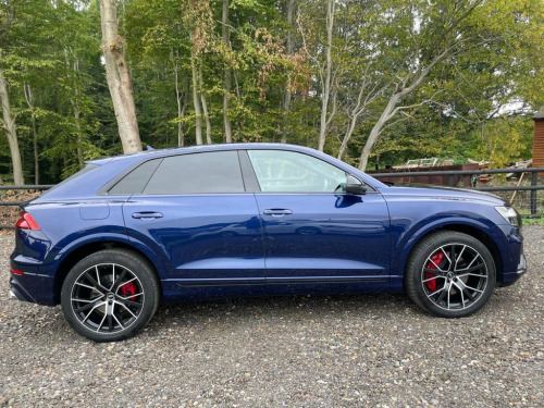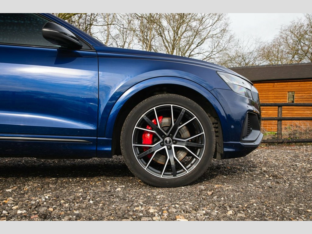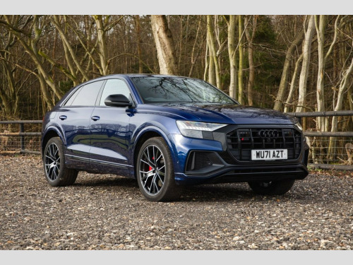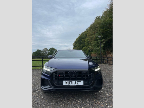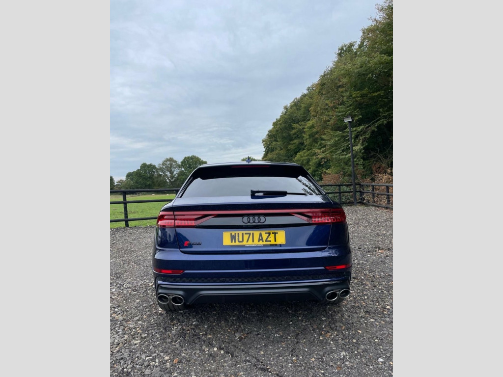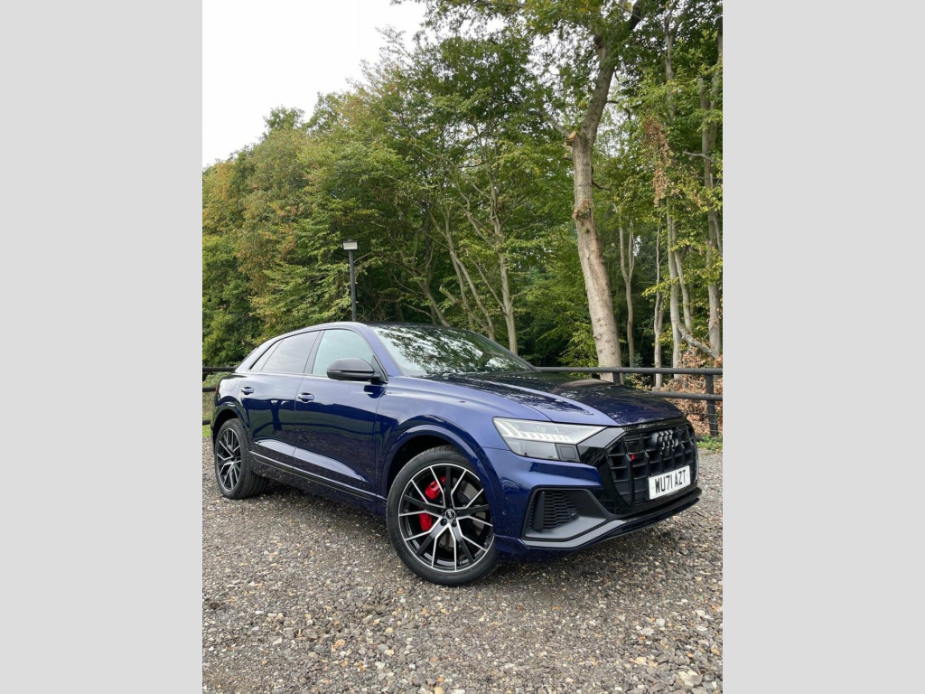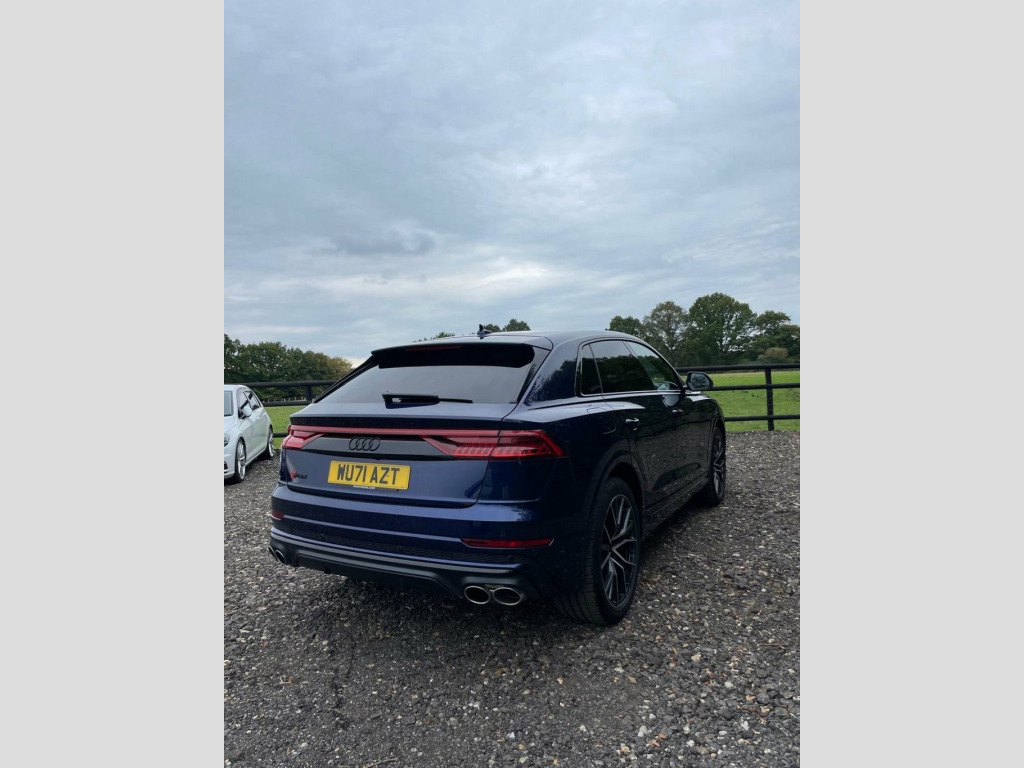 This 2021 Audi SQ8 TFSI V8 Black Edition boasts a full service history, offering peace of mind alongside its impressive performance. As a Euro 6 compliant vehicle, it features a powerful 4.0 litre petrol engine paired with a four wheel drive drivetrain, ensuring excellent traction and capability. The Black Edition trim enhances its striking appearance, while the Comfort and Sound Package adds significant convenience and luxury. This includes keyless entry for effortless access, a luxury branded sound system for an immersive audio experience, and comprehensive parking assistance with a 360 degree camera. Further enhancing usability are the light and rain sensors, which automatically activate the headlights, and a Bluetooth interface for seamless connectivity. The Audi SQ8 TFSI V8 Black Edition truly excels in its performance capabilities, accelerating from 0 to 60mph in a remarkable 4.1 seconds. This rapid acceleration highlights its dynamic prowess compared to many other vehicles in its class. The inclusion of a rear view camera and Parking System Plus with front, rear, and side sensors provides exceptional all round parking assistance, making manoeuvring in tight spaces significantly easier. With a substantial towing weight of 3500 kg, this SQ8 is also a highly practical choice for those needing to tow. Apple CarPlay, Valcona Leather - Super Sport Seats with, Navarra Blue, Comfort and Sound Package, 22in Alloy Wheels - 5-V-Spoke Star Desig, 22in Alloy Wheels - 5-Twin-Spoke Design, 4-Way Lumbar Support for Front Seats, AMI - Audi Music Interface, Adaptive Air Suspension, All-Wheel Steering, Aluminium Window Trims, Anti-Theft Alarm with Tow-Away Protectio, Anti-Theft Wheel Bolts and Wheel Looseni, Audi Beam, Audi Connect Safety and Service - e-call, Audi Connect with Amazon Alexa Integrati, Audi Drive Select with 7 Modes, Audi Pre-Sense Front, Audi Smartphone Interface, Audi Sound System, Audi Virtual Cockpit - 12.3in High Resol, Auto Dimming and Frameless Rear View Mir, Black Cloth Headlinin