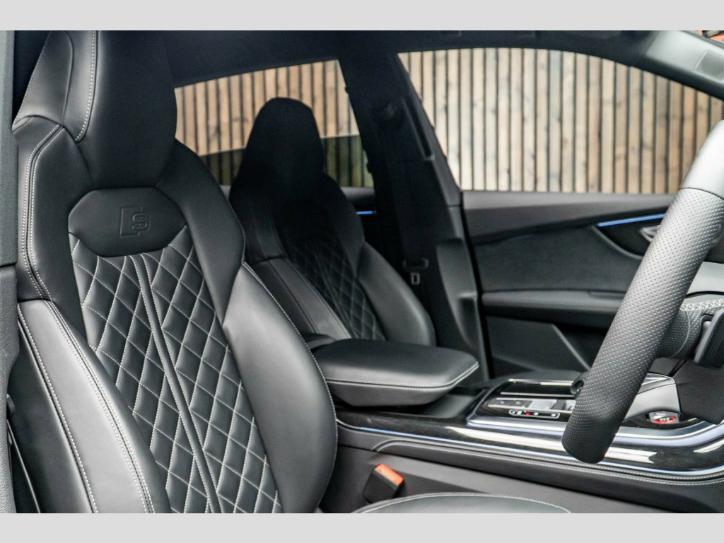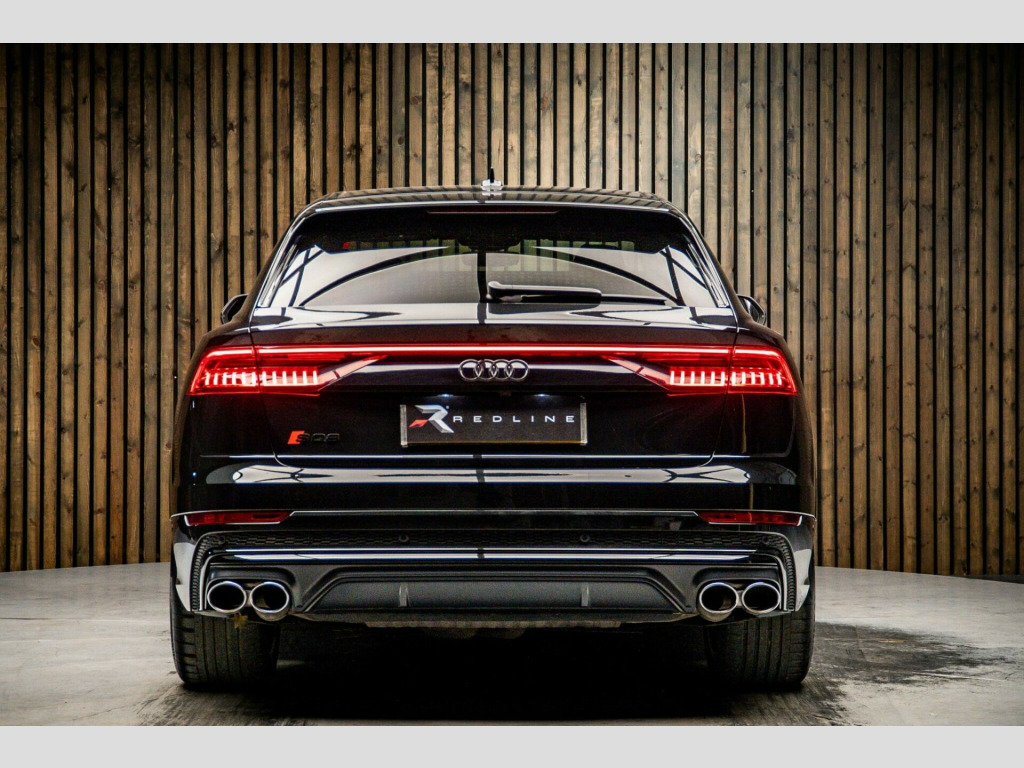 This 2023 Audi SQ8 TFSI V8 Black Edition offers an exceptional blend of performance and luxury, boasting a powerful 4.0 litre petrol engine and a sophisticated four wheel drive system. As a Euro 6 compliant vehicle, it meets stringent emission standards, and with a towing weight of 3500 kg, it is well equipped for a variety of needs. Inside, you'll find electrically adjustable front seats with a driver memory function, ensuring personalised comfort on every journey. The HD Matrix LED headlights with dynamic front and rear indicators provide excellent visibility, while heated front seats offer warmth during colder months. Stay connected and entertained with the Audi Smartphone Interface, compatible with both Android Auto and Apple CarPlay.Experience exhilarating performance with a rapid 0-62mph acceleration time of just 4.1 seconds, demonstrating its superior capability compared to other vehicles in its class. The deluxe 4-zone automatic climate control ensures all occupants enjoy their preferred temperature, and the generous boot space provides ample room for luggage or shopping. This Black Edition variant further enhances the vehicle's striking appearance and premium feel.. 22in Alloy Wheels - 5-Twin-Spoke Design, 4-Way Lumbar Support for Front Seats, AMI - Audi Music Interface, Adaptive Air Suspension, All-Wheel Steering, Anthracite Black Door Mirrors, Anthracite Black Styling Pack, Anti-Theft Alarm with Tow-Away Protection, Anti-Theft Wheel Bolts and Wheel Loosening Warning, Audi Beam, Audi Connect (3 Year Subscription From New), Audi Connect Safety and Service - e-call, Audi Connect with Amazon Alexa Integration, Audi Drive Select with 7 Modes, Audi Pre-Sense Front, Audi Smartphone Interface, Audi Sound System, Audi Virtual Cockpit - 12.3in High Resolution LCD Display, Auto Dimming and Frameless Rear View Mirror, Black Cloth Headlining, Comfort Front Centre Armrest, Coming-Leaving Home Animations in Front and Rear, Cruise Control with Speed Limiter, DAB Digital Radio, Deluxe 4-Zone Automatic Climate Control, Door Mirrors - Electrically Adjustable - Heated - Folding - Automatically Dimming with Memory Function and Integrated LED Indicators with Kerb View Function for Passenger Side, Driver - Front Passenger - Front Side and Curtain Airbag System, ESC - Electronic Stabilisation Control inc ABS - ASR and EDL, Electric Windows - Front, Electrically Adjustable Front Seats with Driver Memory Function, Electromechanical Parking Brake, Electromechanical Power Steering, First Aid Kit and Warning Triangle, Front Sun Visors with Illuminated Vanity Mirrors, Front and Rear Floor Mats, Gloss Black Finish for the Exterior Audi Rings and Q8 Logos without Engine Badging, HD Matrix LED Headlights and Dynamic Front and Rear Indicators, Headlight Washers, Heated Front Seats, Hill Descent Control, Hill Hold Assist, ISOFIX Child Seat Mounting for Front Passenger, Illuminated Door Sill Trims with S Line Logo, Inlays - Polished Oak with Grey Finish, Keyless Go with Remote Central Locking, LED Interior Ambient Lighting, Lane Departure Warning, Light and Rain Sensor, Luggage Compartment Sill Protection in Stainless Steel, MMI Navigation Plus including MMI Touch, Natural Voice Recognition, Operating Buttons in Black - Glass Look, Parking System Plus with 360 Degree Display - Front - Rear and Side Sensors, Pedals in Stainless Steel, Platinum Grey Front Spoiler Lip and Diffuser Insert with Honeycomb Grid in Black, Power Operated Tailgate, Privacy Glass - Dark-Tinted Rear and Rear-Side Windows - From B-Pillar Backwards, Quattro with Self-Locking Centre Differential, Rear Bench Seat Plus, Rear-View Camera, S Specific Dual-Branch Chrome Tailpipes on Both the Left and Right, S Specific Front and Rear Bumpers, S Specific Side Skirts in Selenite Silver - Matt, Seat Belt Monitoring, Side Air Inlet Grilles in Titanium Black - Matt, Signature LED Daytime-Running Lights, Standard Pedestrian Protection Measures, Steering Wheel - 3-Spoke Leather-Multi-function-Flat Bottomed-Sports-Shift Paddles, Tool Kit, Trim and Underbody Protection in Matt Selenite Silver, Tyre Pressure Loss Indicator, Tyre Repair Kit, Upper and Lower Interior Elements in Leather, Windshield with Heat Insulated Glass, 22in Alloy Wheels - 5-V-Spoke Star Design - Gloss Anthracite Black, Mythos Black Metallic.