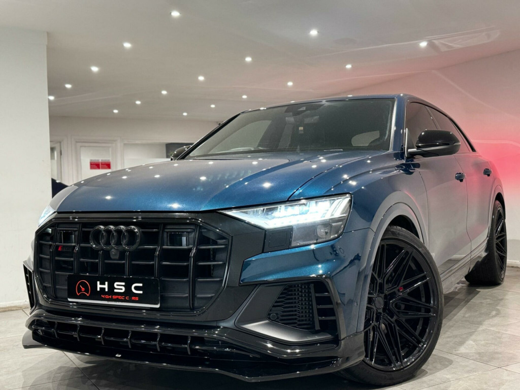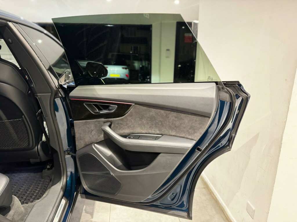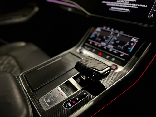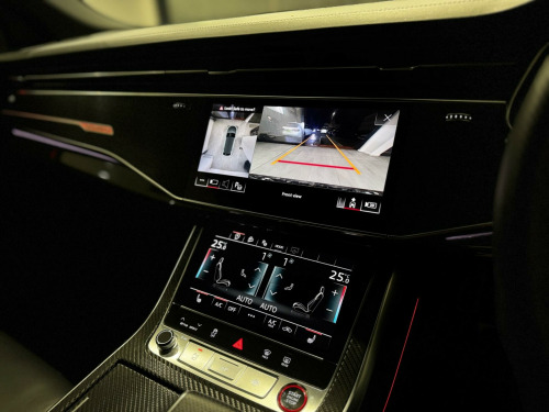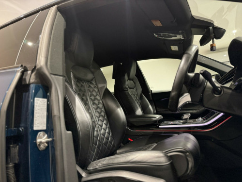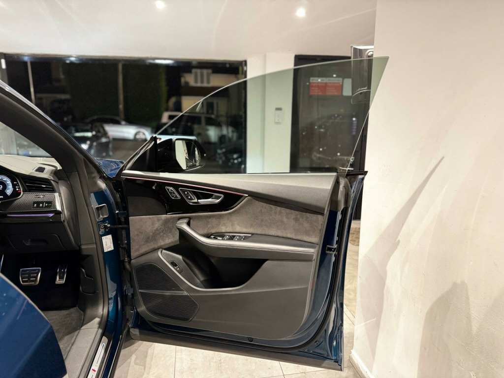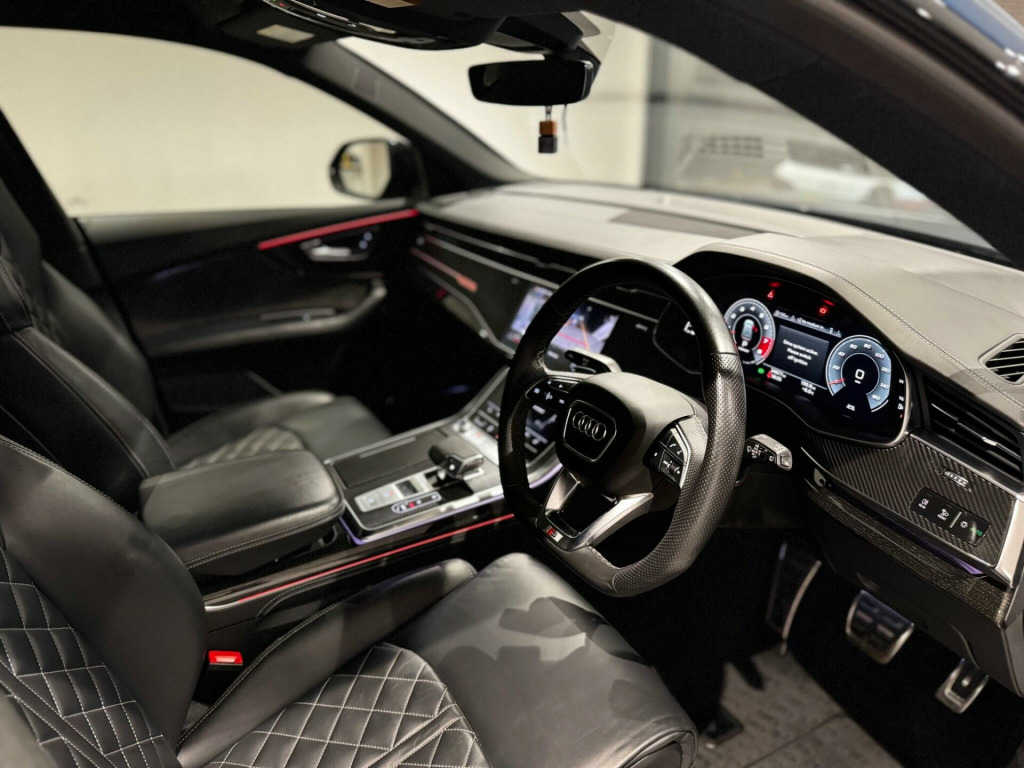 AN IMMACULATE EXAMPLE OF AN AUDI SQ8, FINISHED in alloy wheels - 5-v-spoke star design - gloss anthracite black, 22in alloy wheels - 5-parallel-spoke design - contrasting grey - partly polished, comfort and sound package, valcona leather - super sport seats with s embossed logo - black, 22in alloy wheels - 5-twin-spoke design, 4-way lumbar support for front seats, ami - audi music interface, adaptive air suspension, all-wheel steering, aluminium window trims, anti-theft alarm with tow-away protection, anti-theft wheel bolts and wheel loosening warning, audi beam, audi connect, audi connect safety and service - e-call, audi drive select with 7 modes, audi phone box with wireless charging, audi pre-sense front, audi smartphone interface, audi sound system, audi virtual cockpit - 12.3in high resolution lcd display, auto dimming and frameless rear view mirror, black cloth headlining, comfort front centre armrest, coming-leaving home animations in front and rear, cruise control with speed limiter, dab digital radio, deluxe 4-zone automatic climate control, door mirrors - electrically adjustable - heated - folding - automatically dimming with memory function and integrated led indicators with kerb view function for passenger side, driver - front passenger - front side and curtain airbag system, esc - electronic stabilisation control inc abs - asr and edl, electric windows - front, electrically adjustable front seats with driver memory function, electromechanical parking brake, electromechanical power steering, first aid kit and warning triangle, front sun visors with illuminated vanity mirrors, front and rear floor mats, hd matrix led headlights and dynamic front and rear indicators, headlight washers, heated front seats, hill descent control, hill hold assist, isofix child seat mounting for front passenger, illuminated door sill trims with s line logo, keyless go with remote central locking, lane departure warning, light and rain sensor, luggage compartment sill protection in stainless steel, mmi navigation plus including mmi touch, natural voice recognition, operating buttons in black - glass look, parking system plus - front and rear sensors, pedals in stainless steel, platinum grey front spoiler lip and diffuser insert with honeycomb grid in black, power operated tailgate, privacy glass - dark-tinted rear and rear-side windows - from b-pillar backwards, quattro with self-locking centre differential, rear bench seat plus, rear-view camera, s specific dual-branch chrome tailpipes on both the left and right, s specific radiator grille frame in selenite silver - matt, s specific side skirts in selenite silver - matt, seat belt monitoring, side air inlet grilles in titanium black - matt, signature led daytime-running lights, standard pedestrian protection measures, steering wheel - 3-spoke leather-multi-function-flat bottomed-sports-shift paddles, titanium black door mirrors, tool kit, trim and underbody protection in matt selenite silver, tyre pressure loss indicator, tyre repair kit, upper and lower interior elements in leather, windshield with heat insulated glass