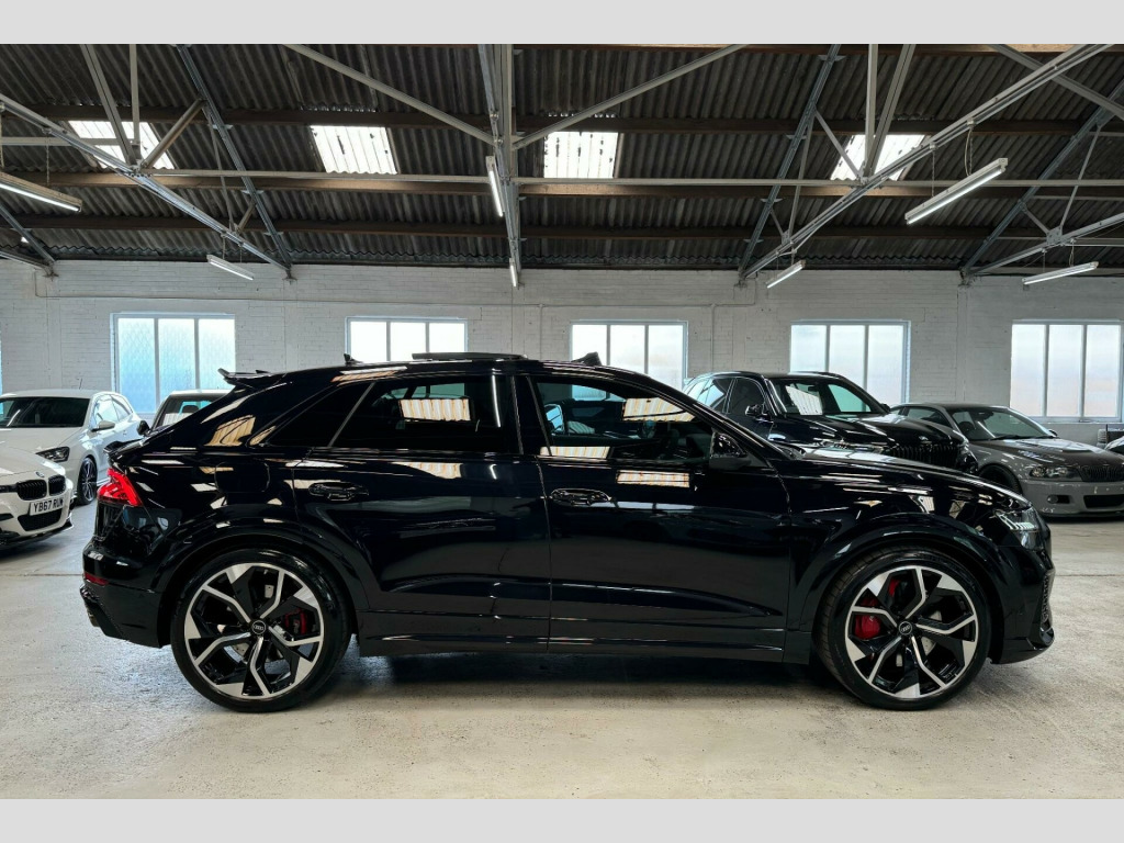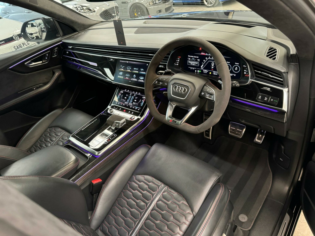 Stunning example, high spec, 2 former keeper, just valeted and detailed to excellent condition, all our vehicles are pre-inspected and prepared to the highest standard before sale, this vehicle has been very well maintained with full service history, just had a full service carried out at Audi, MOT, next due 05/12/2026, nice tidy example, drives very well, free warranty on purchase, viewing highly recommended any inspection welcome, Indoor showroom, appointment based onlySpecPanroof 360 camera Parking assist pack City assist pack Soft close doors Bang & Olfusen sound system Heated and cooled massage seats Rear heated seats Rear blinds Rs sports exhaust system Red RS alcantara styling pack Miltek sports cat downpipe Stage 2 custom remap Maxton rear spolier Just been serviced by Audi d paint brake calipers with rs logo, rs styling pack - red, perforated valcona leather - super sport seats - black with express red stitching, rs steel brakes with red calipers, 23in alloy wheels - 5-y-spoke rotor design - gloss anthracite black with diamond finish, 360 degree camera, 4-way lumbar support for front seats, 4-zone automatic air conditioning, 48 volt mild hybrid technology, abs - anti-lock braking system, ami - audi music interface, asr - anti slip regulation, adaptive cruise assist, adaptive windscreen wipers with integrated washer jets, advanced key, air quality pack, all-wheel steering, aluminium window trims, anti-theft alarm with tow-away protection, anti-theft wheel bolts and wheel loosening warning, audi beam, audi connect, audi connect safety and service - e-call, audi hd matrix led headlights in rs specific design with dynamic front and rear indicators, audi music interface in the rear, audi phone box with wireless charging, audi pre-sense front, audi pre-sense rear, audi side assist, audi smartphone interface includes wireless apple carplay, audi virtual cockpit - 12.3in high resolution lcd display, auto dimming and frameless rear view mirror, bang and olufsen premium sound system, camera based traffic sign recognition, city assist pack, collision avoidance assistant, comfort front centre armrest, comfort and sound package, coming-leaving home animations in front and rear, cross traffic assist - front, cross traffic assist - rear, dab digital radio, door mirrors - electrically adjustable - heated - folding - automatically dimming with memory function and integrated led indicators with kerb view function for passenger side, double sunvisor, driver - front passenger - front side and curtain airbag system, driver and front passenger memory function for the electrically adjustable front seats, edl - electronic differential lock, esc - electronic stabilisation control, electric sunblinds for the rear side windows and manual sunblind for the rear window, electric windows - front, electromechanical active roll stabilisation, electromechanical parking brake, electromechanical power steering - speed-sensitive provides a precise steering feel at high speeds and excellent assistance when parking., emergency assist, exit warning, extended led interior lighting package - multi-coloured, exterior audi rings and rs q8 logos with gloss black finish, first aid kit and warning triangle, head-up display, headlight washers, headlining - black alcantara, heated front and outer rear seats, hill descent control, hill hold assist, isofix child seat mounting for front passenger and rear outer seats, illuminated door sill trims with rs logo, inlays - polished oak with grey finish, lane departure warning, light and rain sensor, luggage compartment sill protection in stainless steel, mmi navigation plus including mmi touch, natural voice recognition, operating buttons in black - glass look, panoramic glass sunroof, parking system plus - front and rear sensors, pedals in stainless steel, power door closure, power operated tailgate, pre-sense basic, predictive efficiency assistant, privacy glass - dark-tinted rear and rear-side windows - from b-pillar backwards, rs 3-spoke flat-bottomed leather multi-function steering wheel, rs adaptive air suspension, rs audi drive select, rs badges on the front wings, rs manhattan grey front spoiler lip and rear diffuser insert, rs specific bumpers in full body colour, rs specific styling, rs sport exhaust system, rs steel brakes with black calipers with rs logo, rs styling package - grey, rear bench seat plus, seat belt monitoring, seat ventilation and massage function for front seats, signature led daytime-running lights, standard pedestrian protection measures, steering column - electrically adjustable with memory, titanium black door mirrors, titanium black styling pack, tool kit, tour pack, turn assist, tyre pressure loss indicator, tyre repair kit, upper and lower interior elements in leather, windshield with heat insulated glass, quattro all-wheel drive with sport differential