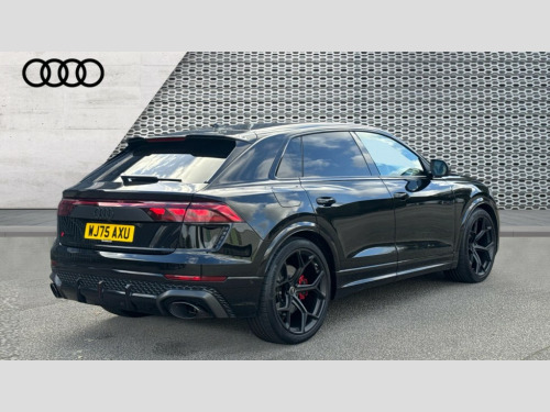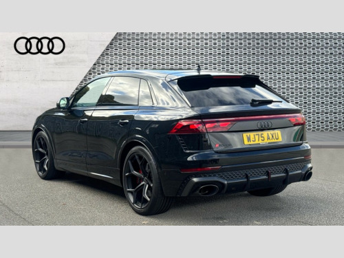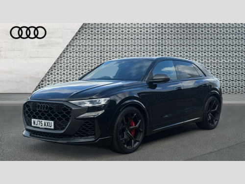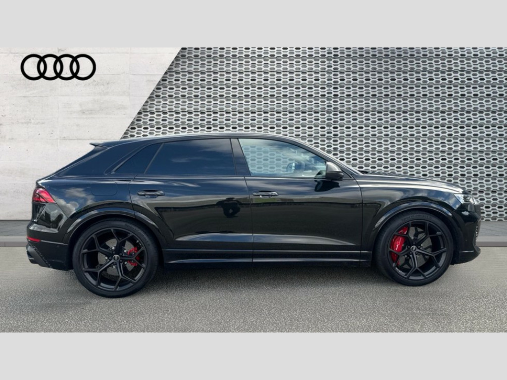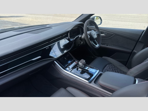 Audi Rs Q8 TFSI 640 Qtro Perform Carb Vorsprung 5dr Tiptronic 360 degree view camera, All wheel steering, Audi active lane assist, Audi connect safety and service (e-call), Audi connect with Amazon Alexa Integration, Audi virtual cockpit - 12.3" high resolution LCD display with fully customisable instrument cluster and RS specific menus and options, Automatic start/stop system, Bluetooth interface, Convenience key, Electrically opening and closing luggage compartment cover, Electro-mechanical PAS, Head up Display, Intersection assist, MMI navigation plus with MMI touch, Natural voice recognition, On board computer, Operating buttons in black, glass look with haptic feedback, Park assist with parking system plus including 360 degree display with front, rear and side parking sensor, Power latching doors, Power operated tailgate, RS Audi drive select, Service interval indicator, Smartphone interface includes wireless Apple carplay/Android Auto, Speed limiter, 48V Mild hybrid technology, Electromechanical active roll stabilisation, Quattro all wheel drive with sport differential, RS specific Adaptive air suspension, Audi app store, Audi music interface - front 2 USB-C ports with charger and data functions, Aux-in socket, Bang & Olufsen 3D Premium Sound System with Dolby atmos, 17 speakers + centre speaker and subwoofer/ 16 channel amplifier with 730 watts sound output, DAB Digital radio, Audi HD Matrix LED headlights in RS specific design with Audi laser light, Auto dimming frameless rear view mirror, Digital OLED rear combination lamps, Electric front+rear windows, Electrically folding auto dimming/adjustable/heated door mirrors with memory function, LED side indicators and kerb view function for passenger side, Headlight washers, Heat insulating glass in windshield, Illuminated door sill trims with RS logo, LED 3rd brake light, LED entry lighting with "RS performance" projection in front and rear, LED signature daytime running lights, Matt carbon door mirrors, Preparation for trailer hitch, Privacy glass - dark tinted rear and rear side windows from B-pillar backwards, Rain and light sensors, Rear side wing doors, Rear wiper, RS coming/leaving home animations in front and rear, RS sport exhaust system with black exhaust tips, 3 bench rear seats in 2nd row, 3 spoke heated alcantara multi-function sport steering including paddle shift, 4 zone automatic climate control, 4-way lumbar support for front seats, 40:20:40 split folding rear bench seat, Audi phone box light, Black cloth headlining, Double sun visor with illuminated vanity mirror on driver and passenger side extendable, Driver and front passenger seat memory function for electrically adjustable front seats, Electric adjustable steering column with memory functionality, Electric sunblind for the rear side windows and manual sunblind for the rear window, Front head restraints, Front seat ventilation operated through MMI system, Heated front seats, ISOFIX child seat mounting for front passenger seat and 2 outer rear seats with top tether child seat mounting for all 3 rear seats, Net partition, Perforated Valcona leather upholstery + RS front super sports seats + honeycomb pattern with RS embossed logo, Premium air quality system with air ionizer and aromatization, Rear headrests, Seat cushion, Single front passenger seat, Stainless steel pedals, USB port with charge function in the front, City assist pack - RS Q8, Matt carbon/black styling pack - RS Q8, Multi-coloured extended LED interior lighting pack - RS Q8, RS specific styling pack - RS Q8, Technology pro pack - RS Q8, Tour pack with swerve assist - RS Q8, 3 point seatbelts on all seats, Audi pre sense basic, Audi pre sense front, Child locks on rear doors, Driver and front passenger, front side and curtain airbags, Electromechanical parking brake, Electronic Stability Control (ESC) including ABS, ASR and EDL, Front passenger airbag deactivation, Hill descent control, Hill hold assist, Predictive pedestrian protection, Seatbelt monitoring, Tyre pressure loss indicator, Warning triangle and first aid kit, Anti theft alarm with tow away protection, Anti-theft wheel bolts and wheel loosening detection, Immobiliser, Tool kit, Tyre repair kit
