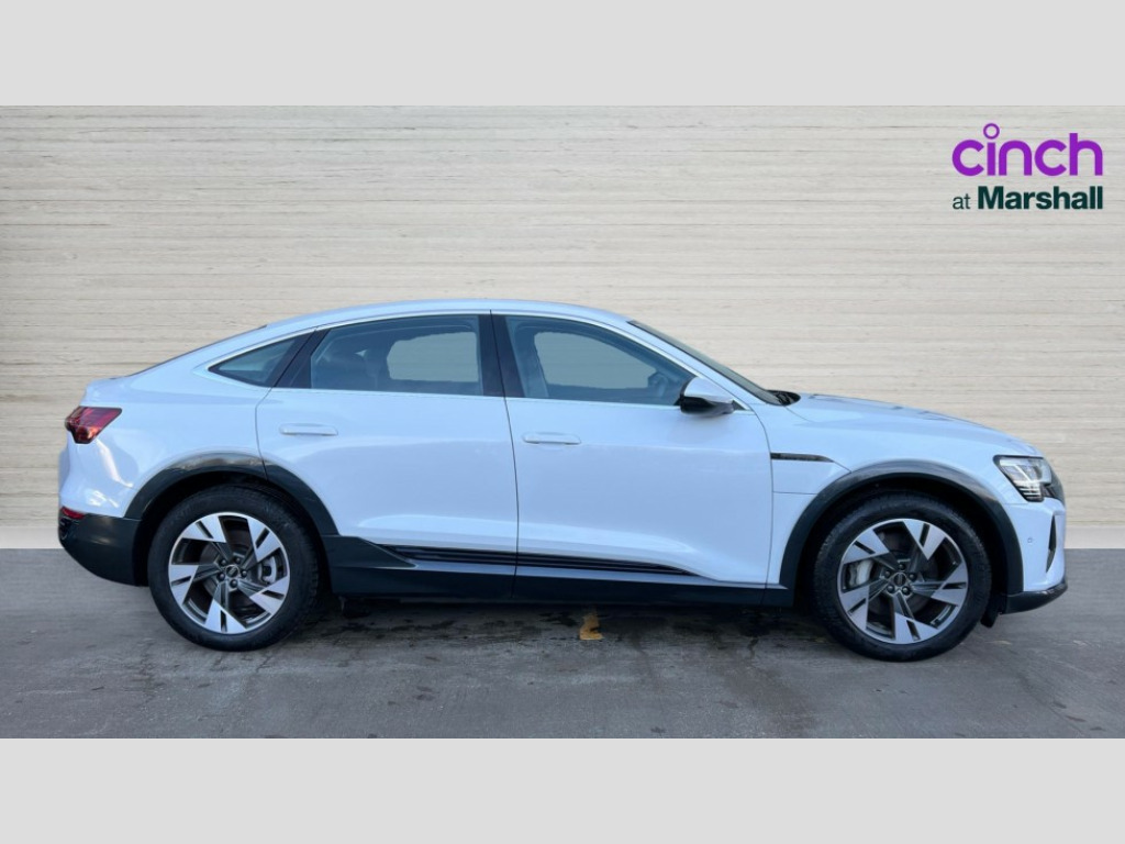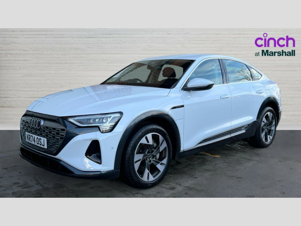Audi Q8 250kW 50 Quattro 95kWh Sport 5dr Auto Audi connect safety and service (e-call), Audi drive select, Audi lane departure warning, Audi parking system plus includes 360 degree display with front and rear sensors, Audi phone box with wireless charging, Audi virtual cockpit, Camera traffic sign recognition, MMI navigation plus with MMI touch, Power operated tailgate, Progressive steering, Rear view camera, Smartphone interface includes wireless Apple carplay/Android Auto, 11KW onboard charger, 6m Type 2 mode 3 charging cable, AC and DC charging access point on drivers side, second AC charging access point on passenger side, Adaptive air suspension, Compact e-tron charging system, 4.5m Type 2 mode 2 charging cable, Household plug type G (GB), Industry plug CEE 32 A/230 V/6 h/long + straight, Quattro all wheel drive, Wall mounted bracket for compact e-tron charging system, Audi music interface with 2 USB ports with charge and data functions, Audi sound system with 6 channel amplifier, 180 watt amplifying capacity and 10 loudspeakers including subwoofer, DAB Digital radio, 3rd brake light, Acoustic windscreen, Audi HD Matrix LED headlights with dynamic front and rear indicators, Auto dimming frameless rear view mirror, Coming/leaving home lighting function, Contrast finish bumpers, Door sill trims with aluminium inlays, LED daytime running lights, LED rear lights, Rear side wing doors, Rear spoiler, Rear wiper, 2 zone automatic air conditioning including comfort remote pre-conditioning, 3 bench rear seats in 2nd row, 3 rear head restraints, 4 spoke multi function leather steering wheel with paddles for recuperation, 4-way lumbar support for front seats, Driver seat memory function, Electrically adjustable front seats, Front centre armrest, Front headrests, Front/rear floor mats, Heated front seats, ISOFIX child seat mounting for passenger seat with front passenger airbag deactivation, Isofix child seat mounting points on outer rear seats, Luggage compartment cover, Luggage compartment floor, Lunar silver cloth headlining, Manually adjustable steering column, Single front passenger seat, Sun visors with illuminated vanity mirrors, Twin leather upholstery, Vehicle inlet Combo 2, Gloss styling pack - Q8, LED interior lighting pack - Q8, 3 point seatbelts on all seats, Active vehicle alerting system (AVAS), Airbag - Front driver and passenger, side airbags and Head airbags, Audi pre sense front and basic, Child locks on rear doors, Convenience key with safelock, Tyre pressure loss indicator, Warning triangle and first aid kit, Anti theft alarm, Anti-theft wheel bolts and wheel loosening detection, Keyless Go, Graphite grey paint finish inlays, 20" x 9.0J 5 arm dynamic design graphite grey alloy wheels, Tool kit