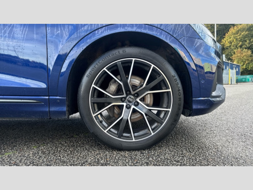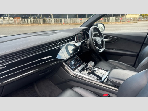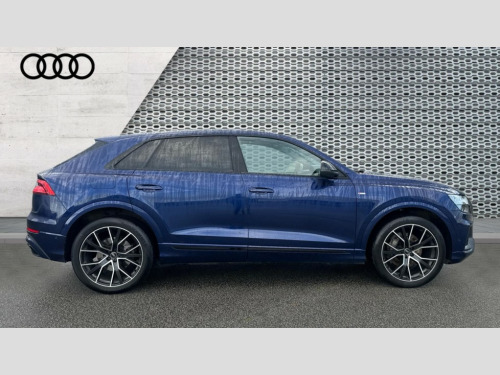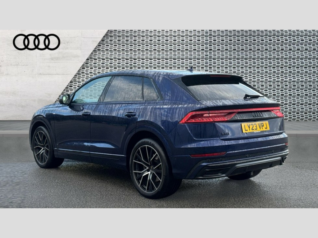 Audi Q8 50 TDI Quattro Black Edition 5dr Tiptronic 10.1" and 8.6" Dual colour touchscreens, Audi connect safety and service (e-call), Audi connect with Amazon Alexa Integration, Audi drive select, Audi parking system plus includes 360 degree display with front and rear sensors, Audi phone box light with wireless charging, Audi virtual cockpit - 12.3" high resolution LCD display with fully customisable instrument cluster, Automatic start/stop system, Electro-mechanical PAS, Low washer fluid indicator, MMI - Multi Media Interface control system, MMI navigation plus with MMI touch, Natural voice recognition, On board computer, Operating buttons in black, glass look with haptic feedback, Power operated tailgate, Rear view camera, Service interval indicator, Smartphone interface includes wireless Apple carplay/Android Auto, 48V Mild hybrid technology, Adaptive sport air suspension, Diesel particulate filter, Quattro all wheel drive with self locking centre differential, Audi music interface with 2 USB ports with charge and data functions, Audi sound system with 6 channel amplifier, 180 watt amplifying capacity and 10 loudspeakers including subwoofer, Aux-in socket, DAB Digital radio, 3rd brake light, Acoustic windscreen, Aluminium window trim, Audi beam, Audi HD Matrix LED headlights with dynamic front and rear indicators, Auto dimming frameless rear view mirror, Black Audi rings and black badging, Coming/leaving home lighting function, Electric front+rear windows, Electrically folding auto dimming/adjustable/heated door mirrors with memory function, LED side indicators and kerb view function for passenger side, Headlight washers, Heat insulating glass in windshield, LED signature daytime running lights, Platinum grey front spoiler lip and diffuser insert with honeycomb grille in black, Privacy glass - dark tinted rear and rear side windows from B-pillar backwards, Rain and light sensors, Rear side wing doors, Rear wiper, 2 zone automatic climate control, 3 bench rear seats in 2nd row, 4-way lumbar support for front seats, 40:20:40 split folding rear bench seat, Audi phone box light, Black cloth headlining, Comfort front centre armrest, Driver seat memory function, Electrically adjustable front seats, Front head restraints, Front/rear floor mats, Heated front seats, ISOFIX child seat mounting for front passenger seat and 2 outer rear seats with top tether child seat mounting for all 3 rear seats, LED interior ambient lighting, Luggage compartment sill protection in stainless steel, Rear centre armrest with 2 cupholders, Rear headrests, Seat cushion displaceable by 100mm in the ratio 60:40, Single front passenger seat, Stainless steel pedals, Sunvisors with illuminated vanity mirrors, 3 point seatbelts on all seats, Audi pre sense front, Child locks on rear doors, Driver and front passenger, front side and curtain airbags, Electromechanical parking brake, Electronic Stability Control (ESC) including ABS, ASR and EDL, Front passenger airbag deactivation, Hill descent control, Hill hold assist, Predictive pedestrian protection, Seatbelt monitoring, Traction control, Tyre pressure loss indicator, Warning triangle and first aid kit, Anti theft alarm with tow away protection, Anti-theft wheel bolts and wheel loosening detection, Immobiliser, Keyless go with remote central locking, Polished oak trim with grey finish inlay, Tool kit, Tyre repair kit