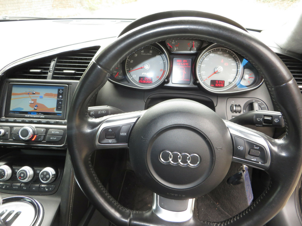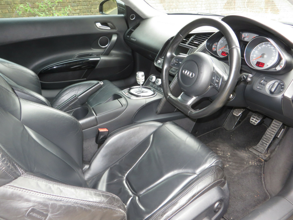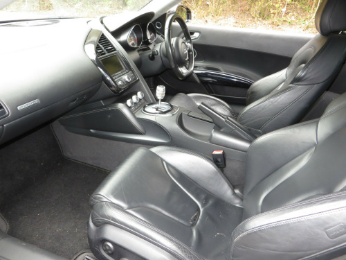 This 2008 Audi R8 4.2 FSI V8 Coupe with Gated manual transmission and quattro all-wheel drive system has just 82500 miles Full Service History and is powered by a petrol engine. It features a sleek coupe body style with 2 seats and 2 doors, making it a stylish yet practical choice. With a MOT that expires on 01/09/2026and ULEZ compliance, this car offers peace of mind for the future. The 19in 5Arm double Spoke Alloy Wheels, colour contrasting sideblades, and aluminium gear knob add to the sporty and luxurious feel of the vehicle. This Audi R8 also comes with electrically adjustable and heated door mirrors, as well as a black roof lining, making it a comfortable and convenient ride for the discerning driver. in 5arm double spoke alloy wheels, colour contrasting sideblades, electrically adjust & heated door mirrors, aluminium gear knob, black roof lining, leather gear knob, micrometallic grey inlay, front side airbags, isofix childseat attachment, radio with single cd & mp3 compatability & 2 memory card slots & 6.5in colour display & 7 loudspeakers with amp, xenon plus headlights with headlight washers & daytime running lights