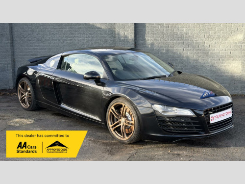 Introducing the exhilarating Audi R8 4.2 FSI V8 Coupe, a masterpiece of engineering and design that perfectly marries performance with luxury. This stunning black coupe, with its sleek lines and aggressive stance, is not just a car; it’s an experience waiting to be had. With a powerful 4.2-litre V8 engine producing an impressive 414 bhp, this beauty can rocket from 0 to 60 mph in just 4.6 seconds, reaching a top speed of 187 mph. The manual transmission and quattro four-wheel drive system ensure that every drive is a thrilling adventure, whether you're navigating winding roads or cruising on the motorway.