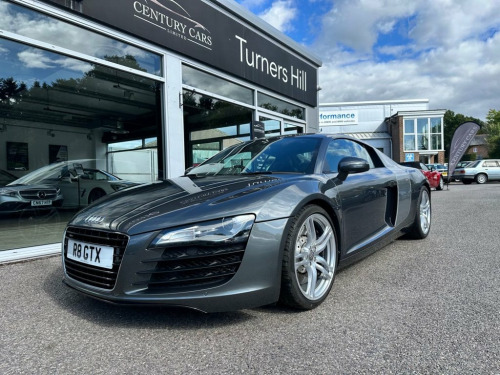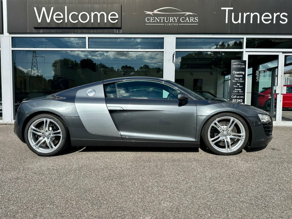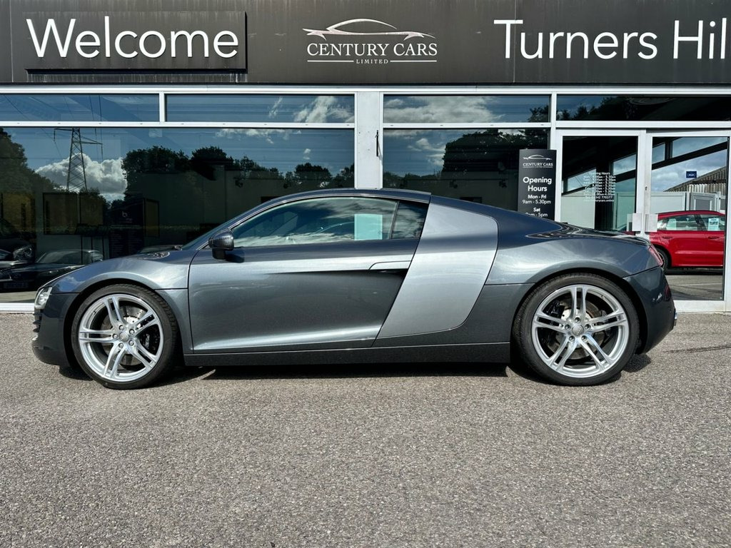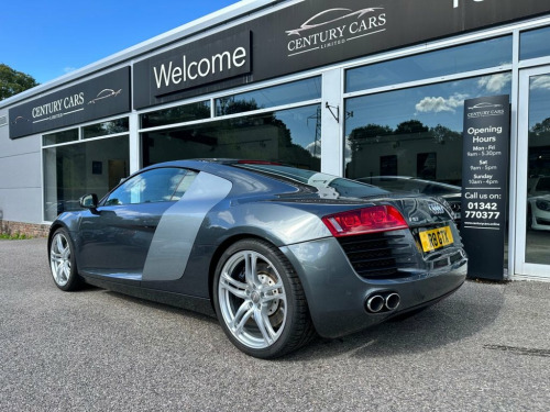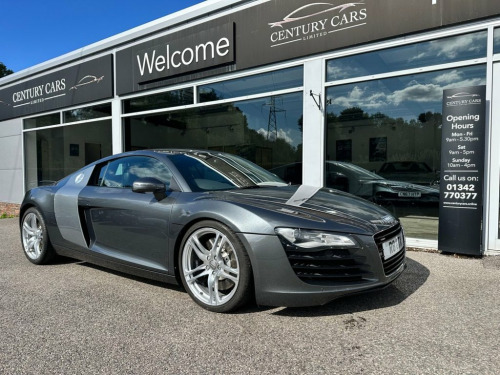 This Audi R8 4.2cc V8 Quattro 6 Speed Manual. Century Cars are proud to offer for sale this truly wonderful example of this desirable R8. A true and total credit to its former keeper who has owned and cherished this for the past 12 years to the very highest of standards with know expense spared in keeping this R8 to a standard one would be proud of. The service history is fully documented with extensive files of all works carried out. A rare and beautiful example which has to be seen to be appreciated. The first to see will buy if serious. Offered for sale by Century Cars of West Sussex. Tailored Finance Packages and Nationwide Delivery. Audi Parking System Advanced, Pearlescent paint, Bang & Olufsen advanced Sound System, 6CD Autochanger, Auto dimming Rear view mirror with Light, Heated Seats, Mobile phone preparation with Bluetooth , SatNav plus & 6.5in colour monitor w, Leather- Fine Nappa- Black, Audi magnetic ride, Daytona Grey, Auto dimming & folding & Electri, 19in 5Arm double Spoke Alloy Wheels- Tit, 19in 5Arm double Spoke Alloy Wheels, Aluminium gear knob, Black roof lining, Colour contrasting sideblades, Electrically adjust & Heated door mi, Front side Airbags, Isofix ChildSeat attachment, Leather gear knob, MicroMetallic Grey inlay, Radio with single CD & MP3 compatabi, Xenon Plus Headlight