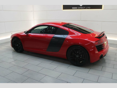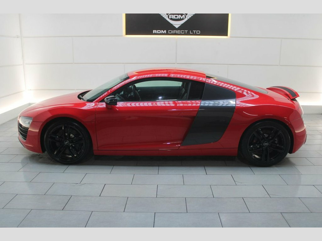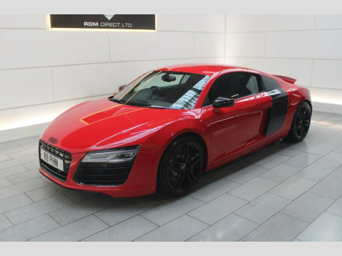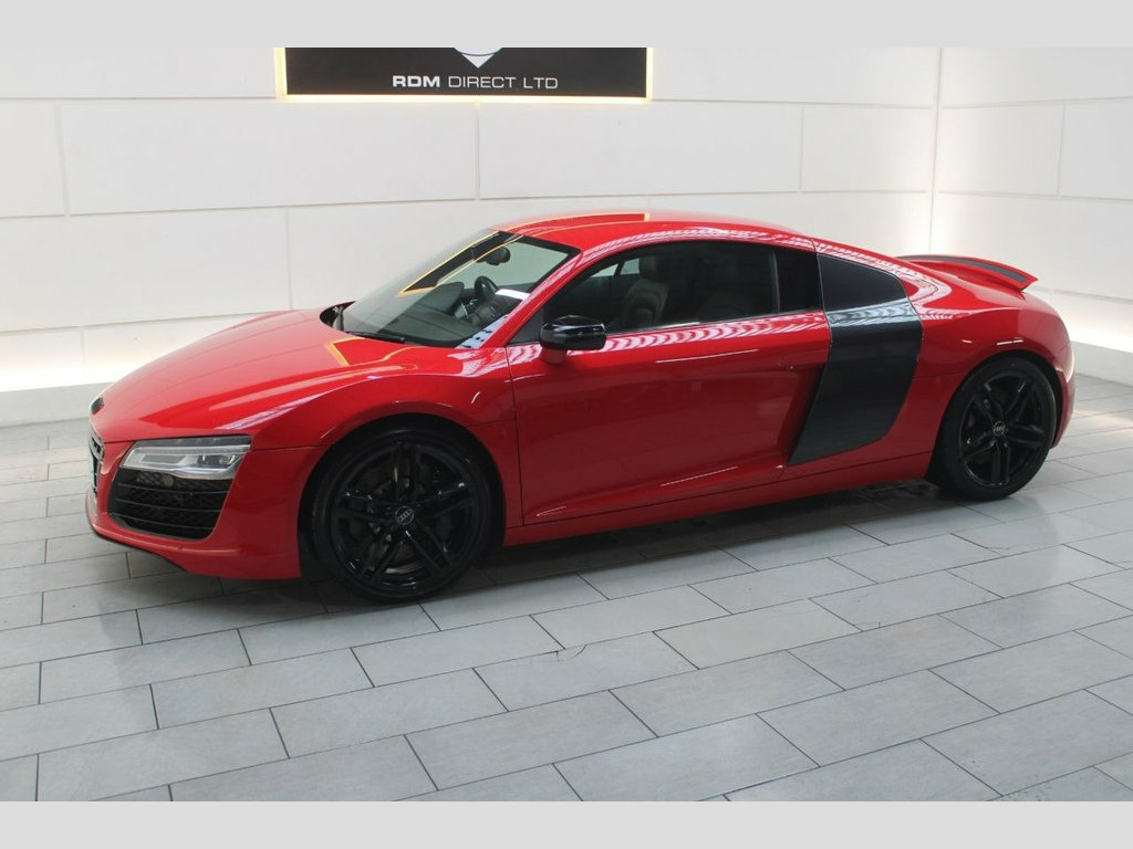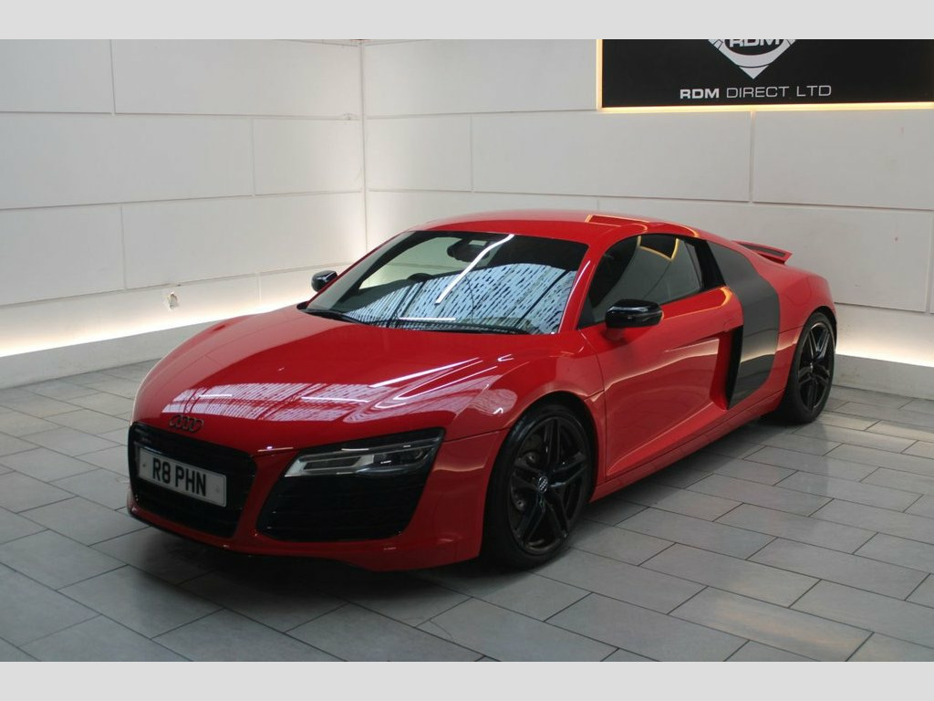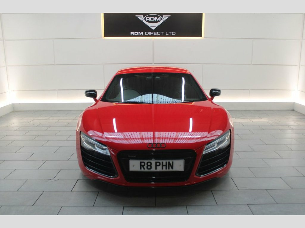 NEW IN STOCK. RED. HPI CLEAR. DATE OF REGISTRATION: 01/02/2015. Serviced at 7k, 10k, 12k, 15k, 17k, 20k (Will be serviced again by RDM) Specification includes: LED headlights, Sideblade Carbon Sigma, Acoustic parking system plus, 19" '5-arm double spoke' design alloy wheels in titanium finish, Light and rain sensor package, Black styling package, Contoured 3-spoke leather Sports flat-bottomed multi-function steering wheel with gearshift paddles, Heated front seats, Cruise control. 12 month AA Breakdown Assistance included. Finance available. Part Exchange Welcome. Visit our website: www.rdmdirect.co.uk to view our latest diversified stock listings. 19in Alloy Wheels - 5-Arm Double Spoke D, 6.5in Display Screen, ABS - Anti-Lock Braking System, AMI - Audi Music Interface, ASR - Anti Slip Regulation, AUX-IN Socket, Airbags - Driver, Airbags - Front Passenger, Airbags - Front Side, Amplifier - 5-Channel, Anti Theft Locking Wheel Bolts, Anti-Theft Alarm, Audi Hill Hold Assist, Audi R8 Driving Experience - Initial Own, Brake Lights - LED, Climate Control - Electronic, Concert Radio RNS-E - MP3-CD Player, Cornering Light Function, Cup Holders - x2 in Centre Console, Door Mirrors - Electrically Adjustable a, Door Sill Trims - Aluminium with R8 Logo, Drivers Information System - DIS, EDL - Electronic Differential Lock, ESP - Electronic Stabilit