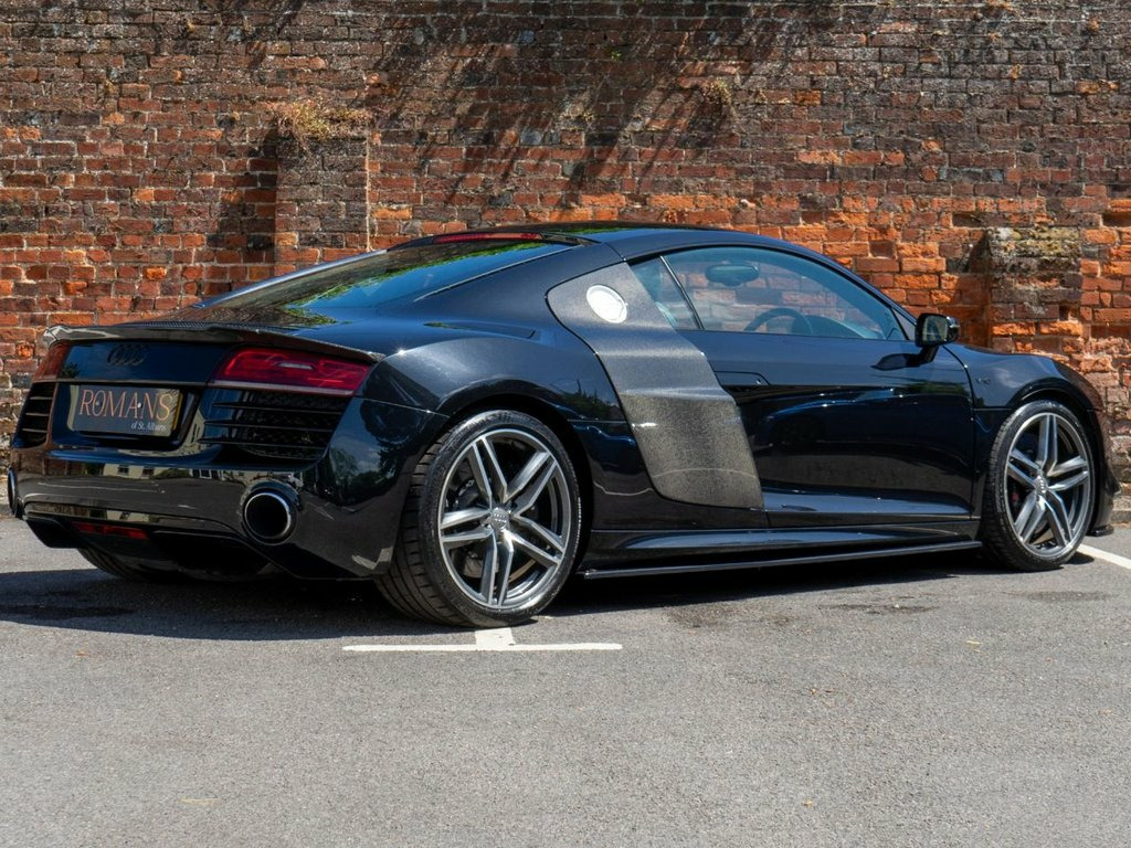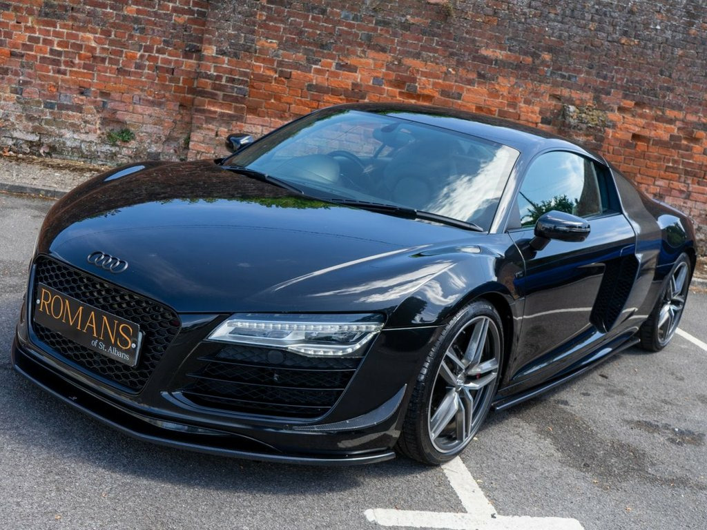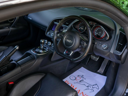 Romans of St Albans are delighted to present this highly desirable Audi R8 V10 Coupe, boasting a desirable all black factory specification and finished in Phantom Black with Black Fine Nappa Leather and full Carbon Fibre Styling throughout. This R8 sounds incredible with it's aftermarket custom sports exhaust, which has a valve controller remote if you feel it's too loud! It had a major service in 2024 which amounted to £7,500! This service included upgraded the brakes, to EBC larger rotors and upgraded pads which are super responsive and a huge upgrade on the factory brakes. Optional extras include Gloss Carbon Front Spoiler Lip, Carbon Rear Lip Spoiler, Carbon Sideblades, Carbon Side Skirts, 19in Anthracite Alloy Wheels with Machined Faces, Black Brake Calipers, Bang and Olufsen Sound System, Multifunction Steering Wheel, Electrically Operated and Heated Door Mirrors, Heated Sports Seats, Cruise Control, and Front and Rear Parking Sensors and much more! As a facelift first generation model, it benefits from the updated front and rear valances, redesigned headlights and taillights, and the upgraded S Tronic dual clutch transmission with paddle shift. ...FINANCE AVAILABLE. A £299 admin fee applies to third party finance companies being used. ULEZ COMPLIANT. FREE ON-SITE PARKING (ASK FOR DETAILS.) Romans after care package includes: Romans warranty for 6 months (12,24 & 36 months are available), Main dealer cover available, Free breakdown cover for wa Cruise Control, Audi Parking System Plus with Reversing , Steering Wheel - Audi Exclusive Leather , Extended Fine Nappa Leather - Black, Styling Package - Black, Carbon Matt Aero Package, Sideblades - Carbon Sigma, 19in Alloy Wheels - 10-Spoke Y Design Hi, 19in Alloy Wheels - 10-Spoke Y Design, 6.5in Display Screen, ABS - Anti-Lock Braking System, AMI - Audi Music Interface, ASR - Anti Slip Regulation, AUX-IN Socket, Airbags - Driver, Airbags - Front Passenger, Airbags - Front Side, Amplifier - 5-Channel, Anti Theft Locking Wheel Bolts, Anti-Theft Alarm, Audi Hill Hold Assist, Audi Magnetic Ride, Audi R8 Driving Experience - Initial Own, Auto-Dimming Rear-View Mirror, Automatic Wipers with R