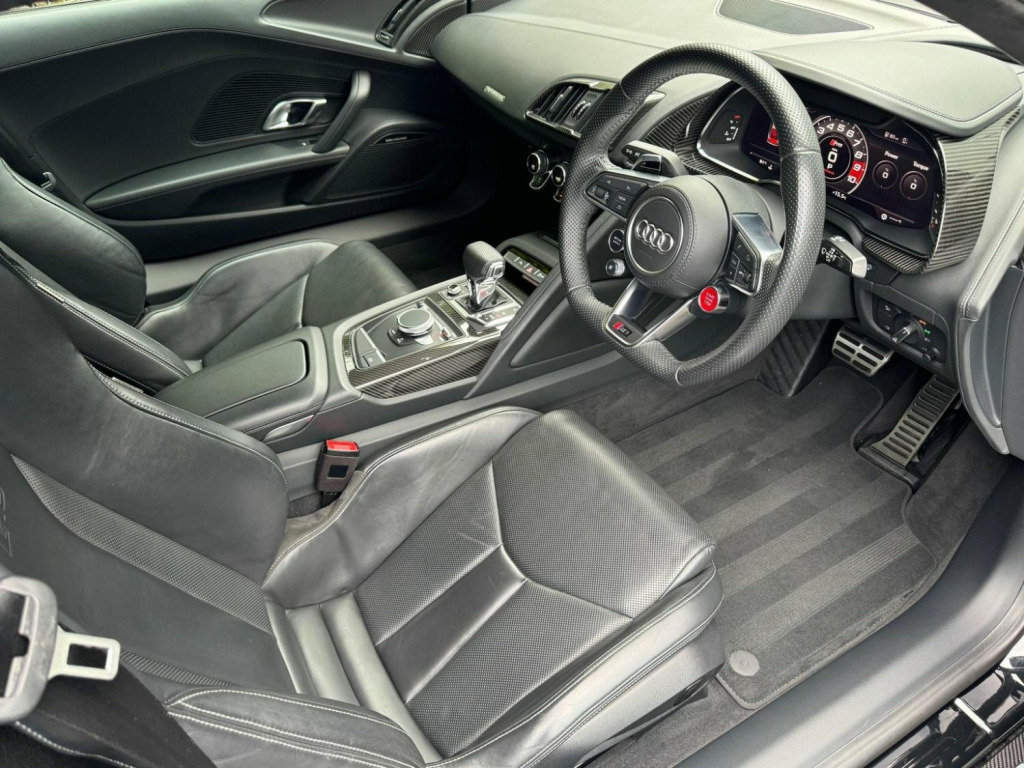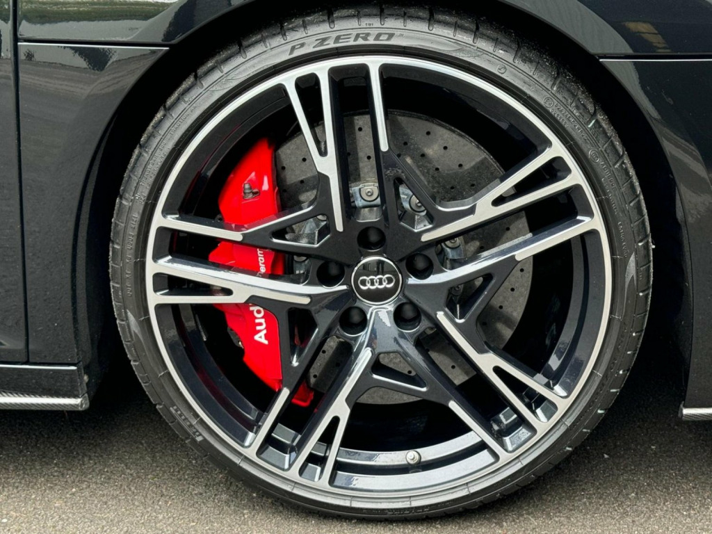 Please contact us for a finance quote as the ones below are not accurate. 2019 Audi R8 Performance Carbon Black finished in Mythos Black. Specifications on this car include - Recaro Bucket Seats | Ceramic Brakes | Audi Magnetic Ride | Full Leather Package | Audi Phone Box | Carbon Sideblades | B&O Premium Sound System | Rear View Camera & much more listed in the standard spec section below, Vodafone Tracker, Supplied with 2 keys & all the correct documentation, HPI clear, Full Audi Service History, 2 Previous Owner From New. This vehicle has passed a thorough inspection which includes exterior and interior inspection, mechanical inspection & document and history inspection. All our cars comes with a HPI report to prove they havent been written off & are clear of finance. We are available on whats app - 07827 958980 or alternative feel free to give us a call or drop us a email using the message seller button above. We offer some of the lowest finance rates in the country on all of our vehicles. Please get in contact with us & one of our finance experts will help you build the ideal package for you based on your monthly affordability, We would love to take your vehicle in a part exchange no matter what make, model or condition or if you just want to sell your vehicle then please get in contact with us for more information. We Are Open By Appointment Only So Please Get In Contact With Us To Book A Viewing. We offer nationwide delivery on all of our cars & extended warranty packages.