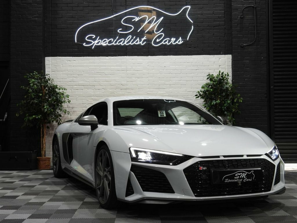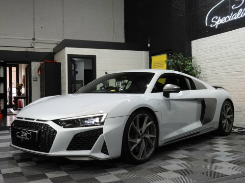 HUGE SPEC R8 PERFORMANCE - SUZUKA GREY - ONLY 22K FROM NEW WITH FULL AUDI SERVICE HISTORY - FULL HEATED LEATHER INTERIOR - SAT NAV - REVERSE CAMERA - APPLE CAR PLAY - DRIVES & PERFORMS SUPERB - FIRST TO SEE WILL BUY!! 20in Alloy Wheels - 5-V Spoke Evo Design, ABS - Anti-Lock Braking System, Advanced Key with SafeLock, Airbags - Driver, Airbags - Front Passenger, Airbags - Front Side with Curtain, AMI - Audi Music Interface, Anti Theft Alarm and Immobiliser, ASF - Audi Space Frame, Audi Beam, Audi Connect Infotainment Services (36 M, Audi Drive Select, Audi Phone Box with Wireless Charging, Audi Smartphone Interface, Audi Sound System, Audi Virtual Cockpit, Brake Calipers - Gloss Black, Ceramic Brakes in Front with Brake Calli, Complete Protective Cover, Cruise Control, DAB Digital Radio, Deluxe Automatic Air Conditioning, Door Sill Trims in Plastic with Aluminiu, Electric Windows - Front, Extended Inlays