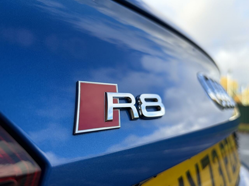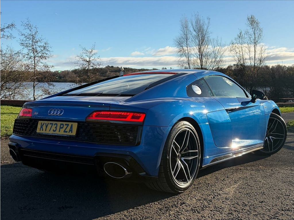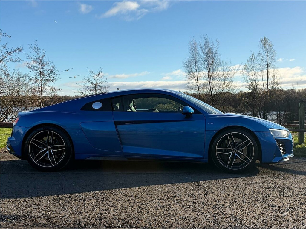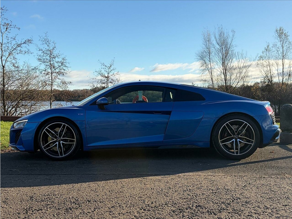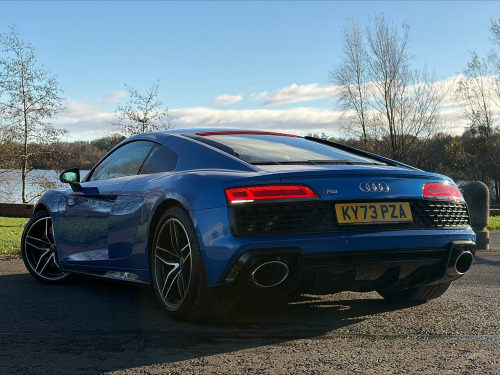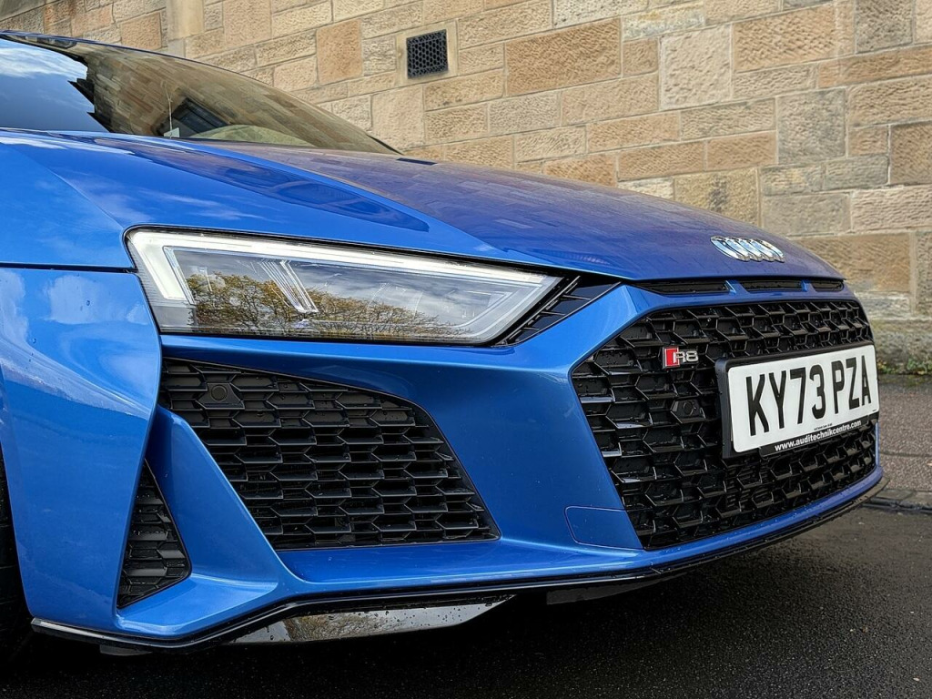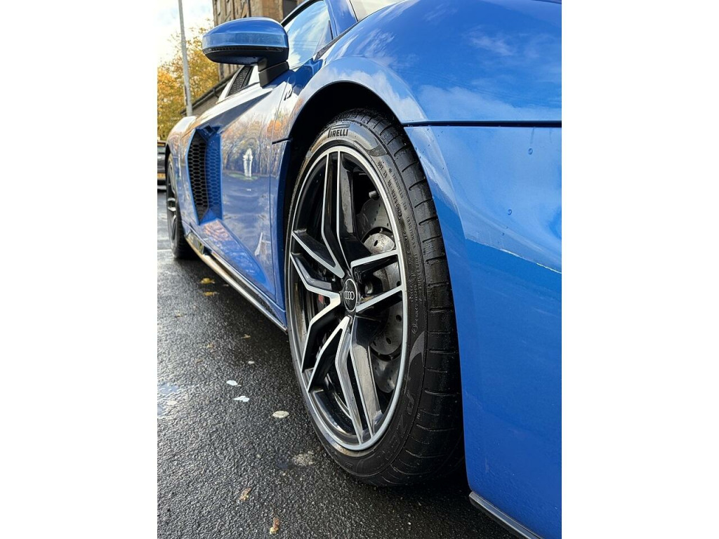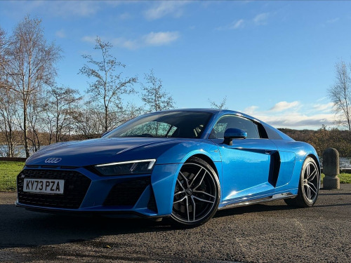 With only 4622 miles on the clock, this 2023 Audi R8 is practically brand new. This Performance trim R8, with its powerful 5.2L petrol engine, boasts a full service history, with the last service performed at 4577 miles on 17th June 2025. For peace of mind, a 12-month MOT is provided on purchase, along with a 3-month warranty. The interior features R8 sport seats with memory function and pneumatic adjustment for the seat backrest and side bolsters. The anthracite anodised paint finish inlays add a touch of sophistication, while the flat-bottomed, multi-functional, three-spoke sport leather steering wheel puts you in control. The sport suspension enhances the driving experience.This Euro 6 emission class vehicle can accelerate from 0-62mph in just 3.7 seconds, demonstrating its superior performance compared to similar models. The low mileage for its age and comprehensive service history make it an appealing choice for those seeking a well-maintained and thrilling sports car.. AMI - Audi Music Interface, Audi Connect Infotainment Services - 36 Month Subscription, Audi Phone Box with Wireless Charging, Audi Smartphone Interface, Audi Sound System, Bluetooth Interface, DAB Digital Radio, MMI Navigation Plus with MMI Touch, Audi Drive Select, Cruise Control, Reversing Camera, Tyre Pressure Warning Light, 19in Alloy Wheels - 5-Arm Twin-Spoke Design Forged Aluminium Wheels in Matt Titanium Diamond Cut Finish, ASF - Audi Space Frame, Brake Calipers - Gloss Black, Chrome-Plated Oval Tailpipe Trims, Electric Windows - Front, Extendable Rear Spoiler, Exterior Mirror Housings in Body Colour, Exterior Mirrors Electrically Adjustable Heated Folding and Automatically Dimming with Integrated LED Indicator, Gloss Black Radiator Grille with R8 Emblem, Gloss Black Styling Pack, Locking Wheel Bolts, Sideblades - Body Colour, Tyre Repair Kit, Audi Beam, High-Beam Assist, LED Headlights, LED Rear Lights and Dynamic Rear Indicators, Light and Rain Sensor, Audi Virtual Cockpit, Black Cloth Headlining, Deluxe Automatic Air Conditioning, Door Sill Trims in Plastic with Aluminium Inlays and R8 Logo, Extended Inlays in Titanium Finish - Glossy Anthracite - for Air Vent Surround, Heated Front Seats, Inlays - Anthracite Anodised Paint Finish, Interior Light Package, Pedals in Stainless Steel, Pneumatic Seat Backrest and Side Bolster Adjustment, Protective Cover, R8 Flat Bottomed 3-Spoke Sport Leather Steering Wheel - Multifunctional Plus with 2 Operating Satellites, Rear View Mirror - Automatically Dimming - Frameless with Light-Rain Sensor, Seat Adjustment - Electric and Pneumatic with Memory Function for Driver Seat, Seats - R8 Sport Seats, Tool Kit, Tracking System Preparation, Power Steering, S Tronic Transmission with Hill Hold Assist, Sport Suspension, ABS - Anti-Lock Braking System, Advanced Key with SafeLock, Airbags - Driver, Airbags - Front Passenger, Airbags - Front Side with Curtain, Anti Theft Alarm and Immobiliser, First Aid Kit and Warning Triangle, Parking System Plus, Seat Belt Monitoring, 19in Alloy Wheels - 5-Twin-Spoke Design Cast Aluminium in Gloss Black, Ara Blue Crystal Effect. Full service history