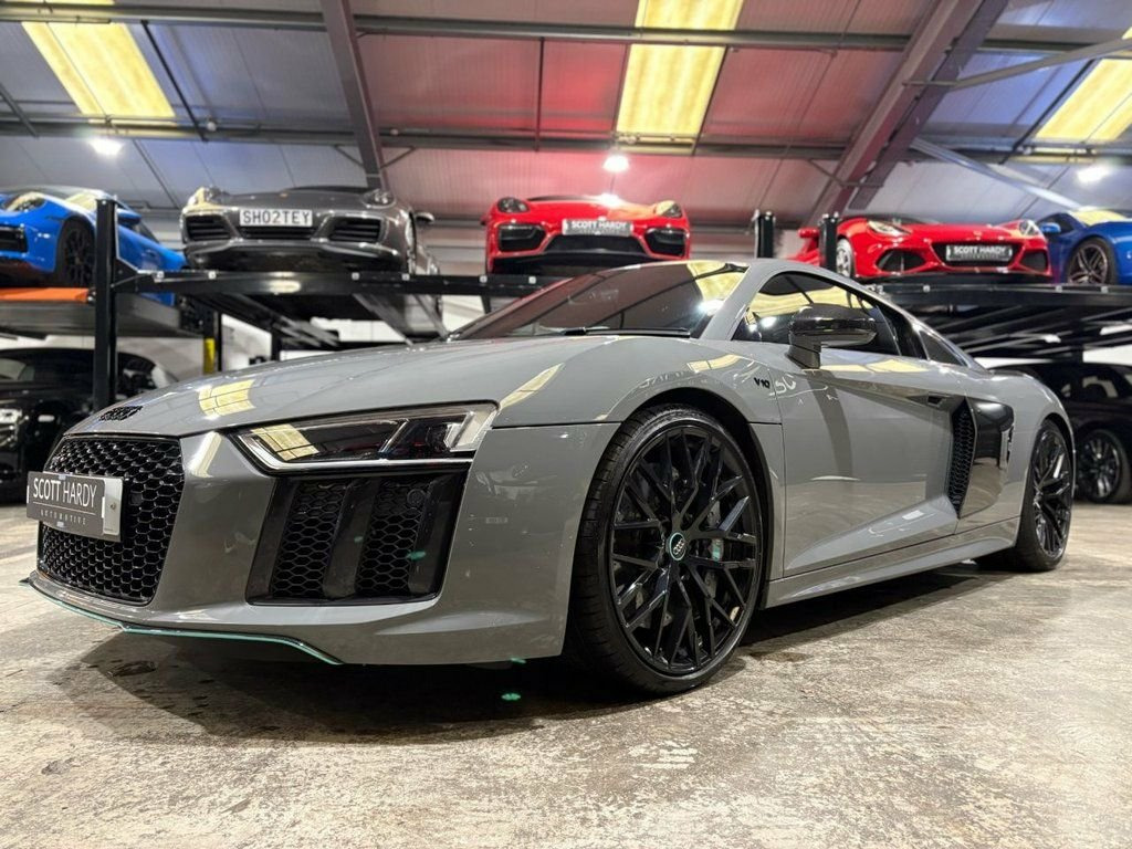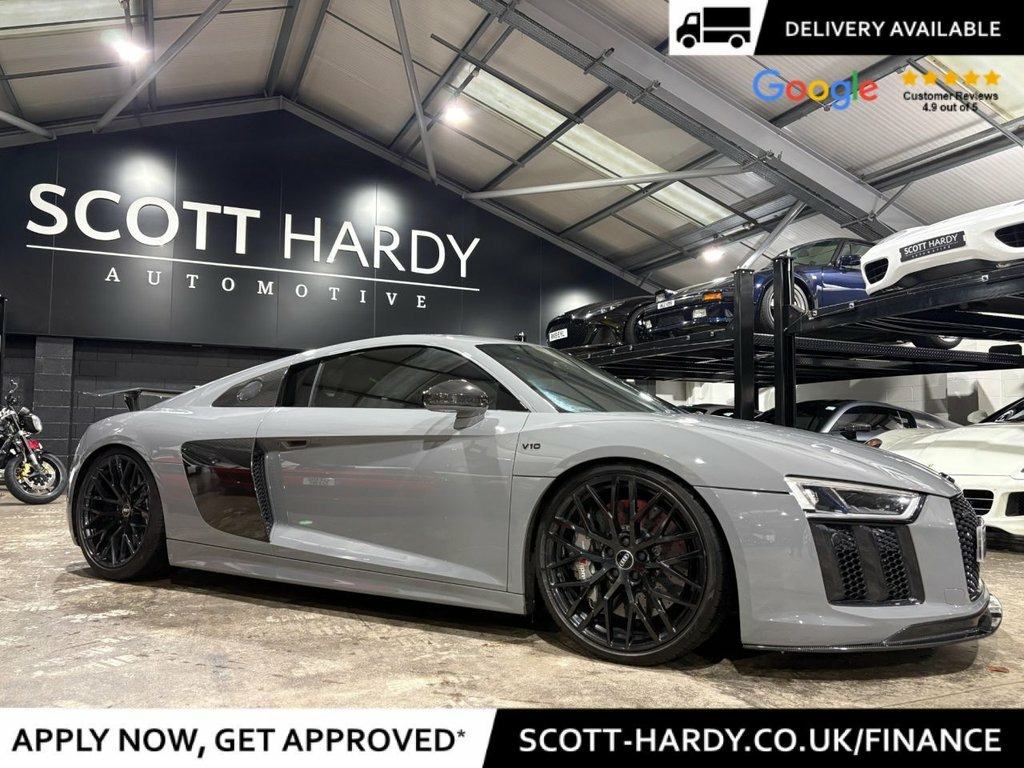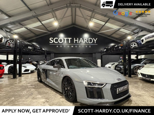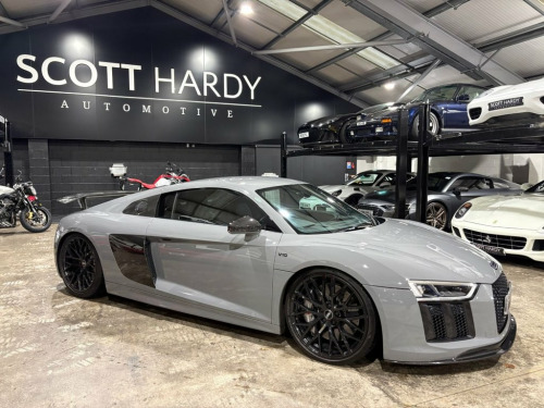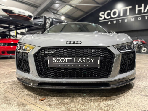 Scott Hardy are proud to present this stunning AUDI R8 5.2 FSI V10 Plus Coupe finished in NARDO GREY 19in Alloy Wheels - 5-Arm Twin-Spoke Des, ABS - Anti-Lock Braking System, AMI - Audi Music Interface, ASF - Audi Space Frame, ASR - Anti Slip Regulation, AUX-IN Socket, Advanced Key, Airbags - Driver, Airbags - Front Passenger, Airbags - Front Side System, Airbags - Head System, Anti Theft Locking Wheel Bolts, Anti-Theft Alarm, Audi Connect, Audi Drive Select, Audi Parking System Plus, Audi R8 Driving Experience - Initial Own, Audi Sound System, Audi Virtual Cockpit - 12.3in High Resol, Auto-Dimming Rear-View Mirror, Automatic Wipers with Rain Sensor, Brake Calipers - Gloss Anthracite with A, CD Player, Car Jack, Ceramic Brakes, Cloth Headlining, DAB Digital Radio, DVD Player, Deluxe 1-Zone