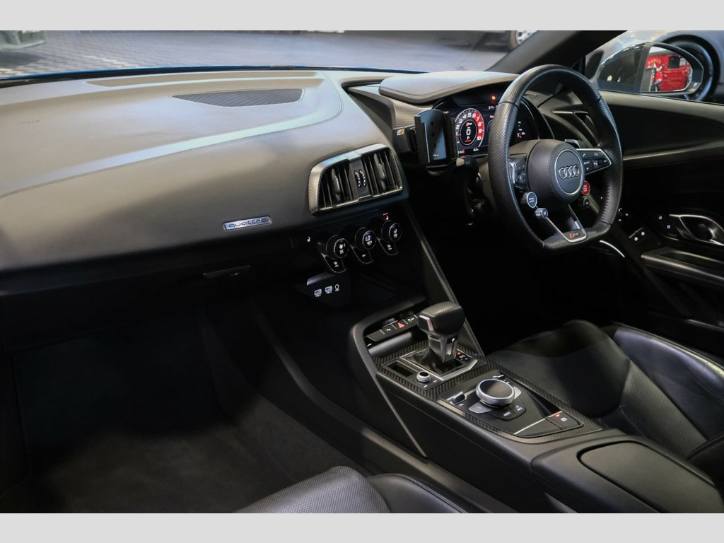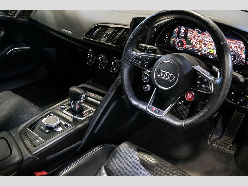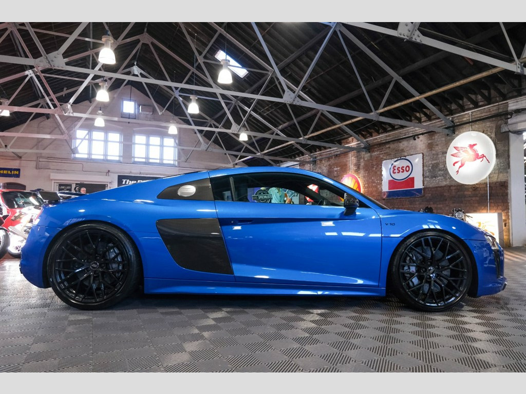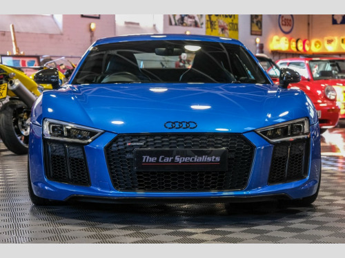 2018 (68) Audi R8 V10 PLUS QUATTRO INTERIOR EXTERIOR CARBON SPORTS EXHAUST is offered to you for sale in Sheffield, South Yorkshire, finished in blue this Pre-owned Audi R8 V10 PLUS QUATTRO INTERIOR EXTERIOR CARBON SPORTS EXHAUST is one of the many rare and desirable used vehicles that used car dealer The Car Specialists, Sheffield, South Yorkshire have available for sale. WE AT THE CAR SPECIALISTS HAVE GREAT PLEASURE IN OFFERING FOR SALE OUR AWESOME LOW MILEAGE ARA BLUE PEARL AUDI R8 V10 PLUS COUPE WHICH COMES COMPLETE WITH THE FOLLOWING IMMENSE SPECIFICATION :- - 20 inch gloss black Y spoke alloy wheels. - Ceramic brakes. - Switchable sports exhaust. - Bang & Olufsen surround sound. - Exterior carbon pack. - Interior matt carbon pack. - Sound pack. - Comfort pack. - Black fine Nappa extended leather interior. - Heated R8 bucket sports seats, - Flat bottom multi-function steering wheel with paddle shift controls. - Cruise control. - Dual climate control. - Virtual cockpit. - Front and rear park distance control with rear view camera. - Automatic LED headlights. - Audi smartphone interface. - Satellite navigation. - Bluetooth phone. - CD player. - SD card reader. - Bluetooth audio. - Wi-Fi. - Audi connect. - Automatic LED headlights. - LED day time running lights. - Heated powerfold door mirrors. - Keyless go. - Drive select. - Tracker. - Ceramic coated. - 4x new tyres. YORKSHIRE TRADING STANDARD AWARD WINNERS FOR THE LAST 12 YEARS RUNNING. ALL OUR CARS COME HPI CLEAR AND WITH A 29 POINT MULTI-POINT CHECK AND BRAND NEW MOT, WE ALSO HAVE COMPETITIVE FINANCE RATES AVAILABLE ON ALL OF OUR VEHICLES, A NATIONWIDE DELIVERY SERVICE AND ALL MAJOR DEBIT AND CREDIT CARDS ARE ACCEPTED, IF YOU HAVE ANY FURTHER QUESTIONS PLEASE DO NOT HESITATE TO CONTACT OUR OFFICE ON 01142795574. Every effort has been made to ensure the accuracy of the above information but errors may occur. Please contact the office for full vehicle details. We are a family-owned company who pride ourselves on the quality of our Vehicles and all of them are carefully chosen, handpicked & enthusiast pre-owned examples that are always HPI Clear for your peace of mind. We offer all the usual used Car Dealer facilities such as Low-rate finance and extended warranties and operate a no pressure environment where you can relax and enjoy good old-fashioned service with a smile. We have just upgraded our Indoor Showroom where you can see vehicles in the warmth and out of the elements and sometimes, we have to stop ourselves from keeping certain examples as just like you we are enthusiasts at heart. We cater for very specialist tastes and can usually source rare and coveted vehicles that we do not have in stock and have lots of contacts throughout the UK. Ceramic Brakes,Seats - R8 Bucket Seats,Ara Blue,Sport Exhaust System,Audi Exclusive Fine Nappa Full Leather Upholstery and Trim,ABS - Anti-Lock Braking System,AMI - Audi Music Interface,ASF - Audi Space Frame,ASR - Anti Slip Regulation,Advanced Key,Airbags - Curtain,Airbags - Driver,Airbags - Front Passenger,Airbags - Front Side,Anti Theft Alarm and Immobiliser,Anti Theft Locking Wheel Bolts,Audi Connect Infotainment Services - 36 Month Trial,Audi Drive Select with Performance Mode,Audi Sound System,Audi Sport Beam,Audi Virtual Cockpit,Auto-Dimming Rear-View Mirror,Bluetooth Interface,Brake Calipers - Gloss Anthracite with Audi Ceramic Lettering,Cruise Control,DAB Digital Radio,Deluxe 1-Zone Climate Control,Door Sill Trims - Aluminium with R8 Logo,Dual-Branch Gloss Black Trapezoidal Tailpipes,ESC - Electronic Stabilisation Control,Electric Windows - Front,Electrically Adjustable Seat Height,Electromechanical Power Steering,Email and Text Messages can be Displayed on your Vehicles MMI,Exhaust Flap Control,Extended Inlays in Matt Carbon,Exterior Mirror Housings in Gloss Carbon,Exterior Mirrors Electrically Adjustable Heated Folding and Automatically Dimming with Integrated LED Indicator,First Aid Kit and Warning Triangle,Front Spoiler Lip in Gloss Carbon - Large Air Inlets in Gloss Anthracite Black,Gloss Carbon Exterior Styling Pack,Headlights - High-Beam Assist,Heated Front Seats,ISOFIX Child Seat Mounting for Front Passenger with Airbag Deactivation,Inlays - Matt Carbon,Integrated Head Restraints,Interior Lighting Pack,LED Headlights,LED Rear Lights and Dynamic Rear Indicators,Large Fixed Rear Spoiler in Gloss Carbon,Light and Rain Sensor,MMI Navigation Plus with MMI Touch,Parking System Plus - Front and Rear Sensors,Pedals in Stainless Steel,Quattro Interior Badging on Dashboard,R8 3-Spoke Flat Bottomed Multi-Functional Perforated Performance Leather Steering Wheel with 4 Operating Satellites,R8 Gear Lever in Aluminium,R8 V10 Plus Sport Suspension,Rear Diffuser Insert in Gloss Carbon and Air Outlets in Gloss Anthracite Black,Seat Belt Reminder - Driver and Passenger,Sideblades - Gloss Carbon,Single Frame Radiator Grille with Honeycomb Design in Gloss Anthracite Grey,Tool Kit,Tracking System Preparation,Tyre Pressure Warning Light,Tyre Repair Kit,Bang and Olufsen Sound System,Seats - R8 Sport Seats,Sound and Comfort Pack,20in Alloy Wheels - 10-Spoke Y Design Forged Aluminium Wheels in Gloss Anthracite Black
