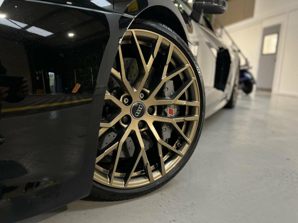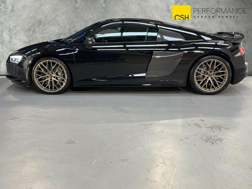 Were pleased to present this lovely Audi R8, finished in Mythos Black Metallic. This car comes with a fantastic range of factory features, including Audi Phone Box, Bang and Olufsen Sound System, Cruise Control, Rear-View Camera, Reversing Camera, 20in Alloy Wheels - 10-Spoke Y Design Forged Aluminium Wheels in Gloss Gold Metallic, Audi Exclusive Gloss Black Exterior Styling Pack, Exhaust Tailpipe - Sports, Sideblades - Audi Exclusive Paint, Sport Exhaust System, Cloth Headlining in Black, Fine Nappa Leather - Black, Fine Nappa Leather - Sports Seats - Black, Sound and Comfort Pack, Audi Magnetic Ride, Dynamic Steering, Sport Plus Pack and so much more. This car also has a full body PPF, Carbon spoiler and diffuser and wheels painted in Gold metallic. 2 keys, full service history. At CSH Performance we offer extended warranties, immobilisers and tracking devices, ceramic coating, styling kits and more - enquire with us today. All vehicles undergo comprehensive health checks and are sold with warranty packages. Contact us today to enquire - appointment only due to multiple sites. Finance available. Part exchange welcome. 01484 941105.