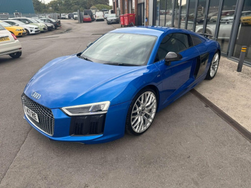 This 2016 Audi R8 FSI V10 Plus is an exceptional example, boasting an incredibly low mileage of just 3344 miles from its single owner. Finished in the Plus trim, this four wheel drive supercar is powered by a potent 5.2 litre petrol engine, compliant with Euro 6 emissions standards. Experience the convenience of keyless entry with the Advanced Key system, and enjoy effortless parking with front parking sensors. The cabin is further enhanced by a premium Bang and Olufsen sound system and heated front seats for added comfort, while automatic headlights with a light sensor ensure optimal visibility. The performance of this Audi R8 is truly remarkable, with a breath taking 0-62mph acceleration time of just 3.2 seconds. This impressive figure highlights how this particular R8 FSI V10 Plus offers a superior driving experience compared to many other vehicles in its class. Its combination of low mileage, single ownership, and the powerful V10 engine makes it a standout choice for any discerning driver. Rare opportunity to buy such a low mileage and immaculate example. Part exchange and finance available 19in Alloy Wheels - 5-Arm Twin-Spoke Des, ABS - Anti-Lock Braking System, AMI - Audi Music Interface, ASF - Audi Space Frame, ASR - Anti Slip Regulation, AUX-IN Socket, Advanced Key, Airbags - Driver, Airbags - Front Passenger, Airbags - Front Side System, Airbags - Head System, Anti Theft Locking Wheel Bolts, Anti-Theft Alarm, Audi Connect, Audi Drive Select, Audi Parking System Plus, Audi R8 Driving Experience - Initial Own, Audi Sound System, Audi Virtual Cockpit - 12.3in High Resol, Auto-Dimming Rear-View Mirror, Automatic Wipers with Rain Sensor, Brake Calipers - Gloss Anthracite with A, CD Player, Car Jack, Ceramic Brakes, Cloth Headlining, DAB Digital Radio, DVD Player, Deluxe 1-Zone