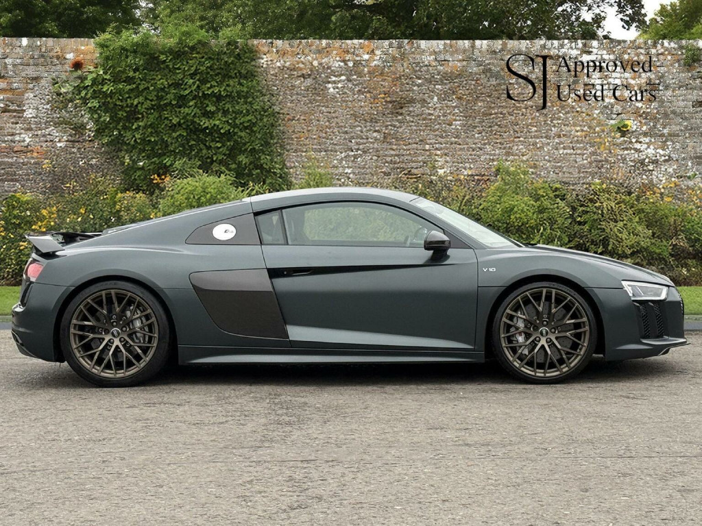 ????WHATSAPP OUR BUSINESS ON 07393833415 ????, ???? Finance available , ????Part Exchange welcome , ????Customer satisfaction is our priority, ⚙️ Extended warranty (subject to car ), ???????? Service history for this vehicle is as follows.. 2018 @ 9701 - Audi, 2018 @ 13293 dust and pollen filter - Audi, 2018 @ 13583 - Audi, 2020 @ 24109 GC motors, 2021 @ 27051 - GC motors, 2022 @ 31222 GC motors, 2023 @ 36759 - dust, pollen, brake fluid, DSG service. 2024 @ 38580 brake pads - Audi. 2025 @ 40202 - Audi. This 2016 Audi R8 FSI V10 Plus is currently owned by director of SJ cars and iIS driven daily. It boasts a full service history, with its last service completed on 9th June 2025 at 40,292 miles, ensuring excellent provenance. This striking R8 is equipped with a powerful 5.2 litre V10 petrol engine and a four wheel drive system, meeting Euro 6 emission standards. Notable features include the Audi Phone Box with wireless phone charging, advanced LED headlights with Audi Laser Light and High Beam Assist, 20 inch Alloy wheels ( the colour can be changed to your preference ) , Sports Exhaust, Special Matt green finish from factory called Camouflage green, cruise control, reverse camera, comfort and sound pack, full leather package, Sport plus pack including sports exhaust, Magnetic ride and dynamic steering, Alcantara headlining, Audi Laser lights, Fine Nappa leather package, all contributing to a luxurious cabin experience. The performance of this R8 is truly exceptional, highlighted by its rapid 0-62mph acceleration in just 3.2 seconds. This impressive speed demonstrates its superior engineering compared to other vehicles in its class. The car comes with a 3 month warranty and a 12 month MOT provided on purchase, offering peace of mind for the new owner.