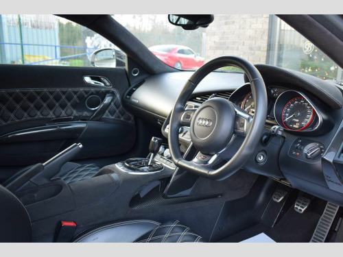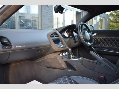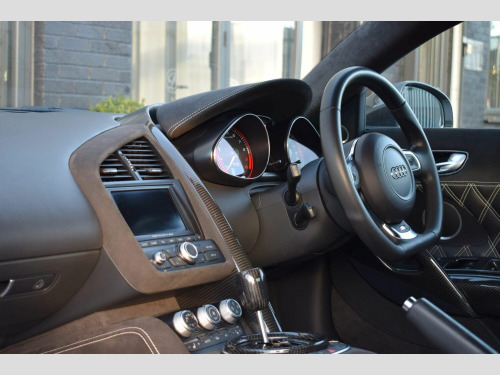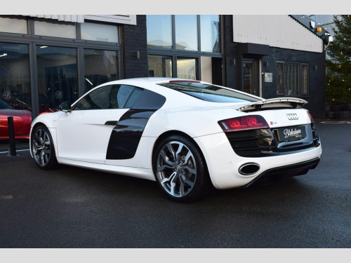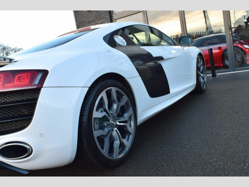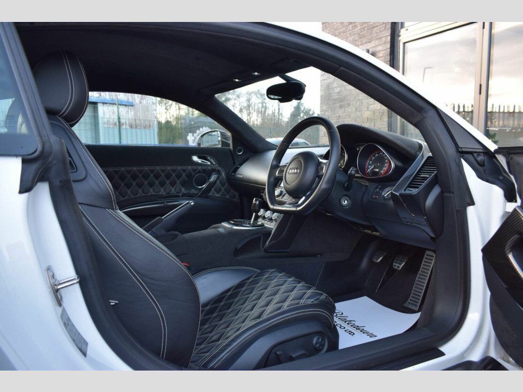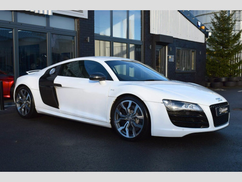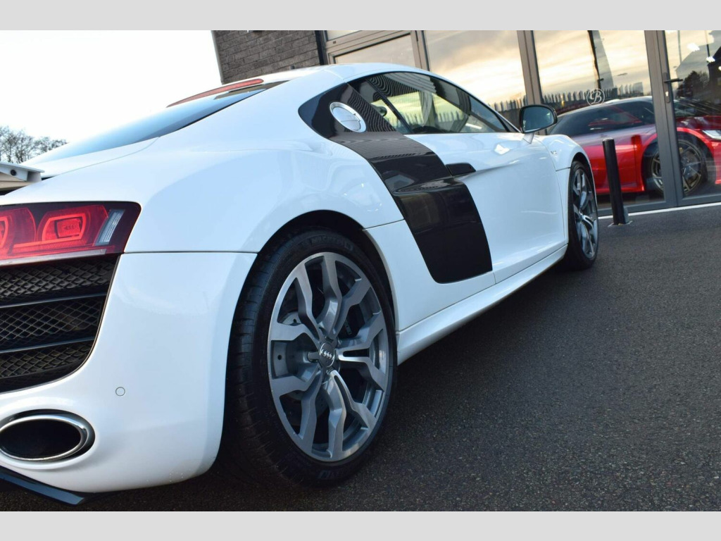 2009 09 Audi R8 5.2 FSI V10 Quattro Coupe. Very low mileage with just 30100 covered which is supported by full stamped Audi main dealer service history consisting of an impressive 10 stamps, the last service having been completed by Wolverhampton Audi in December 2021. This rare MANUAL V10 is finished in Ibis White with full EXTENDED Quilted Black Nappa Leather interior and contrast stitching. The £2500 option extends the Fine Nappa leather and adds contrast stitching onto the dashboard, upper door inserts and other areas of the interior and is a vast improvement over the standard plastic finish. Additionally this car benefits from every optional piece of carbon trim available from new including engine cover, side blades, interior trim and door mirrors and optional alcantara headlining finishes the interior off perfectly. The entire car is presented in beautiful condition - alloys unmarked, bodywork well preserved thanks to being garage by its most recent owner of 4 years and interior very clean, showing no signs of significant wear or heavy use. Mechanical condition is equally great with all consumables such as tyres, brakes etc in very good order having been checked again as part of our strict preparation process. We are confident this is the highest specification manual V10 R8 on the market today and possibly in the UK full stop with almost every box ticked from factory. This incredible equipment list includes: Extended Leather Package - Black, Coloured Stitching for Full Leather, Engine Cover in Carbon Sigma inc. Light Package, Bang & Olufsen Sound System, Carbon Interior Inlays, Carbon Sigma Sideblades, Reverse Camera, Acoustic Parking Aid (Front and Rear), Cruise Control, Homelink Garage Door Opener, Alcantara Headlining, Audi Hill-Hold Assist, Satellite Navigation System Plus, CD Autochanger for Six Discs, Light Package, LED Headlights, Stainless Steel Pedals, Audi Magnetic Ride, Heated Front Seats, 19in 5-Twin Spoke Design Titanium Wheels, Tyre-Pressure Monitoring, GMS Mobile Telephone Preparation (Bluetooth), Electrically Adjustable Seats and more.
