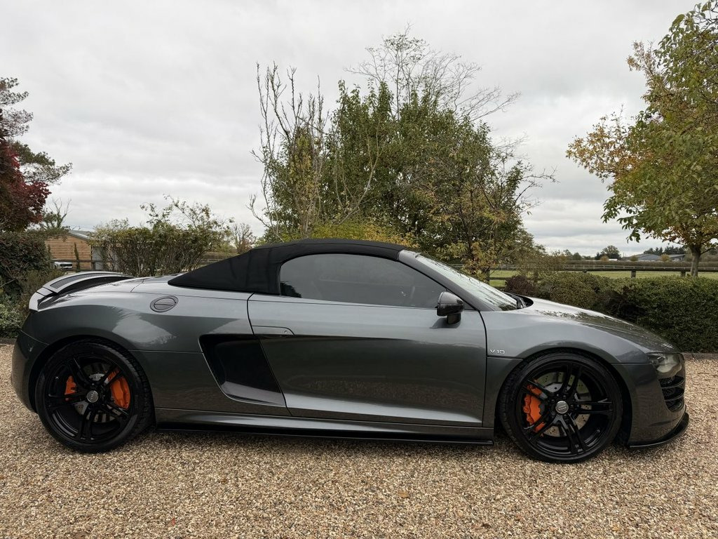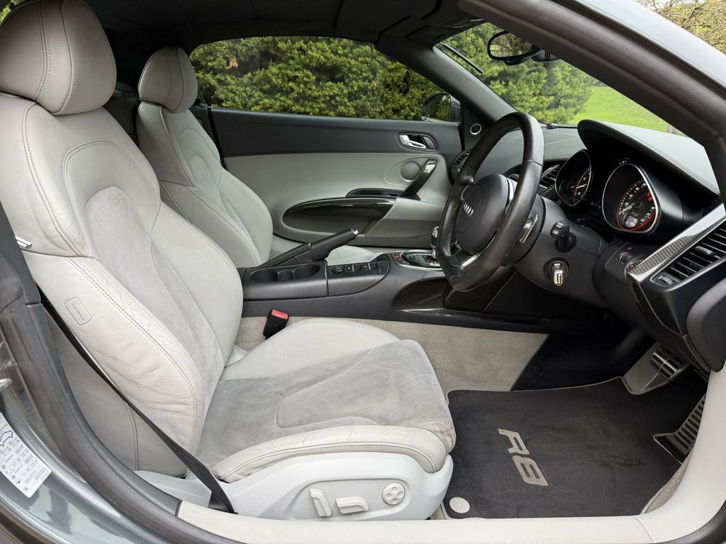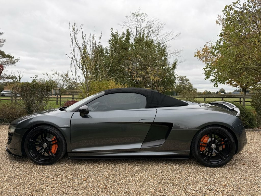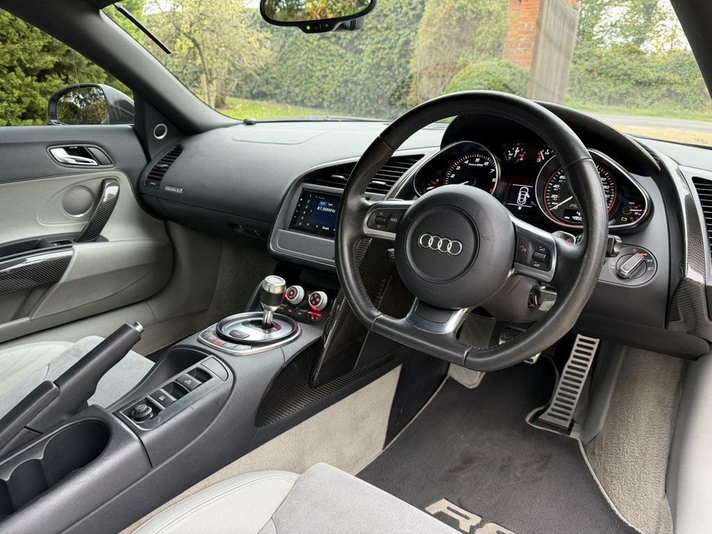 Whytehall have great pleasure in offering this superv high specification AUDI R8 5.2 FSI V10 Spyder 2dr Petrol R Tronic quattro Euro 5 (525 ps) Factory extras include Daytona grey pearl metallic, silver grey alcantara and leather interior package, carbon interior exterior package. Maxton spoilers and side skirts, apple car play, B&O Sound package,6 CD, reverse camera, 19' gloss black alloy wheels, Miltek super cup exhaust system. Dynamic mag ride, full service history with invoices. clutch replacement October 2024 at 47371. Good looking R8. Same day drive away finance. Part exchange welcome, 2 sets of keys. Please click onto our website to build your own finance package and to watch video. 19in 10Spoke Y design Alloy Wheels- High, 3Spoke flat bottom Multifunction Leather, 6CD Autochanger, Aluminium gear knob, Audi music interface, Body colour door mirrors, Carbon door mirror Trims, Cruise Control, Daytona Grey, Electric lumbar support, Front side Airbags, Hood- Black, Hood- Brown, Hood- Red, Leather & Alcantara-, Leather gear knob, Matt silk finish Black inlay, Mobile phone preparation with Bluetooth , Mobile phone preparation- Low