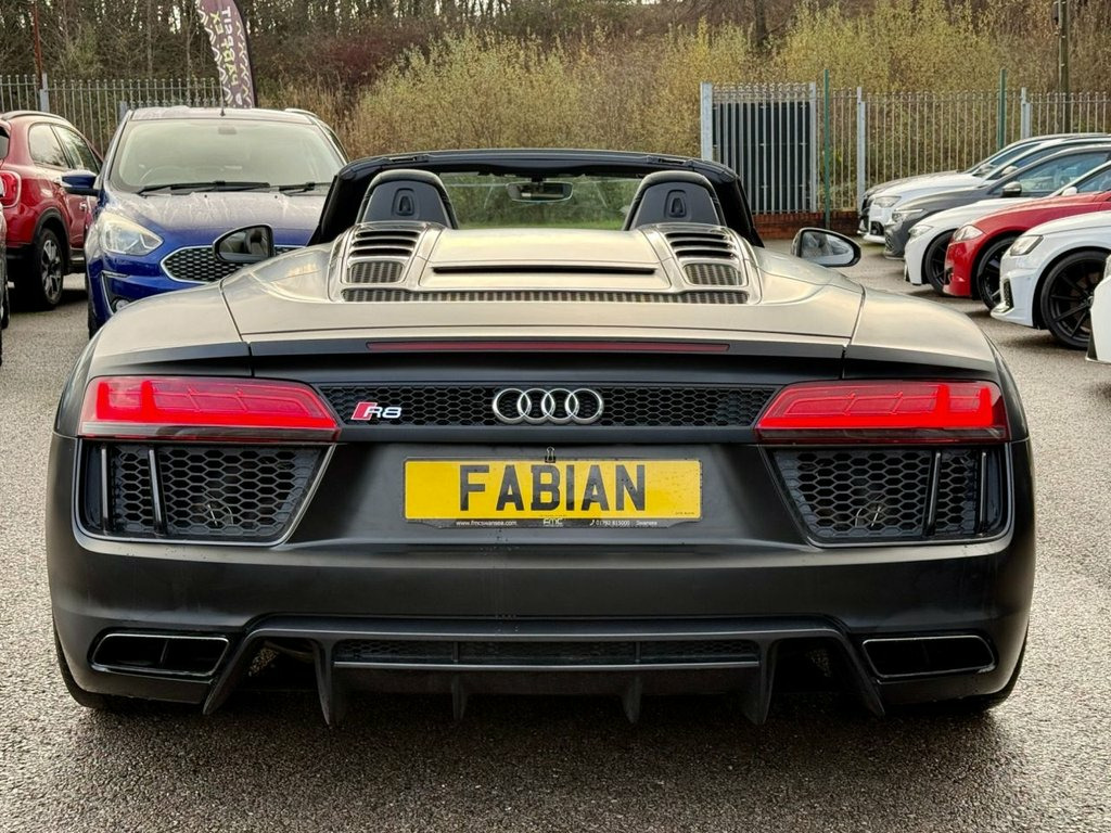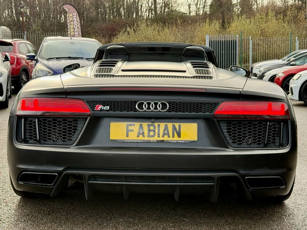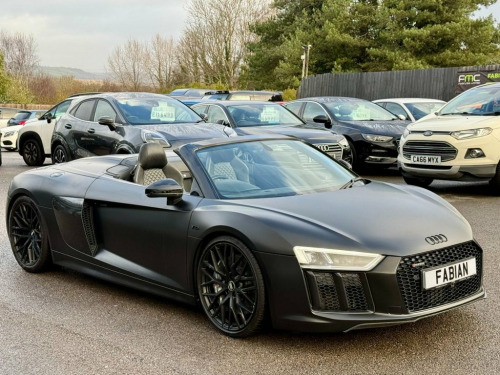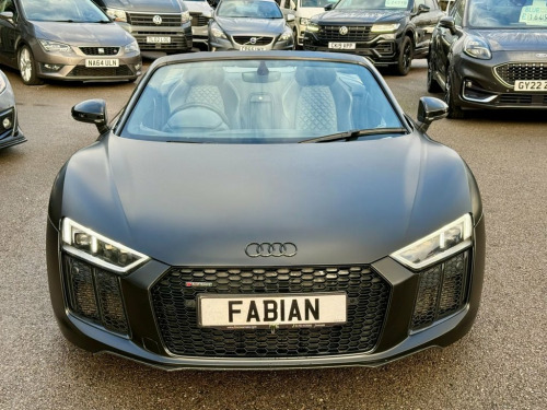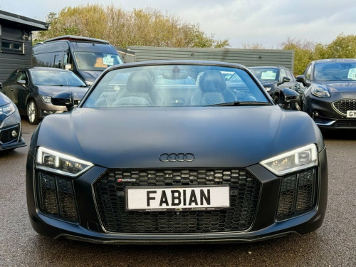 Full Audi Service 7k, 13k, 28k, 42k (42k was a major service) Bang and Olufsen Sound System Black Hood Side blades - Mythos Black Metallic Sport Exhaust System Ceramic Brakes 20in Alloy Wheels - 10-Spoke Y Design Forged Aluminium Wheels in Gloss Anthracite Black Audi Magnetic Ride Sound and Comfort Pack Driver Assistance Package Fine Nappa Leather with Stitching Diamond Design - Black with Dark Silver Contrast Stitching 19in Alloy Wheels - 5-Arm V-Spoke Design Cast Aluminium ABS - Anti-Lock Braking System AMI - Audi Music Interface ASF - Audi Space Frame ASR - Anti Slip Regulation Advanced Key Airbags - Front Side Anti Theft Alarm and Immobiliser Anti Theft Locking Wheel Bolts Audi Connect Audi Drive Select Audi R8 Driving Experience - Initial Owner Only Audi Sound System Audi Virtual Cockpit Bluetooth Interface Brake Calipers - Gloss Black Carpet and Floor Mats DAB Digital Radio Deluxe 1-Zone Climate Control Door Sill Trims - Aluminium with R8 Logo Driver and Front Passenger Airbag with Front Passenger Airbag Deactivation Dual-Branch Chrome-Plated Trapezoidal Tailpipes EDL - Electronic Differential Lock ESC - Electronic Stabilisation Control Electric Windows - Front Electromechanical Power Steering Exterior Mirror Housings in Body Colour Exterior Mirrors Electrically Adjustable Heated Folding and Automatically Dimming with Integrated LED Indicator First Aid Kit and Warning Triangle Front Spoiler Lip in Matt Anthracite Black - Large Air Inlets in Gloss Anth 19in Alloy Wheels - 5-Arm V-Spoke Design, ABS - Anti-Lock Braking System, AMI - Audi Music Interface, ASF - Audi Space Frame, ASR - Anti Slip Regulation, Advanced Key, Airbags - Driver, Airbags - Front Passenger, Airbags - Front Side, Anti Theft Alarm and Immobiliser, Anti Theft Locking Wheel Bolts, Audi Connect Infotainment Services - 36 , Audi Drive Select, Audi Sound System, Audi Sport Beam, Audi Virtual Cockpit, Auto-Dimming Rear-View Mirror, Bluetooth Interface, Brake Calipers - Gloss Black with R8 Emb, Cruise Control, DAB Digital Radio, Deluxe 1-Zone Climate Control, Door Sill Trims - Aluminium with R8 Logo, Dual-Branch Chrome-Plated Trapezoidal Ta, ESC - Electronic Stabilisation Contr