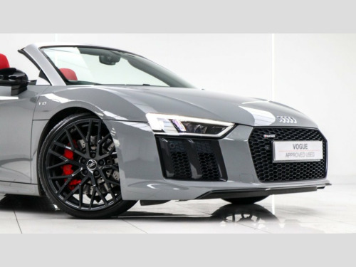 Welcome to Vogue Motor Company Limited. This vehicle comes with Full Audi Service History & 2 Keys. A New Oil Service will be carried out Prior to Sale. A 12 months M.O.T will be provided, Any Failures will be Rectified with Receipts provided as proof of work done. A 3 month Warranty will be given as part of the sale, additional warranties are available to purchase. This vehicle comes with the sports plus pack, Virtual Cockpit, Multi-Function Flat-Bottom Steering Wheel, Sat Nav, Bluetooth Media & Telephone Connectivity, Apple Carplay/Andriod Auto, Bang & Olufsen Surround Sound System, Audi Puddle Lights, Wireless Phone Charger, Matrix LED Headlights With Automatic High Beam Assist, Reversing Camera With Parking Sensors, Electric Adjustable Folding Mirrors, Full Leather Electric Heated Seats, Cruise Control With Speed Limiter, Day Time Running Lights (DRL), 20'' Alloy wheels. This Vehicle Provides Great Power & Generates Great Sound, Creating True Road Presence! Bang and Olufsen Sound System, Sideblades - Gloss Carbon, Nardo Grey, Fine Nappa Leather with Stitching Diamon, R8 3-Spoke Flat Bottomed Multi-Functiona, Sound and Comfort Pack, Inlays - Matt Titanium Finish, Audi Exclusive Fine Nappa Full Leather U, Exterior Mirror Housings in Titanium Bla, Brake Calipers - Red, Audi Exclusive Titanium Black Exterior S, 20in Alloy Wheels - 10-Spoke Y Design Fo, 19in Alloy Wheels - 5-Arm V-Spoke Design, ABS - Anti-Lock Braking System, AMI - Audi Music Interface, ASF - Audi Space Frame, ASR - Anti Slip Regulation, Advanced Key, Airbags - Driver, Airbags - Front Passenger, Airbags - Front Side, Anti Theft Alarm and Immobiliser, Anti Theft Locking Wheel Bolts,