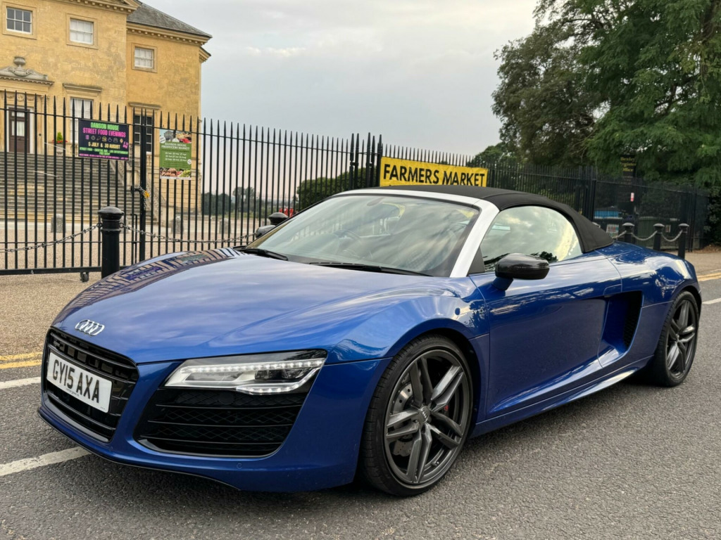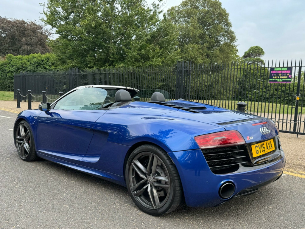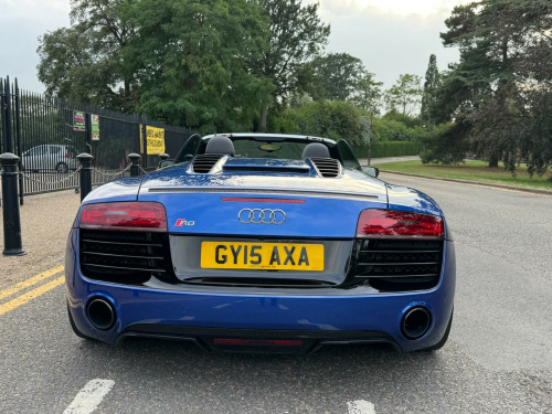 Experience the thrill of the Audi R8 FSI V10, a stunning car registered in 2015. This model comes with a full service history and will have 12 months MOT provided on purchase, ensuring it's ready for the road.Equipped with a range of features for enhanced comfort and convenience, this R8 includes electronic climate control, heated front seats, and LED headlights. Stay connected on the go with mobile telephone preparation via Bluetooth, complete with microphones and voice control.Powered by a 5.2L petrol engine and benefiting from four-wheel drive, this R8 delivers exceptional performance. The impressive acceleration, reaching 0-62mph in just 3.8 seconds, demonstrates its superior capabilities compared to similar vehicles.SLF Car Sales are pleased to offer this lovely Audi R8 V10 SPYDER in Sepang blue with only 43,805 miles on the clock. Very clean inside and out. This car comes with a 12 month MOT and full service history. This car is in immaculate condition. First to see will buy. All cars come with a standard 3 month warranty but at customers choice the warranty can be upgraded. All cars are HPI clear and have not been involved in any accidents or have any outstanding finance due. Please check out our website at www.slfcarsales.co.uk where you will see all our latest stock and our outstanding finance deals we can provideExtended Fine Nappa leather package in stitched diamond design £3,700LED headlights £2,860Engine cover in Carbon Sigma £1,350Carbon sigma door mirror trims £1,200Audi Parking System Advanced £1,070Bang & Olufsen Sound System £950Pearl effect paint £71519'' '5-arm double spoke' design alloy wheels in titanium finish £570Black styling package - Spyder £480Contoured 3-spoke leather Sports flat-bottomed multi-function steering wheel with gearshift paddles £355Tyre pressure monitoring system £275Audi Music Interface £255Cruise control £225Mobile telephone preparation - Low, Bluetooth interface and voice control with integrated seat-belt microphones £175Audi hill hold assist £90Black hood £0Sepang blue, pearl effect £0. 19in Alloy Wheels - 10-Spoke Y Design, 6.5in Display Screen, AMI - Audi Music Interface, ASR - Anti Slip Regulation, AUX-IN Socket, Aluminium-Look Pedals and Footrest, Amplifier - 5-Channel, Anti-Theft Alarm, Audi Magnetic Ride, Audi R8 Driving Experience - Initial Owner Only, Auto-Dimming Rear-View Mirror, Bang and Olufsen Sound System, Brake Lights - LED, Climate Control - Electronic, Cornering Light Function, Door Sill Trims - Aluminium with R8 Logo, EDL - Electronic Differential Lock, ESP - Electronic Stability Programme, First Aid Kit, Front Passenger Airbag Deactivation Switch, Fully Automatic Acoustic Hood with One-Touch and Key Operation, Gear Knob - Aluminium, Heated Engine Partition Window, Heated Front Seats, Immobiliser, Inlays - Matt Silk Finish Black, Interior and instrument lighting, LED Headlights, Light Package, Light and Rain Sensor Package, Lights in Footwell - LED, Mobile Telephone Preparation - Bluetooth Interface with Microphones, Pedals in Stainless Steel, Roof Lining - Black, SD Card Slots x2 - MMC, Satellite Navigation System - DVD-Based, Seat Belt Reminder, Seats - 4-way horizontal and vertical front adjustment, Seats - Front Electric Adjustment, Seats - Sports with Electrically Adjustment, Sideblades - Matched to Body Colour, Speakers x7, Spoiler - Retractable, Sport Suspension, Sun Visors - with Vanity Mirror, Tracking Preparation, Traction Control, Tyre Pressure Monitoring System, V10 Badges on Front Wings, Voice Control - Navigation, Warning Triangle, Wind Deflector, Cruise Control, Mobile Telephone Preparation - Low with Bluetooth/Microphones/Voice Control, Audi Parking System Plus with Reversing Camera, Headlights - High-Beam Assist. Full service history
