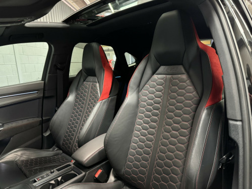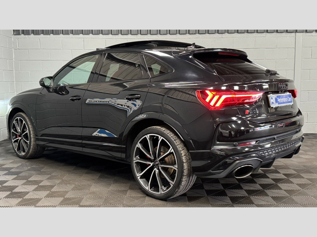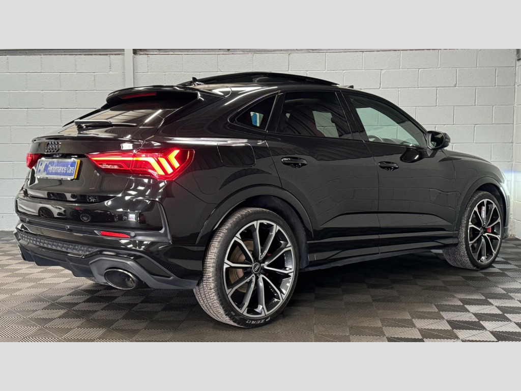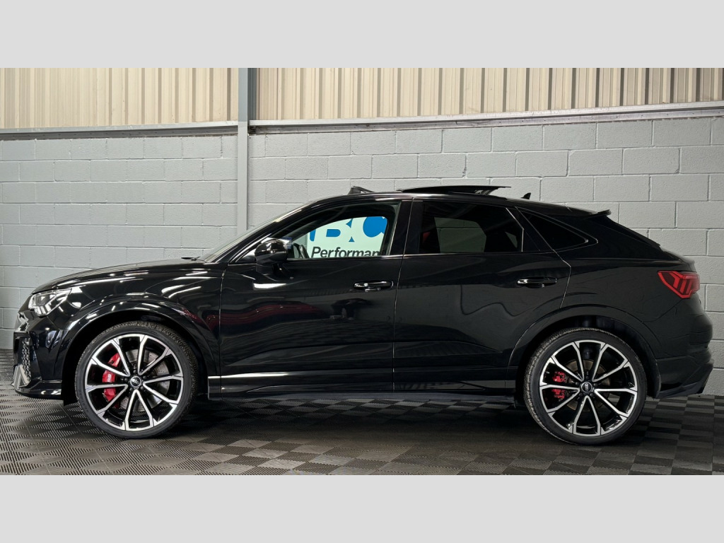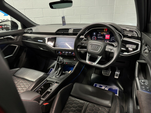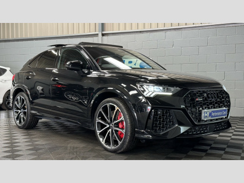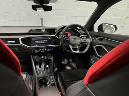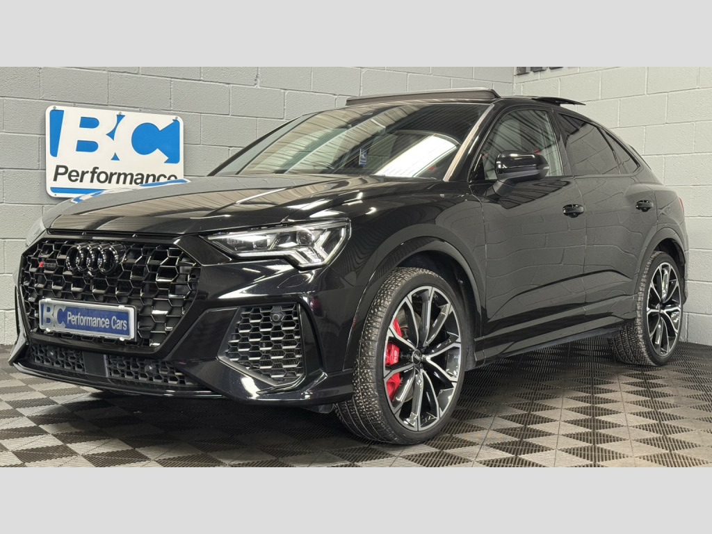2021 21 Audi RSQ3 Sportback – Audi Sport Edition, Presented in Mythos black this 1 keeper example has covered 57,000 miles , Featuring, -Comfort & Sound Package, -21 5 V Spoke Design Alloy Wheels, -Red Brake Callipers, -Tyre Pressure Monitoring System, £2270 of cost options, , Being the Sport Edition key features , -Advanced Key, -Auto Dimming Rear View Mirror, -Power Folding Mirrors, -SONOS premium Audio, -Virtual Dash, -Parking Assistance Package, -Traffic Sign Recognition, -Cruise Control With Speed Limiter, -Hill Hold Assistance, -RS Sports Exhaust, -Matrix LED Headlights, -Panoramic Glass Sunroof, -Privacy Glass, -Electrically Adjustable Seats, -Fine Nappa Leather With Honeycomb Stitch – Red/Black, -Extended Ambient Lighting Pack, , This RSQ3 retains a full record of servicing with 5 recorded services, the most recent just completed, , Supplied with 2 keys