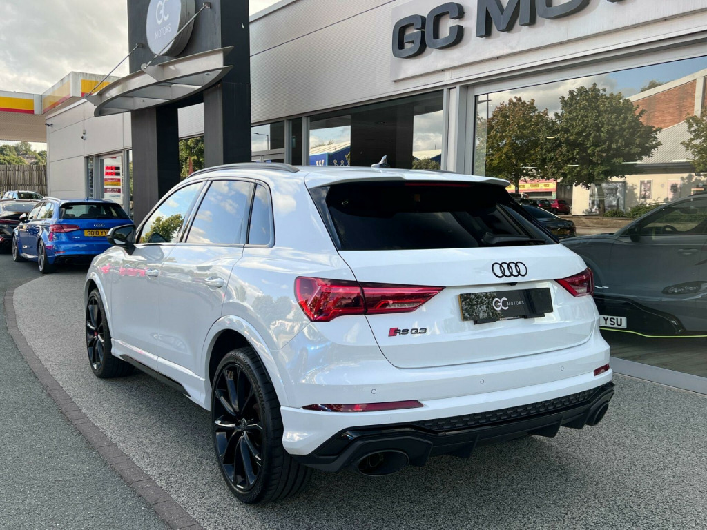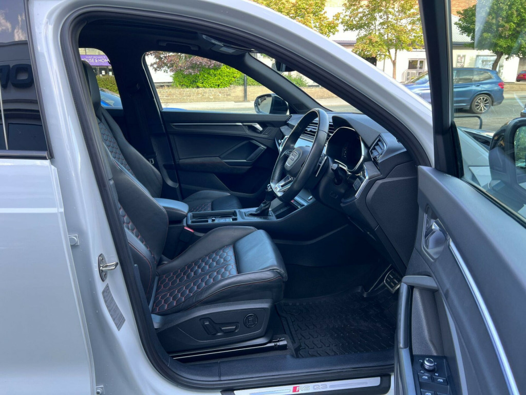 2 Owner Car.2.5 TFSI Audi Sport Edition S Tronic quattro.Factory Options: Comfort & Sound Package (SONOS Premium Sound System, Rear View Camera, Advanced Key), Brake Calipers Painted in Red with RS Logo at the Front, Black Leather & Alcantara Interior with Express Red Honeycomb Quilted Design Stitching.Standard Specification: Panoramic Glass Sunroof, Black Styling Package, Black Roof Rails, 21“ 5-V-Spoke Polygon Design Alloys in Black, RS Sports Suspension, Privacy Glass, Audi Smartphone Interface (Apple CarPlay, Android Auto), Amazon Alexa, Ambient Lighting Pack, Piano Black Inlays, Interior Elements in Black Alcantara, Front RS Sports Seats, Electrically Adjustable Front Seats, Heated Front Seats, Parking System Plus (Front & Rear Parking Aid), Cruise Control System with Speed Limiter, Audi Pre-Sense Basic, Audi Side Assist,), 3-Spoke Leather Multifunction Plus Steering Wheel with Shift Paddles, Lane Departure Warning, Cross-Traffic Assist Rear, Camera-Based Traffic Sign Recognition, Dual-Zone Electronic Climate Control, Audi Drive Select, Dark Tinted Matrix LED Headlights, LED Rear Lights, 12.3” Audi Virtual Cockpit Display, MMI Navigation Plus with 10.1” Touchscreen Display, DAB Digital Radio, Bluetooth Interface, Voice Control System, Illuminated Door Sill Trims with RS Q3 Logo at Front, Electrically Folding Adjustable Heated Door Mirrors, Power Operated Tailgate.Finished in Glacier White Metallic Paint.Pan Roof, Pano Roof, Panorama Roof, Sunroof, Glass Roof.Proudly No.1 in the UK for customer service in 2024, as awarded by AutoTrader. All our cars are HPI clear. Please contact us for your own personal video presentation of this particular car. We offer competitive finance rates with our in-house team from PCP, lease purchase and HP. Whilst we make every effort to ensure that the specification and technical information for the cars on our website is correct, some of it is supplied by. Panoramic Glass Sunroof, Black Styling Package, Black Roof Rails, 21“ 5-V-Spoke Polygon Design Alloys in Black, RS Sports Suspension, Privacy Glass, Audi Smartphone Interface (Apple CarPlay, Android Auto), Amazon Alexa, Ambient Lighting Pack, Piano Black Inlays, Interior Elements in Black Alcantara, Front RS Sports Seats, Electrically Adjustable Front Seats, Heated Front Seats, Parking System Plus (Front & Rear Parking Aid), Cruise Control System with Speed Limiter, Audi Pre-Sense Basic, Audi Side Assist, 3-Spoke Leather Multifunction Plus Steering Wheel with Shift Paddles, Lane Departure Warning, Cross-Traffic Assist Rear, Camera-Based Traffic Sign Recognition, Dual-Zone Electronic Climate Control, Audi Drive Select, Dark Tinted Matrix LED Headlights, LED Rear Lights, 12.3” Audi Virtual Cockpit Display, MMI Navigation Plus with 10.1” Touchscreen Display, DAB Digital Radio, Bluetooth Interface, Voice Control System, Illuminated Door Sill Trims with RS Q3 Logo at Front, Electrically Folding Adjustable Heated Door Mirrors, Power Operated Tailgate, Comfort & Sound Package (SONOS Premium Sound System, Rear View Camera, Advanced Key), Brake Calipers Painted in Red with RS Logo at the Front, Black Leather & Alcantara Interior with Express Red Honeycomb Quilted Design Stitching.
