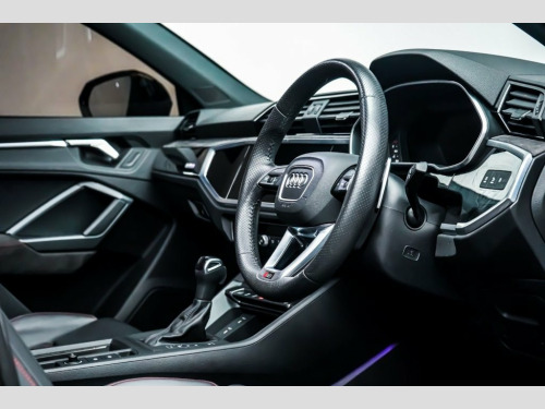 This Audi RSQ3 comes with the following specification - Sliding Panoramic roof | RS sport exhaust system | Black Styling package plus | Adaptive cruise assist | Exterior mirrors, electrically adjustable, heated and folding | Parking system plus | Audi virtual cockpit Plus | SONOS 3D premium sound system | Fine Nappa leather upholstery and trim with honeycomb pattern | Rear-View Camera | Adaptive suspension with Audi drive select | 21' Alloy wheels. 2 USB-C Ports with Charge and Data Funct, 21in Alloy Wheels - 8.5J 5-V-Spoke - Pol, 21in Alloy Wheels - 8.5J 5-V-Spoke - Pol, 4-Way Electric Lumbar Support, 6-Airbag System, Adaptive Suspension, Adjustable Rear Seat Bench-Backrest with, Advanced Key, Aluminium Look Interior Elements, Ambient Lighting Pack, Anti Theft Locking Wheel Bolts, Anti-Theft Alarm, Audi Beam, Audi Connect Infotainment Services Plus , Audi Drive Select, Audi Pre-Sense Basic, Audi Pre-Sense Front with Pedestrian and, Audi Smartphone Interface includes Wirel, Audi Sound System, Audi Virtual Cockpit - 12.3in High Resol, Auto Dimming and Frameless Rear View Mir, B and C-Pillar Trim in High-Gloss Black, Black Roof Rails, Bl