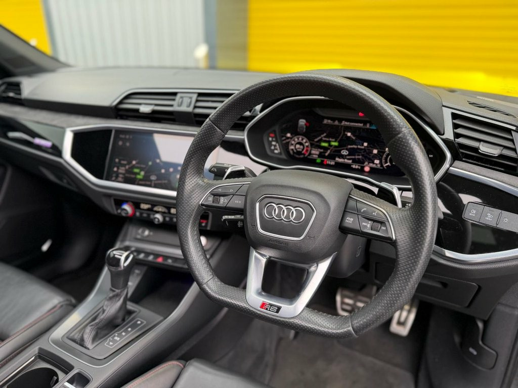 This 2020 Audi RS Q3 TFSI Audi Sport Edition boasts exceptionally low mileage for its age, having covered just 28,500 miles. This performance SUV features a powerful 2.5 litre petrol engine paired with a four wheel drive system, ensuring dynamic handling and responsiveness. As a Euro 6 compliant vehicle, it meets stringent emission standards. The Audi Sport Edition trim enhances its appeal with desirable features such as sliding panoramic sunroof, Bang & Olfusen surround speaker system, Audi Side Assist for improved awareness of your surroundings, and electric, heated front seats for added comfort during colder journeys. Experience the thrill of rapid acceleration, with the RS Q3 capable of reaching 60 miles per hour in a mere 4.5 seconds, a testament to its sporty engineering and a clear indicator of its superior performance compared to many other vehicles in its class. Further enhancing convenience and safety, this model is equipped with Parking System Plus, providing front and rear sensors with camera to assist with manoeuvring. The inclusion of a Bluetooth interface allows for seamless connectivity, while the Advanced Key system offers keyless entry for effortless access. Comfort and Sound Package, 1 x USB-C and 1 x USB-A Port with Charge, 21in Alloy Wheels - 8.5J 5-V-Spoke - Pol, 4-Way Electric Lumbar Support, 6-Airbag System, Adjustable Rear Seat Bench-Backrest with, Advanced Key, Aluminium Look Interior Elements, Ambient Lighting Pack, Anti Theft Locking Wheel Bolts, Anti-Theft Alarm, Audi Beam, Audi Connect Infotainment Services Plus , Audi Connect Safety and Service - e-call, Audi Drive Select, Audi Pre-Sense Basic, Audi Pre-Sense Front with Pedestrian and, Audi Side Assist, Audi Smartphone Interface includes Wirel, Audi Sound System, Audi Virtual Cockpit - 12.3in High Resol, Auto Dimming and Frameless Rear View Mir, B and C-Pillar Trim in High-Gloss Bla