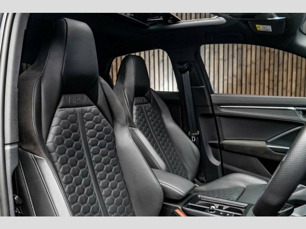 This 2021 Audi RS Q3 TFSI Audi Sport Edition offers an exhilarating driving experience with its impressive 2.5 litre petrol engine and four wheel drive system. As a Euro 6 compliant vehicle, it combines performance with efficiency. This Audi Sport Edition trim level comes equipped with a suite of advanced features designed for convenience and safety. These include the Parking System Plus, offering front and rear sensors for effortless manoeuvring, and LED headlights with dynamic rear indicators for enhanced visibility. The Light and Rain Sensor automatically adjusts headlights, while the Advanced Key provides keyless entry for seamless access.The RS Q3 is engineered for excitement, achieving a remarkable 0-62mph in just 4.5 seconds, showcasing its potent acceleration. This performance, combined with its spacious boot, makes it a versatile choice for both daily commutes and longer journeys. The Audi Smartphone Interface, featuring wireless Apple CarPlay and Android Auto, ensures you stay connected on the go. These highlights demonstrate how this particular RS Q3 stands out, offering a superior blend of speed, technology, and practicality compared to other vehicles in its class.. 1 x USB-C and 1 x USB-A Port with Charge and Data Functions, 21in Alloy Wheels - 5-V-Spoke Polygon Design in Black, 4-Way Electric Lumbar Support, 6-Airbag System, ABS - Anti-Lock Braking System, Adjustable Rear Seat Bench-Backrest with Centre Armrest and Cupholder, Advanced Key, Aluminium Look Interior Elements, Ambient Lighting Pack, Anti Theft Locking Wheel Bolts, Anti-Theft Alarm, Audi Beam, Audi Connect Infotainment Services Plus including Amazon Alexa Integration (3 Year Subscription From New), Audi Connect Safety and Service - e-call, Audi Drive Select, Audi Pre-Sense Front with Pedestrian and Cyclist Recognition, Audi Side Assist, Audi Smartphone Interface Includes Wireless Apple CarPlay, Audi Sound System, Audi Virtual Cockpit - 12.3in High Resolution LCD Display, Auto Dimming and Frameless Rear View Mirror, B and C-Pillar Trim in High-Gloss Black, Black Roof Rails, Black Styling Package, Bluetooth Interface, Body Coloured Rear Spoiler, Camera-Based Traffic Sign Recognition, Cloth Headlining in Black, Cross-Traffic Assist Rear, Cruise Control with Speed Limiter, DAB Digital Radio, Dark Tinted Matrix LED Headlights with Dynamic Front and Rear Indicators, Detail in Dashboard Around the MMI Touch Colour Display in Glass Look - Black with Surround in Aluminium Look, Door Mirrors - Electrically Folding - Adjustable and Heated with Integrated LED Side Indicators and Kerb-view Function for Passenger Side, Dual-Zone Electronic Climate Control, ESC - Electronic Stabilisation Control inc ABS - ASR and EDL, Electric Windows - Front, Electrically Adjustable Front Seats, Electromechanical Parking Brake, Electronically Operated Child Locks, Exterior Mirror Housings in Black, First Aid Kit and Warning Triangle, Flared Wheel Arches - by 10mm, Flat Slits above Singleframe Grille, Front Centre Armrest, Front RS Sports Seats, Front Spoiler Blade - Side Blades - Inserts on Door Trim Strips and Diffuser Insert in Matt Aluminium Look, Front and Rear Floor Mats, Headlights Washers, Heated Front Seats, Hill Descent Control, Hill Hold Assist, ISOFIX Child Seat Mounting for the Front Passenger Seat with Front Passenger Airbag Deactivation and ISOFIX Child Seat Mounting and Top Tether for the Outer Rear Seats, Illuminated Door Sill Trims with RS Q3 Logo at Front, Inlays - Piano Black, Interior Elements in Black Alcantara, LED Headlights with LED Daytime Running Lights and Dynamic Rear Indicator, LED Rear Lights, Lane Departure Warning, Light and Rain Sensor, Luggage Compartment Sill Protection in Stainless Steel, MMI Navigation Plus with High Resolution 10.1in Touchscreen Colour Display, Non-Smoking Package, Panoramic Glass Sunroof, Parking System Plus - Front and Rear Sensors, Pedals in Stainless Steel, Power Operated Tailgate, Pre-Sense Basic, Privacy Glass - Dark-Tinted Rear and Rear-Side Windows - From B-Pillar Backwards, Progressive Steering, RS Brake System with Brake Calipers in Black, RS Flat Bottomed Leather Multifunction Steering Wheel, RS Specific Front and Rear Bumpers, RS Sports Exhaust System, RS Sports Suspension, Radiator Grille with Honeycomb Design in Gloss Black, Seat Belt Monitoring, Start-Stop System with Recuperation, Tool Kit, Tyre Pressure Warning Light, Tyre Repair Kit, Voice Control System with Natural Language Interaction, Windscreen in Acoustic Glazing, Daytona Grey Pearl Effect.