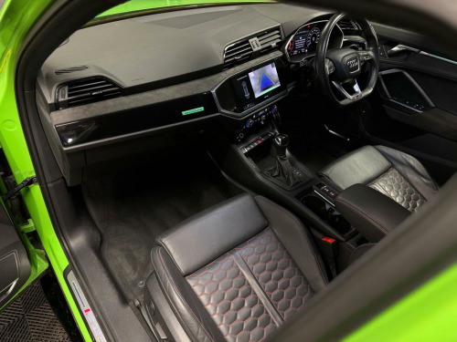 Were pleased to present this stunning Audi RSQ3, finished in Kyalami Green. Some of the features of this car include Audi Virtual Cockpit with a Brake Calipers Painted in Red with RS Logo at the Front, Leather-Alcantara - Black with Express Red Stitching Honeycomb Quilted Design, 12.3in high-resolution display, MMI Navigation Plus with a 10.1in touchscreen, Wireless Apple CarPlay via Audi Smartphone Interface, Panoramic Glass Sunroof, Dark Tinted Matrix LED Headlights with dynamic indicators, RS Sports Exhaust System, RS Sports Suspension, Audi Pre-Sense Front with pedestrian and cyclist recognition, Power Operated Tailgate, B&O Speakers and so much more. 2 keys, full service history. At CSH Performance we offer extended warranties, immobilisers and tracking devices, ceramic coating, styling kits and more - enquire with us today. All vehicles undergo comprehensive health checks and are sold with warranty packages. Contact us today to enquire - appointment only due to multiple sites. Finance available. Part exchange welcome. 01484 941105.