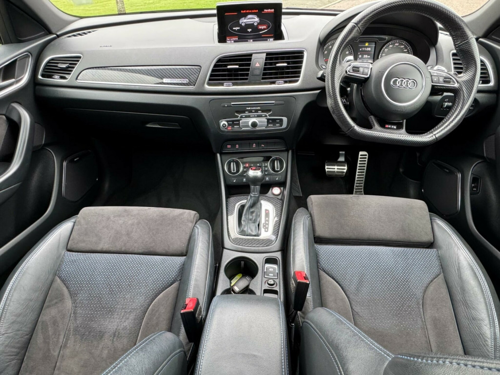 This 2016 Audi RS Q3 TFSI Performance is a rare find, having had only two owners from new, Audi being the first as a demonstrator and benefits from full dealer history. Under the bonnet, it boasts a powerful 2.5 litre petrol engine, paired with a four wheel drive system for assured handling in all conditions. This Euro 6 compliant model comes equipped with all weather LED headlights, front and rear parking sensors to aid manoeuvrability, and a Bluetooth interface for seamless mobile phone connectivity. Inside, you'll appreciate the dual zone electronic climate control, ensuring comfort for all occupants.The performance of this RS Q3 is truly exceptional, capable of accelerating from 0 to 60 miles per hour in a remarkable 4.2 seconds. This impressive acceleration highlights how this vehicle offers a more dynamic driving experience compared to many others in its class. The combination of its potent engine, advanced drivetrain, and thoughtful features makes this Audi RS Q3 a compelling choice for those seeking both practicality and exhilarating performance.. 12V Power Socket - Rear Centre Console, 20in Alloy Wheels - 5-Twin-Spoke V Design - Matt Titanium, 50 Station Memory with Dynamic Station List, 6.5in Display Screen, ABS - Anti-Lock Braking System, AMI - Audi Music Interface, ASR - Anti Slip Regulation, Advanced Key, Air Quality Sensor, Airbags - Driver, Airbags - Front Passenger, Airbags - Front Side, Airbags - Head System, Alarm - Thatcham Category 1, All Weather LED Headlights, Aluminium Look Pedals, Amplifier - 180 Watt, Amplifier - 6 Channel, Anti Theft Locking Wheel Bolts, Ashtray, Audi Drive Select, Audi Parking System Plus, Audi Sound System, Automatic Wipers with Rain Sensor, Brake Calipers - Red, Brake Lights - LED, Car Jack, Child Locks - Electric, Cloth Headlining in Black, Colour Drivers Information System - DIS, Concert Radio - MP3/CD Player, Cruise Control, Cup Holders - x2 in Centre Console, DAB Digital Radio, Door Mirrors - Automatic Kerb View Dipping Function When Reversing, Door Mirrors - Heated-Electrically Adjustable-Folding, Door Mirrors - Matt Aluminium Look Housings, Door Sill Trims - with Aluminium Insert and RSQ3 Logo, Dual-Zone Electronic Climate Control, EBD - Electronic Brakeforce Distribution, EDL - Electronic Differential Lock, ESP - Electronic Stability Programme, Efficiency Program in the Drivers Information System - DIS, Electric Windows - Front and Rear, Electrically Adjustable 4-Way Lumbar Support, Electromechanical Parking Brake, Electromechanical Power Steering, Exhaust Tailpipe - RS, First Aid Kit, Floor Mats - Front and Rear in Velour, Front Centre Armrest - Adjustable, Front Passenger Airbag Deactivation Switch, Front Sports Seats, Full European Map Data, Funnel-Shaped Air Intake Frame - Matt Alumunium Look, Gear Knob - Perforated Leather with RS Selector Logo, Glovebox - Illuminated, Headlights - Automatic Activation, Headlights - Automatic Dynamic Range Control, Headlights - Coming-Leaving Home Function, Heated Front Seats, Heated Windscreen Washer Jets, Hydraulic Brake Assist, ISOFIX Child Seat Mounting for Front Passenger, ISOFIX Child Seat Preparation for Rear Seats with Top Tether, Inlays - Carbon with Blue Thread, Interior Lighting, LED Daytime Running Lights, LED Interior Light Package, LED Rear Indicators, LED Rear Lights, Mobile Telephone Preparation - Bluetooth Interface, Parking Sensors - Front, Power Operated Tailgate, Privacy Glass, RS Body Styling, RS Sports Suspension, Radiator Grille - Single Frame - Honeycomb Design Grid in High Gloss Black, Rear Parking Sensors, Remote Central Locking with 2 Fold Away Keys, Reversible Luggage Compartment Floor, SDHC Card Reader x2, Satellite Navigation System - SD Card Based, Seat Belt Reminder, Seats - Front Height Adjustment, Smoking Package, Speakers x10, Speed-Dependant Volume Control, Split-Folding Rear Seats, Spoiler - Roof - RS Models - Body Coloured, Stainless Steel Loading Sill Protector, Steering Wheel - 3-Spoke Perforated Leather-Flat Bottomed-RS Q3-Contrast Honeycomb Stitching in Blue, Steering Wheel - Aluminium Look Paddle Shift, Steering Wheel - Height and Reach Adjustable, Steering Wheel - Multi-function, Storage Compartment Under Load Floor, Subwoofer, Sunband for Windscreen, TP Memo - Automatically Saves Traffic News, Through-Load Facility, Titanium Styling Package, Tool Kit, Towbar Preparation, Trip Computer, Tyre Mobility System, Tyre Pressure Monitoring System, Voice Control - Telephone, Warning Triangle, Washer Fluid Level Indicator.