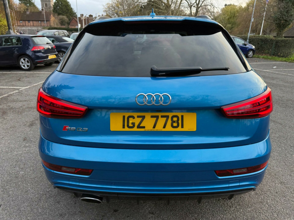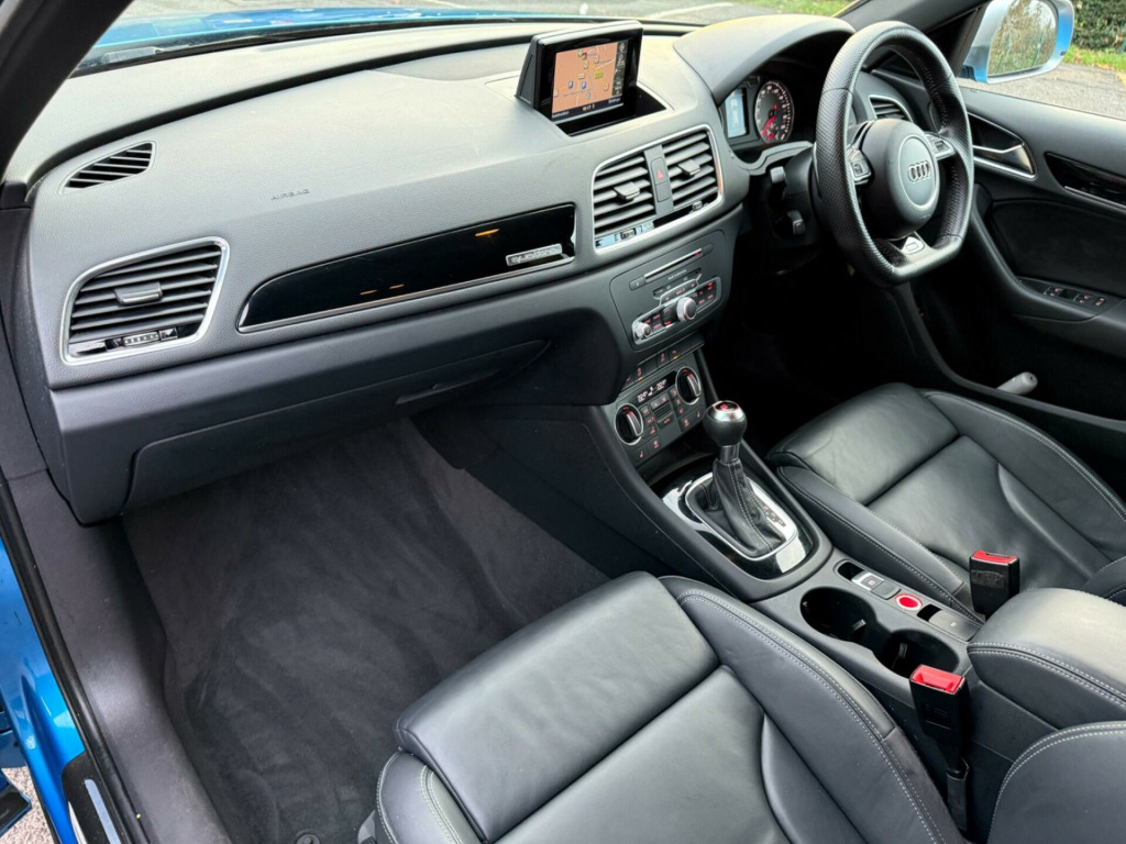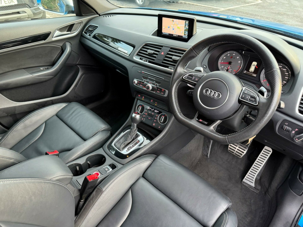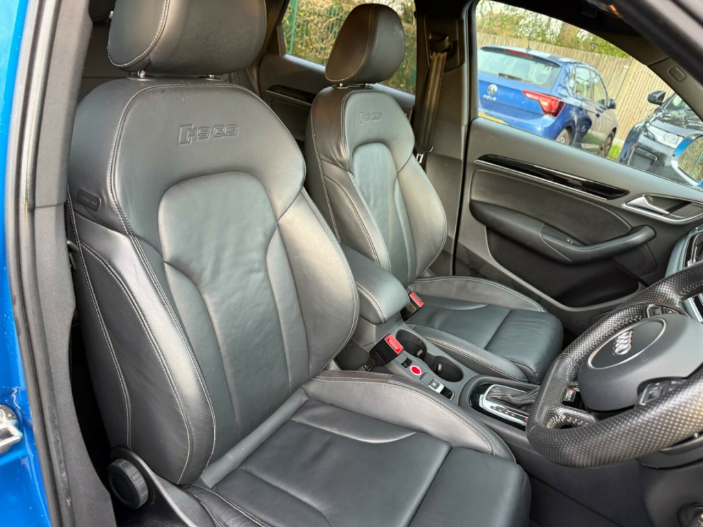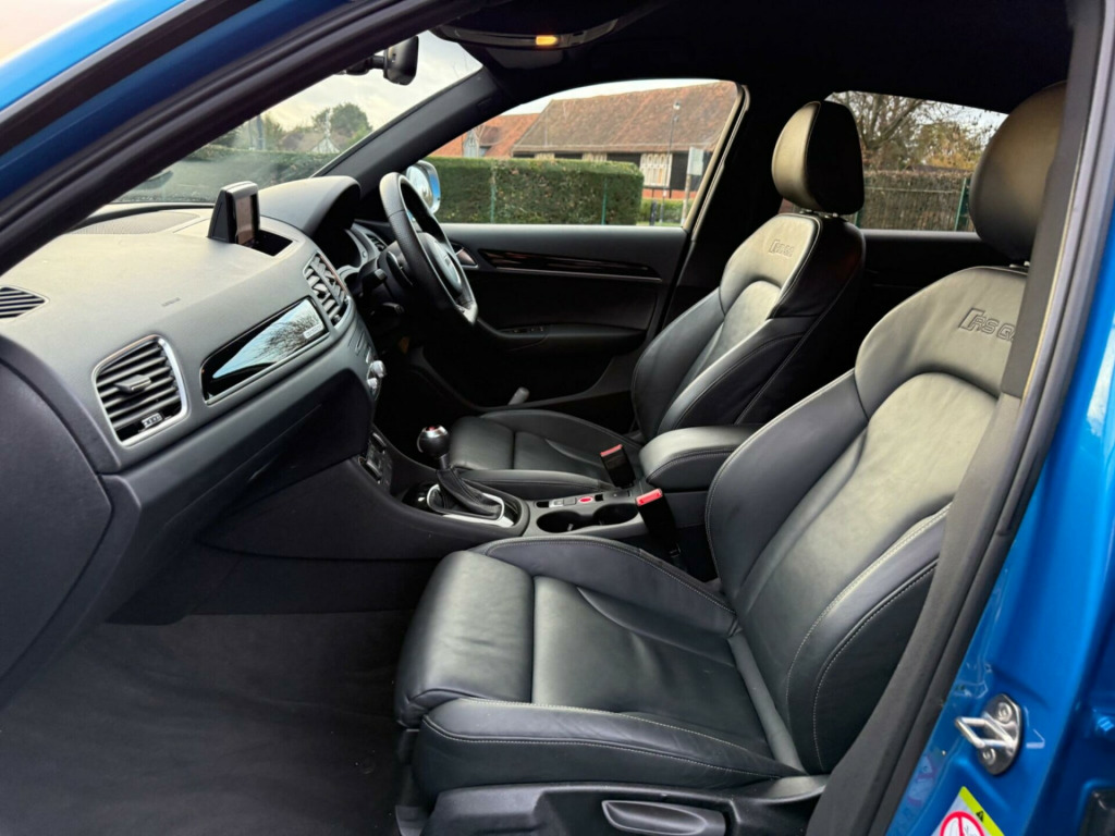 Great Specification, Full Leather with Heated Seats, Large Screen Tech Pack with Colour Reversing Camera, Electric Tailgate, Cruise Control, Electric Folding-Parking Mirrors, 20'' Alloy Wheels, ''Xenon'' Headlamps with Headlight Wash, Front and Rear Visual-Audio Parking Sensors, Only Two Former Keepers from New, Audi Service History until 2022, MOT November 2026, Two Keys, Satellite Navigation, DAB Digital Radio, Bluetooth Hands Free Phone System, Paddle Shift Controls, Selective Drive Modes with Sport Mode, LED Driving Lights, Front and Rear Visual/Audio Parking Sensors, Stop Start Technology, Auto Hold Handbrake, Media Pack with USB and Aux Connection, Multi-function Steering Wheel, Privacy Glass, Air Conditioning-Duel Digital Climate Control, Electric Windows, Electric Heated Mirrors, Electric Folding-Parking Mirrors, Remote Central Locking, Auto Headlamps, Auto Dimming Rear View Mirror, Folding Rear Seats, Isofix, Trip Computer Immobiliser, Only Two Former Keepers from New, Audi Service History until 2022, MOT November 2026, Two Keys, Excellent Condition, All Vehicles Multi-point Checked and HPi Clear, Part Exchange Welcome, Finance Arranged, All Major Credit/Debit Cards Accepted, Warranty, Ruislip Middx HA4 8JR. uise control, black roof rails, fine nappa leather - black/rock grey stitching rs q3 logo, technology package, audi parking system advanced with reversing camera, auto-dimming rear-view mirror, 12v power socket - rear centre console, 20in alloy wheels - 5-twin-spoke v design, 50 station memory with dynamic station list, 6.5in display screen, abs - anti-lock braking system, ami - audi music interface, asr - anti slip regulation, air quality sensor, airbags - driver, airbags - front passenger, airbags - front side, airbags - head system, alarm - thatcham category 1, all weather led headlights, aluminium look pedals, amplifier - 180 watt, amplifier - 6 channel, anti theft locking wheel bolts, ashtray, audi drive select, audi parking system plus, audi sound system, automatic wipers with rain sensor, brake calipers - high-gloss black with rs logo, brake lights - led, car jack, child locks - electric, cloth headlining in black, colour drivers information system - dis, concert radio - mp3/cd player, cup holders - x2 in centre console, dab digital radio, door mirrors - automatic kerb view dipping function when reversing, door mirrors - heated-electrically adjustable-folding, door mirrors - matt aluminium look housings, door sill trims - with aluminium insert and rsq3 logo, dual-zone electronic climate control, ebd - electronic brakeforce distribution, edl - electronic differential lock, esp - electronic stability programme, efficiency program in the drivers information system - dis, electric windows - front and rear, electrically adjustable 4-way lumbar support, electromechanical parking brake, electromechanical power steering, exhaust tailpipe - rs, first aid kit, floor mats - front and rear in velour, front centre armrest - adjustable, front passenger airbag deactivation switch, front sports seats, full european map data, funnel-shaped air intake frame - matt alumunium look, gear knob - perforated leather with rs selector logo, glovebox - illuminated, headlights - automatic activation, headlights - automatic dynamic range control, headlights - coming-leaving home function, headlights washers, heated front seats, heated windscreen washer jets, hydraulic brake assist, isofix child seat mounting for front passenger, isofix child seat preparation for rear seats with top tether, inlays - piano finish - black, interior lighting, led daytime running lights, led rear indicators, led rear lights, matt aluminium styling package, mobile telephone preparation - bluetooth interface, parking sensors - front, power operated tailgate, preparation for sd card-based navigation system, privacy glass, rs body styling, rs logo and one-piece trim frame in matt aluminium look, rs sports suspension, radiator grille - single frame - honeycomb design grid in high gloss black, radiator grille frame - matt aluminium look, rear diffuser - high gloss black, rear parking sensors, remote central locking with 2 fold away keys, reversible luggage compartment floor, roof rails in matt aluminium, sdhc card reader x2, satellite navigation system - sd card based, seat belt reminder, seats - backrests - contrast stitching in rock grey and rsq3 logo, seats - front height adjustment, side air intake funnels - matt alumunium look, smoking package, speakers x10, speed-dependant volume control, split-folding rear seats, spoiler - roof - rs models - body coloured, stainless steel loading sill protector, steering wheel - 3-spoke perforated leather/flat bottomed/rs q3/contrast stitching in rock grey, steering wheel - aluminium look paddle shift, steering wheel - height and reach adjustable, steering wheel - multi-function, storage compartment under load floor, subwoofer, sunband for windscreen, tp memo - automatically saves traffic news, tool kit, towbar preparation, trip computer, tyre mobility system, tyre pressure monitoring system, voice control - telephone, warning triangle, washer fluid level indicator, quattro logo in high gloss black
