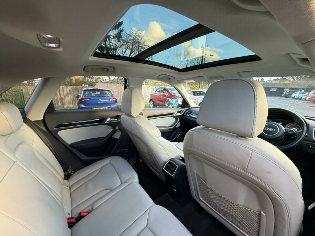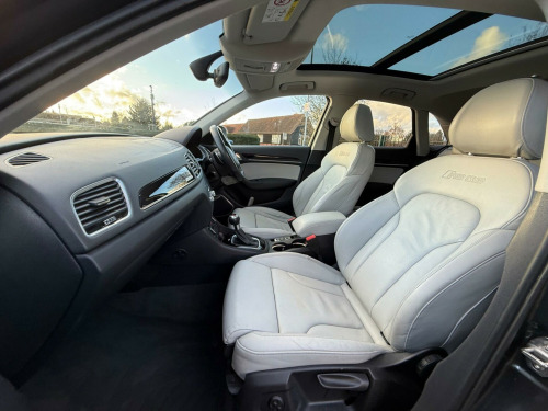 di parking system advanced with reversing camera, bose surround sound system, panoramic glass sunroof, technology package, fine nappa leather - lunar grey/rock grey stitching rs q3 logo, advanced key, cruise control, auto-dimming rear-view mirror, door mirrors - heated-electrically adjustable-folding-auto-dimming drivers, 12v power socket - rear centre console, 20in alloy wheels - 5-twin-spoke v design - black matt high gloss, 50 station memory with dynamic station list, 6.5in display screen, abs - anti-lock braking system, ami - audi music interface, asr - anti slip regulation, air quality sensor, airbags - driver, airbags - front passenger, airbags - front side, airbags - head system, alarm - thatcham category 1, all weather led headlights, aluminium look pedals, amplifier - 180 watt, amplifier - 6 channel, anti theft locking wheel bolts, ashtray, audi drive select, audi parking system plus, audi sound system, automatic wipers with rain sensor, brake calipers - black, brake lights - led, car jack, child locks - electric, cloth headlining in black, colour drivers information system - dis, concert radio - mp3/cd player, cup holders - x2 in centre console, dab digital radio, door mirrors - automatic kerb view dipping function when reversing, door mirrors - heated-electrically adjustable-folding, door mirrors - matt aluminium look housings, door sill trims - with aluminium insert and rsq3 logo, dual-zone electronic climate control, ebd - electronic brakeforce distribution, edl - electronic differential lock, esp - electronic stability programme, efficiency program in the drivers information system - dis, electric windows - front and rear, electrically adjustable 4-way lumbar support, electromechanical parking brake, electromechanical power steering, exhaust tailpipe - rs, first aid kit, floor mats - front and rear in velour, front centre armrest - adjustable, front passenger airbag deactivation switch, front sports seats, full european map data, funnel-shaped air intake frame - matt alumunium look, gear knob - perforated leather with rs selector logo, glovebox - illuminated, headlights - automatic activation, headlights - automatic dynamic range control, headlights - coming-leaving home function, heated front seats, heated windscreen washer jets, hydraulic brake assist, isofix child seat mounting for front passenger, isofix child seat preparation for rear seats with top tether, inlays - piano finish - black, interior lighting, led daytime running lights, led rear indicators, led rear lights, matt aluminium styling package, mobile telephone preparation - bluetooth interface, parking sensors - front, power operated tailgate, privacy glass, rs body styling, rs logo and one-piece trim frame in matt aluminium look, rs sports suspension, radiator grille - single frame - honeycomb design grid in high gloss black, radiator grille frame - matt aluminium look, rear diffuser - high gloss black, rear parking sensors, remote central locking with 2 fold away keys, reversible luggage compartment floor, roof rails in matt aluminium, sdhc card reader x2, satellite navigation system - sd card based, seat belt reminder, seats - backrests - contrast stitching in rock grey and rsq3 logo, seats - front height adjustment, side air intake funnels - matt alumunium look, smoking package, speakers x10, speed-dependant volume control, split-folding rear seats, spoiler - roof - rs models - body coloured, stainless steel loading sill protector, steering wheel - 3-spoke perforated leather/flat bottomed/rs q3/contrast stitching in rock grey, steering wheel - aluminium look paddle shift, steering wheel - height and reach adjustable, steering wheel - multi-function, storage compartment under load floor, subwoofer, sunband for windscreen, tp memo - automatically saves traffic news, tool kit, towbar preparation, trip computer, tyre mobility system, tyre pressure monitoring system, voice control - telephone, warning triangle, washer fluid level indicator, quattro logo in high gloss black