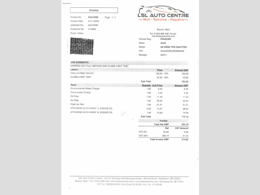 With an exceptionally low mileage of just 59,998 miles for its 2014 registration, this Audi RS Q3 TFSI presents a compelling proposition. This four wheel drive model is powered by a potent 2.5 litre petrol engine, offering a dynamic driving experience. It comes with an MOT valid until November 2026, providing peace of mind for the coming years. Inside, you'll find comfort and convenience with heated front seats and dual zone electronic climate control, ensuring a pleasant environment for all occupants. Parking is made easier thanks to the Audi Parking System Plus, which includes front and rear sensors, and the Bluetooth interface allows for seamless mobile telephone preparation. The Bi-Xenon Plus headlights provide excellent visibility in all conditions. The performance of this RS Q3 is truly noteworthy, with an impressive 0-60mph acceleration time of just 5.5 seconds. This rapid acceleration demonstrates how this particular vehicle excels compared to many others in its class. The combination of its powerful engine, advanced four wheel drive system, and sophisticated Audi technology makes this RS Q3 a standout choice for those seeking both performance and practicality in an SUV. 12V Power Socket, 12V Power Socket - Rear, 20in Alloy Wheels - 5-Twin-Spoke V Desig, 50 Station Memory with Dynamic Station L, 6.5in Display Screen, ABS - Anti-Lock Braking System, AMI - Audi Music Interface, ASR - Anti Slip Regulation, Air Quality Sensor, Airbags - Driver, Airbags - Front Passenger, Airbags - Front Side, Airbags - Head System, Alarm - Thatcham Category 1, Aluminium Look Pedals, Aluminium-Effect Door Mirror Housings, Amplifier - 180 Watt, Anti Theft Locking Wheel Bolts, Ashtray, Audi Drive Select, Audi Parking System Plus, Audi Sound System, Brake Calipers - High-Gloss Black with R, Brake Lights - LED, Car Jack, Child Locks - Electric, Cloth Headlining in Black, Colour Drive