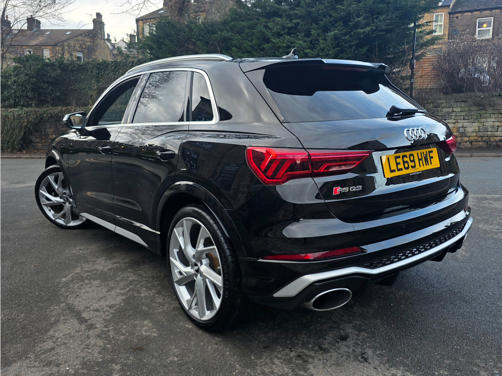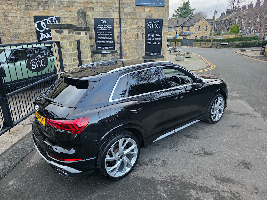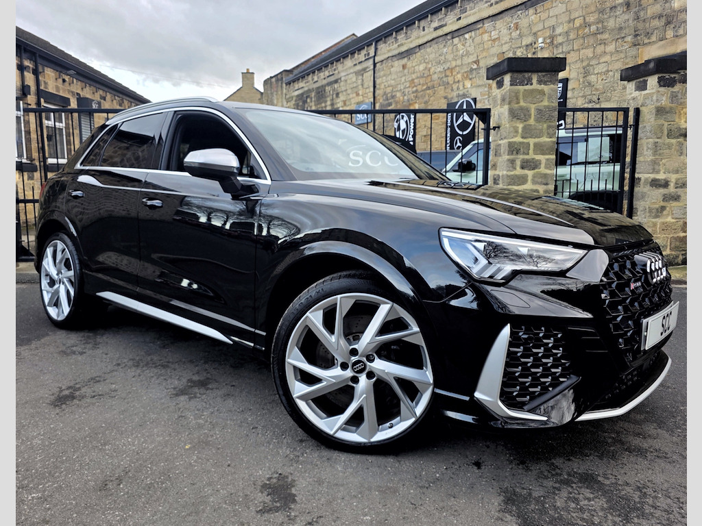 Audi RS Q3 2.5 TFSI Quattro – Full Audi History | RS Sports SUV £37,495 Full Audi Service History COMFORT & SOUND PACKAGE RS SPORTS EXHAUST DRIVER ASSISTANCE PACKAGE 21 INCH UPGRADED ALLOYS Turn heads everywhere with this Audi RS Q3, a compact performance SUV that packs the thrill of an RS sports car into a practical, everyday package. Finished in a bold style with RS valved sports exhaust, RS Sports Suspension, and aggressive styling pack, this RS Q3 isn’t just a car — it’s an experience. Every drive is accompanied by the roaring RS exhaust note, delivering that unmistakable RS adrenaline rush. Performance & Driving Thrill RS Sports Suspension – razor-sharp handling and precise cornering RS valved sports exhaust – dynamic, head-turning sound on demand Audi Drive Select – tailor your drive from Comfort to Dynamic for track-ready performance Continental SC6 tyres with 6mm+ tread – ready to grip every twist and turn Technology & Premium Features Bang & Olufsen 19-speaker sound system – crystal-clear, immersive audio Matrix LED headlights with adaptive/bending function – maximum visibility and iconic RS look Adaptive Cruise Control – effortless motorway cruising Keyless Entry & Start – convenience with a premium feel Gloss Black Interior Trim & Styling Pack – sporty, sophisticated cabin atmosphere 4-zone climate control – comfort for all passengers Non-sunroof model – lower centre of gravity for sportier feel Safety & Peace of Mind Full Audi service history, meticulously maintained at main dealer Multiple airbags and ABS – Anti-Lock Braking System Advanced Audi safety features to keep you in control This RS Q3 delivers compact SUV practicality with full-blown RS sports DNA — aggressive styling, powerful performance, and tech-laden luxury in one irresistible package. 3 Owners, 2 keys, Full AUDI service record to press. Last serviced by Hereford Audi on the 10.02.2025 oil and inpspection service. 14.12.2023 oil change, brake fluid, pollen filters, final drive oil and Haldex coupling. service. 30.12.2022 Inspection. 20.12.2022 oil change service. 07.01.2022 inspection with oil change service, pollen filter and a brake fluid change. 15.01.2021 recall campaign. 15.01.2021 oil change service. 27.01.2020 pre delivery and new car check. Don’t miss out — call 01943 884551 today to arrange a test drive or discuss finance options with our team at SCC Leeds, Guiseley. 1 x USB-C and 1 x USB-A Port with Charge and Data Functions,4-Way Electric Lumbar Support,6-Airbag System,ABS - Anti-Lock Braking System,Adjustable Rear Seat Bench-Backrest with Centre Armrest and Cupholder,Advanced Key,Aluminium Look Interior Elements,Aluminium Roof Rails,Aluminium Window Trims,Ambient Lighting Pack,Anti Theft Locking Wheel Bolts,Anti-Theft Alarm,Audi Beam,Audi Connect Infotainment Services Plus including Amazon Alexa Integration (3 Year Subscription From New),Audi Connect Safety and Service - e-call,Audi Drive Select,Audi Pre-Sense Front with Pedestrian and Cyclist Recognition,Audi Side Assist,Audi Smartphone Interface Includes Wireless Apple CarPlay,Audi Virtual Cockpit - 12.3in High Resolution LCD Display,Auto Dimming and Frameless Rear View Mirror,B and C-Pillar Trim in High-Gloss Black,Bluetooth Interface,Body Coloured Rear Spoiler,Camera-Based Traffic Sign Recognition,Cloth Headlining in Black,Cross-Traffic Assist Rear,Cruise Control with Speed Limiter,DAB Digital Radio,Detail in Dashboard Around the MMI Touch Colour Display in Glass Look - Black with Surround in Aluminium Look,Door Mirrors - Electrically Folding - Adjustable and Heated with Integrated LED Side Indicators and Kerb-view Function for Passenger Side,Dual-Zone Electronic Climate Control,ESC - Electronic Stabilisation Control inc ABS - ASR and EDL,Electric Windows - Front,Electrically Adjustable Front Seats,Electromechanical Parking Brake,Electronically Operated Child Locks,Exterior Mirror Housings in Aluminium Look,First Aid Kit and Warning Triangle,Flared Wheel Arches - by 10mm,Flat Slits above Singleframe Grille,Front Centre Armrest,Front RS Sports Seats,Front Spoiler Blade - Side Blades - Inserts on Door Trim Strips and Diffuser Insert in Matt Aluminium Look,Front and Rear Floor Mats,Headlights Washers,Heated Front Seats,Hill Descent Control,Hill Hold Assist,ISOFIX Child Seat Mounting for the Front Passenger Seat with Front Passenger Airbag Deactivation and ISOFIX Child Seat Mounting and Top Tether for the Outer Rear Seats,Illuminated Door Sill Trims with RS Q3 Logo at Front,Inlays - Aluminium Race - Anthracite,Interior Elements in Black Alcantara,LED Headlights with LED Daytime Running Lights and Dynamic Rear Indicator,LED Rear Lights,Lane Departure Warning,Light and Rain Sensor,Luggage Compartment Sill Protection in Stainless Steel,MMI Navigation Plus with High Resolution 10.1in Touchscreen Colour Display,Non-Smoking Package,Parking System Plus - Front and Rear Sensors,Pedals in Stainless Steel,Power Operated Tailgate,Pre-Sense Basic,Privacy Glass - Dark-Tinted Rear and Rear-Side Windows - From B-Pillar Backwards,Progressive Steering,RS Brake System with Brake Calipers in Black,RS Flat Bottomed Leather Multifunction Steering Wheel,RS Specific Front and Rear Bumpers,RS Sports Suspension,Radiator Grille with Honeycomb Design in Gloss Black,Seat Belt Monitoring,Start-Stop System with Recuperation,Tool Kit,Tyre Pressure Warning Light,Tyre Repair Kit,Voice Control System with Natural Language Interaction,Windscreen in Acoustic Glazing,Audi Sound System,Mythos Black,21in Alloy Wheels - 5-V-Spoke Polygon Design in Titanium Grey with Diamond Cut Finish,Comfort and Sound Package,RS Sports Exhaust System,Leather-Alcantara - Black with Black Stitching Honeycomb Quilted Design,Driver Assistance Package
