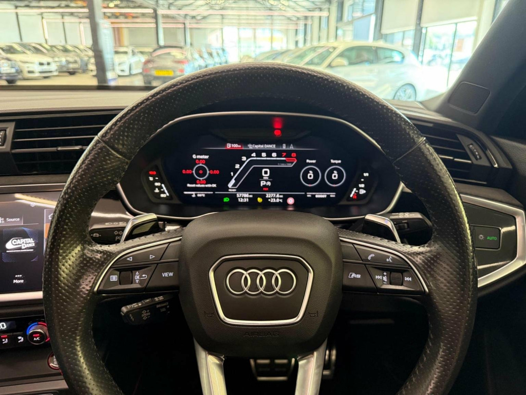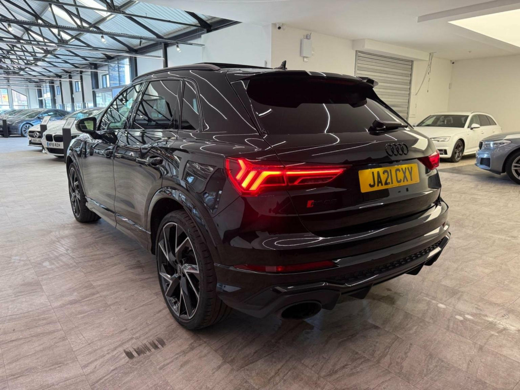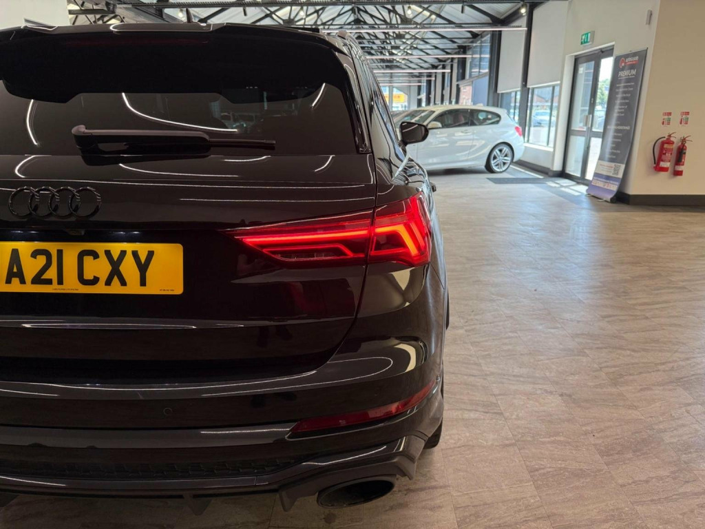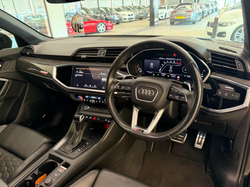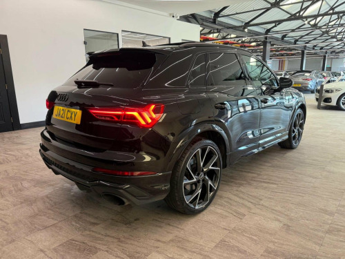 Boasting a full service history and a clear vehicle history check, this 2021 Audi RS Q3 TFSI Vorsprung represents excellent provenance. This four wheel drive model is powered by a 2.5 litre petrol engine and meets Euro 6 emission standards. It comes equipped with the desirable Vorsprung trim, offering a suite of notable features including the Audi Smartphone Interface with Wireless Apple CarPlay and Android Auto, a Bang and Olufsen 3D Sound System for an immersive audio experience, and Parking System Plus with front and rear sensors for effortless manoeuvring. The 3 Zone Electronic Climate Control ensures comfort for all occupants, while the Light and Rain Sensor automatically manages headlights and wipers. This Audi RS Q3 is designed for performance and practicality, with a remarkable 0-62mph acceleration time of just 4.5 seconds, setting it apart from many similar vehicles. The large boot space provides ample room for luggage or shopping, making it a versatile choice for families and adventurers alike. With its MOT valid until May 2026 and the last service completed on 18th June 2025 at 56,122 miles, this vehicle is well maintained. A 3 month warranty is also included, offering peace of mind for the new owner.