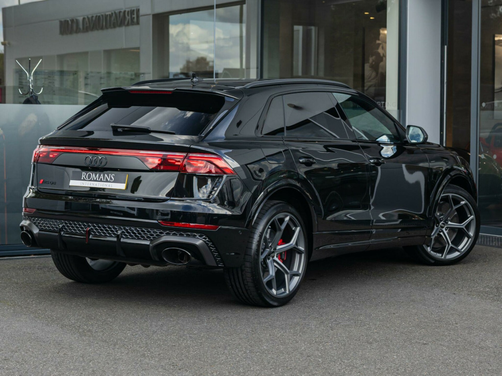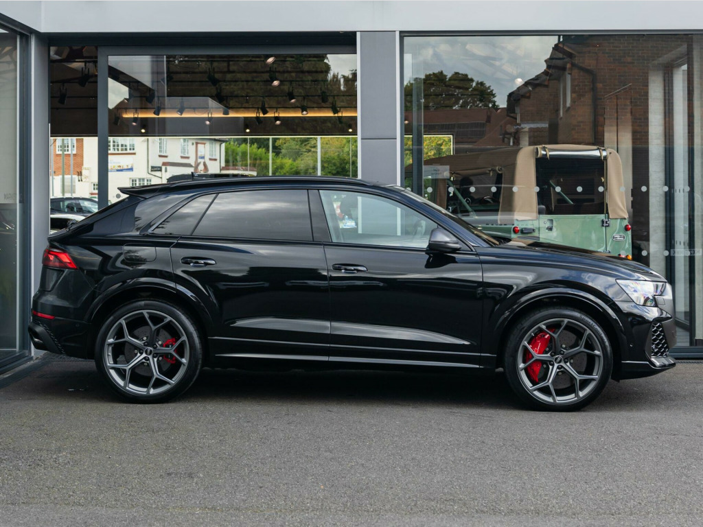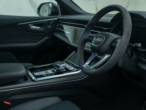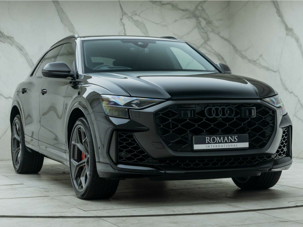 Finished in Mythos Black Metallic Paint with Black/Red Leather & Alcantara - Highly Desirable 'Performance Carbon Vorsprung' Example - 1 Owner From New - Desirably Equipped with RS Design Pack - Red - Audi Manufacturer's Warranty until January 2028 - UK SuppliedOptional Extras:23-Inch 5-Y-Spoke Wheels in Matt GreyMythos Black Metallic PaintRS Design Pack - Red (Including: Upper & Lower Interior Elements with Controls in Alcantara & Leather + Black Seat Belts with Red Edge + Floor Mats with RS Logo)Red Brake CalipersBlack Roof RailsStandard Features:Black Appearance Package PlusCity Assist Package (Including: Audi Pre-Sense Front & Rear + Audi Side Assist + Front Cross Traffic Assist)Bang & Olufsen Premium 3D Sound SystemDAB RadioMatt Carbon Exterior Mirror HousingsPanoramic Glass SunroofPark Assist Package with Remote Park Assist Plus (Including: 360 Camera + Parking Assist with Parking System Plus + Multi-Function Camera)RS Ceramic Braking SystemRS Sports Exhaust SystemTour Package (Including: Multi-Function Camera + Adaptive Cruise Control with Speed Limiter + Camera-Based Traffic Sign Recognition + Lane Departure Warning with Emergency Assist). 23-Inch 5-Y-Spoke Wheels in Matt Grey, Mythos Black Metallic Paint, RS Design Pack - Red, Red Brake Calipers, Black Roof Rails.