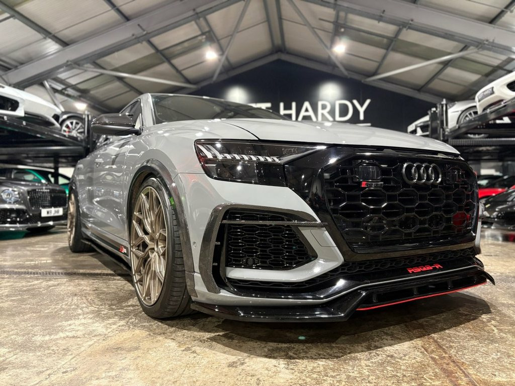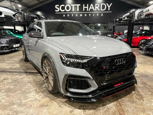 Scott Hardy are proud to present this stunning AUDI RSQ8 finid=shed in nardo grey. Command attention with this one-of-a-kind Audi RSQ8, finished in stealthy Nardo Grey and sculpted for dominance. Equipped with a full Maxton carbon exterior kit and an RSQ8-R front splitter, its aggressive stance is matched only by its roar—courtesy of a full Milltek exhaust system with downpipe. Sitting on 23" RIVIERA alloy wheels in dusty bronze and enhanced with adjustable lowering links, this beast adapts to any terrain with style and precision. It's not just an SUV—it's a statement of power, precision, and prestige. Nardo Grey, 22in Alloy Wheels - 10-Spoke Star Design, 4-Way Lumbar Support for Front Seats, 4-Zone Automatic Air Conditioning, AMI - Audi Music Interface, Advanced Key, Air Quality Pack, All-Wheel Steering, Aluminium Look Door Mirror Housings, Aluminium Window Trims, Anti-Theft Alarm with Tow-Away Protectio, Anti-Theft Wheel Bolts and Wheel Looseni, Audi Beam, Audi Connect (3 Year Subscription From N, Audi Connect Safety and Service - e-call, Audi Connect with Amazon Alexa Integrati, Audi HD Matrix LED Headlights in RS Spec, Audi Pre-Sense Front, Audi Smartphone Interface, Audi Sound System, Audi Virtual Cockpit - 12.3in High Resol, Auto Dimming and Frameless Rear View Mir, Black Cloth Headl