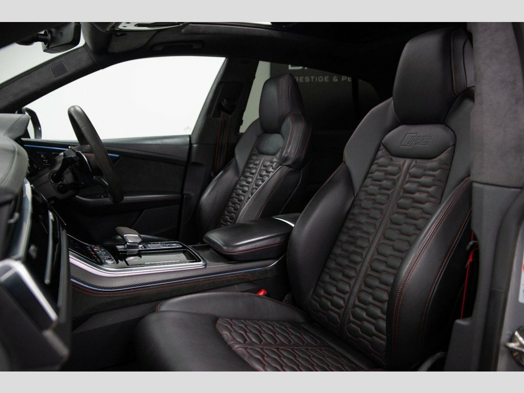 Baytree are delighted to offer for sale this exceptional September 2022 registered Audi RSQ8 4.0 TFSI V8 Vorsprung elegantly presented in Nardo Grey with a sleek Black Leather Interior, featuring a set of striking 23" Five Spoke Black Painted Alloy Wheels. This vehicle has travelled a mere 25,740 miles. This Audi boasts an impressive array of features, some of which include: Carbon Twill Interior Inlays, Red Painted Brake Calipers with RS Logo, Heated and Cooled Front Seats with Heated Rear Seats, Sliding Glass Panoramic Sunroof, Bang & Olufsen Sound System, plus much more. For further details or to schedule a viewing, don't hesitate to contact us. Perforated Valcona Leather - Super Sport, Red Paint Brake Calipers with RS Logo, Inlays - Carbon Twill, Nardo Grey, 2 USB-C Ports with Charging Functionalit, 23in Alloy Wheels - 5-Y-Spoke Rotor Desi, 4-Way Lumbar Support for Front Seats, 4-Zone Automatic Air Conditioning, AMI - Audi Music Interface, Adaptive Windscreen Wipers with Integrat, Advanced Key, Air Quality Pack, All-Wheel Steering, Anthracite Black Door Mirrors, Anthracite Black Styling Pack, Anti-Theft Alarm with Tow-Away Protectio, Anti-Theft Wheel Bolts and Wheel Looseni, Audi Beam, Audi Connect (3 Year Subscription From N, Audi Connect Safety and Service - e-call, Audi Connect with Amazon Alexa Integrati, Audi HD Matrix LED Hea