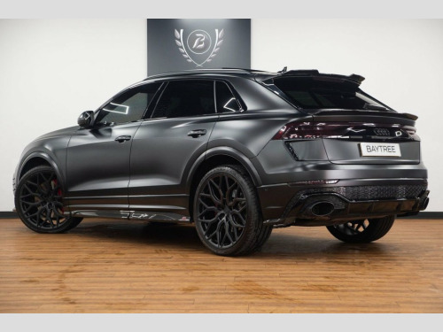 Baytree are delighted to offer for sale this exceptional July 2023 registered Audi RSQ8 4.0 TFSI V8 Vorsprung, elegantly presented in Mythos Black (Satin PPF), with a sleek Black Leather Interior and a set of striking 23" URBAN Black Alloy Wheels. This vehicle has travelled 13,388 miles. This car has been transformed by URBAN with many exterior features, of which include: Front bumper apron in visual carbon fibre, Front vent eyebrow blades in visual carbon fibre, Lower side sill extensions in visual carbon fibre, Upper rear wing assembly in visual carbon fibre, Lower deck lid spoiler in visual carbon fibre, Rear canards in visual carbon fibre. This Audi boasts an impressive array of features, some of which include: Matrix LEDs, RS Sport Exhaust System, Bang and Olufsen Sound System, RS Adaptive Air Suspension, plus much more. For further details or to schedule a viewing, don't hesitate to contact us. Ghost Immobiliser, Rear canards in visual carbon fibre, Lower deck lid spoiler in visual carbon , Upper rear wing assembly in visual carbo, Lower side sill extensions in visual car, Front vent eyebrow blades in visual carb, Front bumper apron in visual carbon fibr, Mythos Black, 2 USB-C Ports with Charging Functionalit, 4-Way Lumbar Support for Front Seats, 4-Zone Automatic Air Conditioning, AMI - Audi Music Interface, Adaptive Windscreen Wipers with Integrat, Advanced Key, Air Quality Pack, All-Wheel Steering, Anthracite Black Door Mirrors, Anthracite Black Styling Pack, Anti-Theft Alarm with Tow-Away Protectio, Anti-Theft Wheel Bolts and Wheel Looseni, Audi Beam, Audi Connect (3 Year Subsc