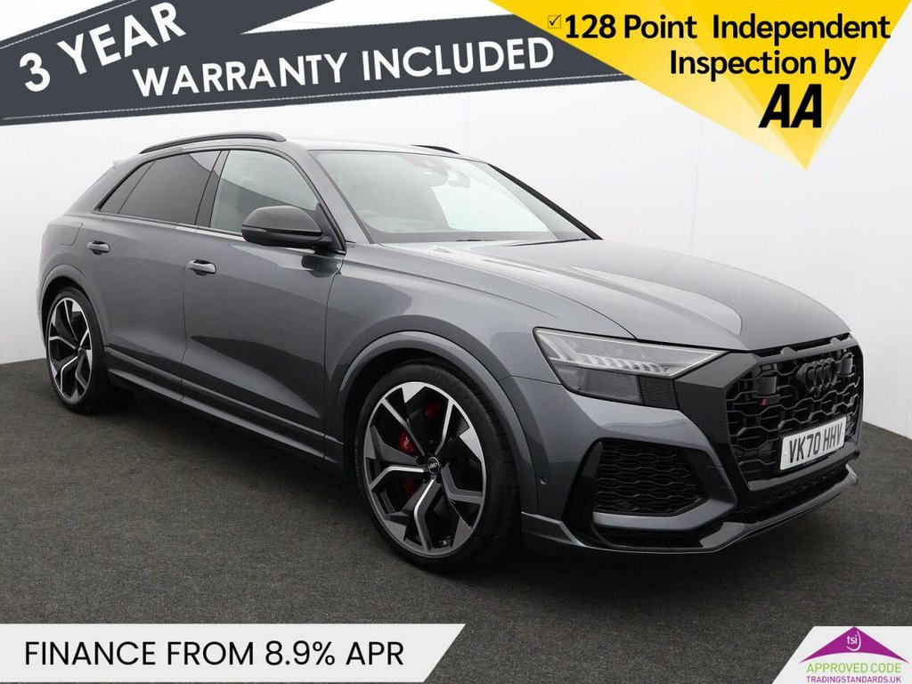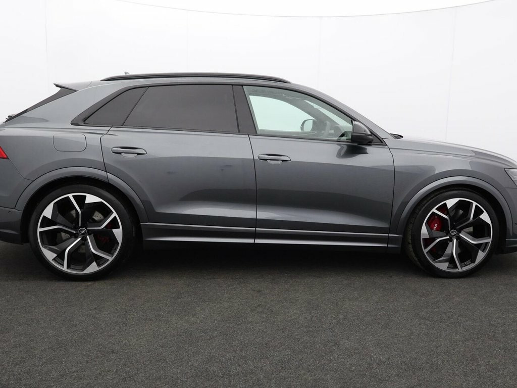 Oakwood Motor Company are delighted to offer this exceptional Audi RSQ8 4.0 TFSI V8 Vorsprung SUV, finished in the striking Daytona Grey. Boasting a full Audi service history, this high-performance SUV combines exhilarating power with cutting-edge technology and luxurious comfort. The exterior is enhanced by 23-inch 5-Y-Spoke Rotor Design alloy wheels in Gloss Anthracite Black with a Diamond Finish, black roof rails, carbon door mirrors, RS-specific styling, and a Titanium Black Styling Pack. The RS Sport Exhaust System, RS Adaptive Air Suspension, and quattro All-Wheel Drive with Sport Differential ensure an outstanding driving experience. Inside, the RS Front Super Sport Seats in perforated Valcona leather with RS embossing provide supreme comfort with seat ventilation, a massage function, and memory settings. Additional highlights include a panoramic glass sunroof, extended LED interior lighting, black Alcantara headlining, and power-operated doors with soft-close functionality. Technology is at the heart of this RSQ8, featuring Audi's Virtual Cockpit, MMI Navigation Plus, Audi Phone Box with wireless charging, and the premium Comfort and Sound Package. A host of advanced driver assistance systems, including Adaptive Cruise Assist, Audi Side Assist, a 360-degree camera, Park Assist, a Head-Up Display, and Audi Pre-Sense, ensure both convenience and safety. Completing this exceptional package are All-Wheel Steering, RS Steel Brakes with black calipers, and RS Comin AMI - Audi Music Interface, Audi Music Interface in the Rear, Audi Phone Box with Wireless Charging, Audi Smartphone Interface, Audi Virtual Cockpit - 12.3in High Resol, DAB Digital Radio, MMI Navigation Plus including MMI Touch, Audi Connect, Titanium Black Door Mirrors, Red Paint Brake Calipers with RS Logo, 23in Alloy Wheels - 5-Y-Spoke Rotor Desi, Black Roof Rails, Door Mirrors - Electrically Adjustable -, Panoramic Glass Sunroof, Carbon Door Mirrors, Privacy Glass - Dark-Tinted Rear and Rea, Windshield with Heat Insulated Glass, RS Specific Bumpers in Full Body Colour, RS Specific Styling, Titanium Black Styling Pack, RS Sport Exhaust System, RS Manhattan Grey Front Spoiler Lip and , RS
