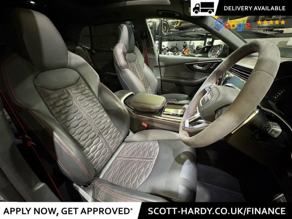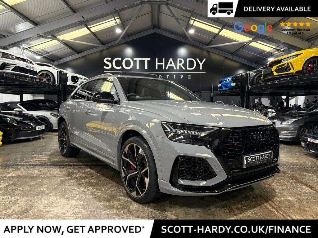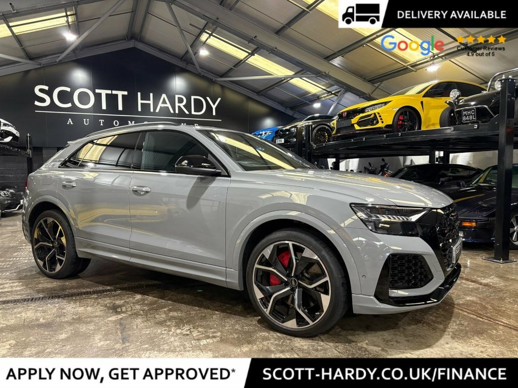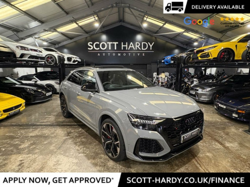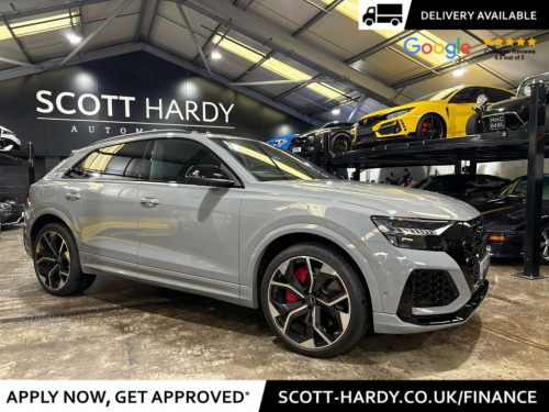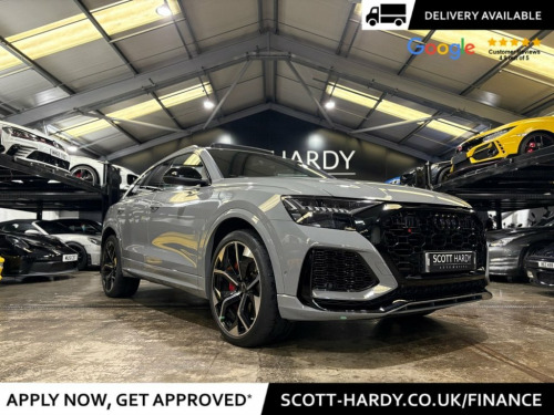 Scott hardy automotive are proud to present this stunning AUDI RSQ8 Vorsprung finished in Nardo grey. In a world where presence is everything, the RSQ8 Vorsprung doesn't just arrive — it dominates. Drenched in the bold elegance of Nardo Grey, this SUV coupe is the embodiment of stealth luxury and track-born performance. key options on this example are adaptive air suspension and active roll stabilization for uncompromised control, Audi Virtual Cockpit and dual touchscreen MMI — intelligent, intuitive, immersive, Bang & Olufsen 3D Premium Sound — turn every drive into a private concert, matrix LED headlights with dynamic indicators — sleek vision, night or day, diamond-stitched Valcona leather. Carbon fibre inlays. Panoramic sunroof, driver assistance at its peak — with adaptive cruise, lane assist, and night vision. This isn't just an SUV. It's Audi's boldest expression of power, precision, and progress. Vorsprung durch Technik, fully unleashed. Black Roof Rails, Nardo Grey, Red Paint Brake Calipers with RS Logo, 2 USB-C Ports with Charging Functionalit, 23in Alloy Wheels - 5-Y-Spoke Rotor Desi, 4-Way Lumbar Support for Front Seats, 4-Zone Automatic Air Conditioning, AMI - Audi Music Interface, Adaptive Windscreen Wipers with Integrat, Advanced Key, Air Quality Pack, All-Wheel Steering, Anthracite Black Door Mirrors, Anthracite Black Styling Pack, Anti-Theft Alarm with Tow-Away Protectio, Anti-Theft Wheel Bolts and Wheel Looseni, Audi Beam, Audi Connect - 3 Year Subscription, Audi Connect Safety and Service - e-call, Audi Connect with Amazon Alexa Integrati, Audi HD Matrix LED Headlights in RS Spec, Audi Music Interface in the Rear,
