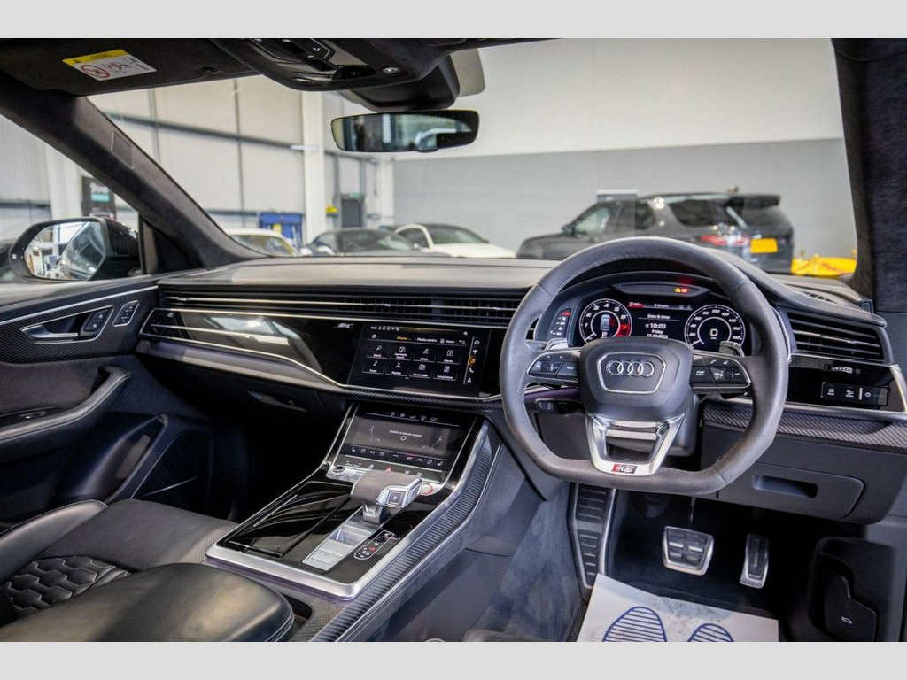 This 2020 Audi RS Q8 4.0 TFSI V8 Vorsprung SUV 5dr Petrol Tiptronic qua is currently available for £76,990 in Peterborough Cambridgeshire with Petrol engine and Automatic gearbox. For more information or to arrange a viewing, click here to send us an email using form below.