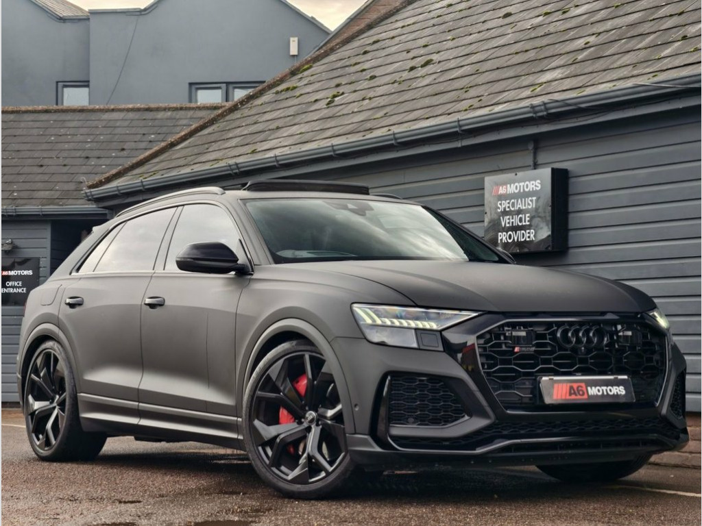 SAME DAY FINANCE AVAILABLE WITH £0 DEPOSIT. CALL OUR FINANCE TEAM FOR A QUOTATION TODAY. REQUEST A PERSONALISED VIDEO TODAY. STUNNING AUDI RSQ8 VORSPRUNG EDITION BOASTING A FULL SERVICE HISTORY & COMPLIMENTED BY A HUGE FACTORY SPEC FURTHER BENEFITING FROM HAVING A SATIN WRAP DONE. A LOVELY LOOKING RSQ8 THAT CERTAINLY STANDS OUT FROM THE CROWD. SUPPLIED HPI CLEAR & WITH A NATIONWIDE WARRANTY. GOOD CONDITION THROUGH OUT. TO BE SERVICED PRIOR TO SALE BY AUDI MAIN DEALER. Red Paint Brake Calipers with RS Logo, Black Roof Rails, 23in Alloy Wheels - 5-Y-Spoke Rotor Desi, 360 Degree Camera, 4-Way Lumbar Support for Front Seats, 4-Zone Automatic Air Conditioning, AMI - Audi Music Interface, Adaptive Cruise Assist, Adaptive Windscreen Wipers with Integrat, Advanced Key, Air Quality Pack, All-Wheel Steering, Anti-Theft Alarm with Tow-Away Protectio, Anti-Theft Wheel Bolts and Wheel Looseni, Audi Beam, Audi Connect, Audi Connect Safety and Service - e-call, Audi HD Matrix LED Headlights in RS Spec, Audi Music Interface in the Rear, Audi Phone Box with Wireless Charging, Audi Pre-Sense Front, Audi Pre-Sense Rear, Audi Side Assist, Audi Smartphone Interface, Audi Virt