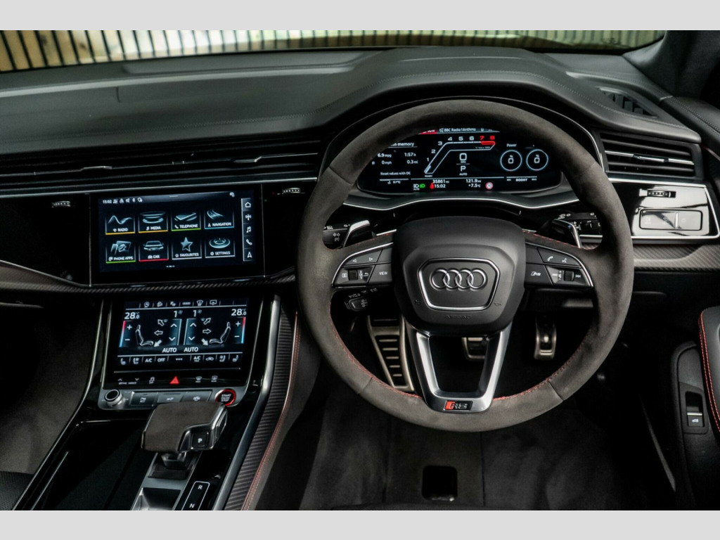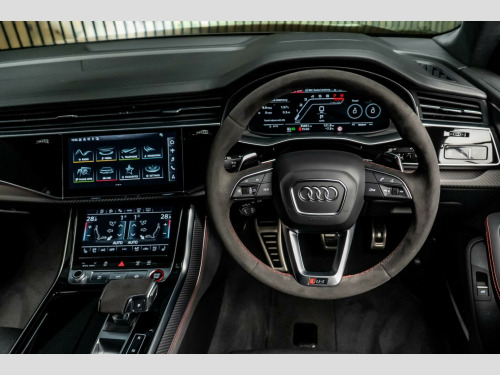 This 2023 Audi RSQ8 TFSI V8 Vorsprung is a remarkable example of performance and luxury. As a Euro 6 compliant vehicle, it boasts a powerful 4.0 litre petrol engine paired with a four wheel drive system, ensuring dynamic handling and impressive acceleration from 0 to 62mph in just 3.8 seconds. This particular Vorsprung trim level comes equipped with a suite of advanced features designed to enhance your driving experience, including a Head Up Display, 4 Zone Automatic Air Conditioning for personalised comfort, and an Advanced Key for seamless keyless entry. The driver and front passenger seats offer memory functions for electrically adjustable settings, while the City Assist Pack, featuring Blind Spot Assistance, adds an extra layer of safety and convenience.Beyond its impressive performance figures, the Audi RSQ8 offers exceptional practicality. Its large boot space makes it ideal for accommodating luggage, shopping, or sporting equipment, proving its versatility for everyday life and adventures. With a substantial towing weight of 3500 kg, this vehicle is more than capable of handling your towing needs. These carefully selected features and capabilities demonstrate how this RSQ8 stands out from other vehicles in its class, offering a superior combination of speed, comfort, technology, and utility.. 2 USB-C Ports with Charging Functionality in the Rear, 23in Alloy Wheels - 5-Y-Spoke Rotor Design - Gloss Anthracite Black with Diamond Finish, 4-Way Lumbar Support for Front Seats, 4-Zone Automatic Air Conditioning, AMI - Audi Music Interface, Adaptive Windscreen Wipers with Integrated Washer Jets, Advanced Key, Air Quality Pack, All-Wheel Steering, Anthracite Black Door Mirrors, Anthracite Black Styling Pack, Anti-Theft Alarm with Tow-Away Protection, Anti-Theft Wheel Bolts and Wheel Loosening Warning, Audi Beam, Audi Connect (3 Year Subscription From New), Audi Connect Safety and Service - e-call, Audi Connect with Amazon Alexa Integration, Audi HD Matrix LED Headlights in RS Specific Design with Dynamic Front and Rear Indicators, Audi Music Interface in the Rear, Audi Smartphone Interface, Audi Virtual Cockpit - 12.3in High Resolution LCD Display, Auto Dimming and Frameless Rear View Mirror, Black Dinamica Headlining, City Assist Pack, Comfort Front Centre Armrest, Comfort and Sound Package, DAB Digital Radio, Door Mirrors - Electrically Adjustable - Heated - Folding - Automatically Dimming with Memory Function and Integrated LED Indicators with Kerb View Function for Passenger Side, Double Sun Visor, Driver - Front Passenger - Front Side and Curtain Airbag System, Driver and Front Passenger Memory Function for the Electrically Adjustable Front Seats, ESC - Electronic Stabilisation Control inc ABS - ASR and EDL, Electric Sunblinds for the Rear Side Windows and Manual Sunblind for the Rear Window, Electric Windows - Front, Electromechanical Active Roll Stabilisation, Electromechanical Parking Brake, Electromechanical Power Steering, Extended LED Interior Lighting Package - Multi-Coloured, Exterior Audi Rings and RS Q8 Logos with Gloss Black Finish, First Aid Kit and Warning Triangle, Head-Up Display, Headlight Washers, Hill Descent Control, Hill Hold Assist, ISOFIX Child Seat Mounting for Front Passenger, Illuminated Door Sill Trims with RS Logo, Inlays - Polished Oak with Grey Finish, Lane Departure Warning, Light and Rain Sensor, Luggage Compartment Sill Protection in Stainless Steel, MMI Navigation Plus including MMI Touch, Natural Voice Recognition, Operating Buttons in Black - Glass Look, Panoramic Glass Sunroof, Parking System Plus with 360 Degree Display - Front - Rear and Side Sensors, Pedals in Stainless Steel, Power Door Closure, Power Operated Tailgate, Privacy Glass - Dark-Tinted Rear and Rear-Side Windows - From B-Pillar Backwards, RS 3-Spoke Heated Leather Multi-function Sport Steering Wheel with RS Mode Button, RS Adaptive Air Suspension, RS Audi Drive Select, RS Badges on the Front Wings, RS Coming-Leaving Home Animations in Front and Rear, RS Front Super Sport Seats with RS embossed Logo in Valcona leather, RS Manhattan Grey Front Spoiler Lip and Rear Diffuser Insert, RS Specific Bumpers in Full Body Colour, RS Specific Styling, RS Sport Exhaust System, RS Steel Brakes with Black Calipers with RS Logo, RS Styling Package - Grey, Rear Bench Seat Plus, Seat Belt Monitoring, Seat Ventilation and Massage Function for Front Seats, Signature LED Daytime-Running Lights, Standard Pedestrian Protection Measures, Steering Column - Electrically Adjustable with Memory, Tool Kit, Tour Pack, Tyre Pressure Loss Indicator, Tyre Repair Kit, Upper and Lower Interior Elements in Leather, Windshield with Heat Insulated Glass, quattro All-Wheel Drive with Sport Differential, RS Styling Pack - Red, Red Paint Brake Calipers with RS Logo, Inlays - Carbon Twill, Black Roof Rails.