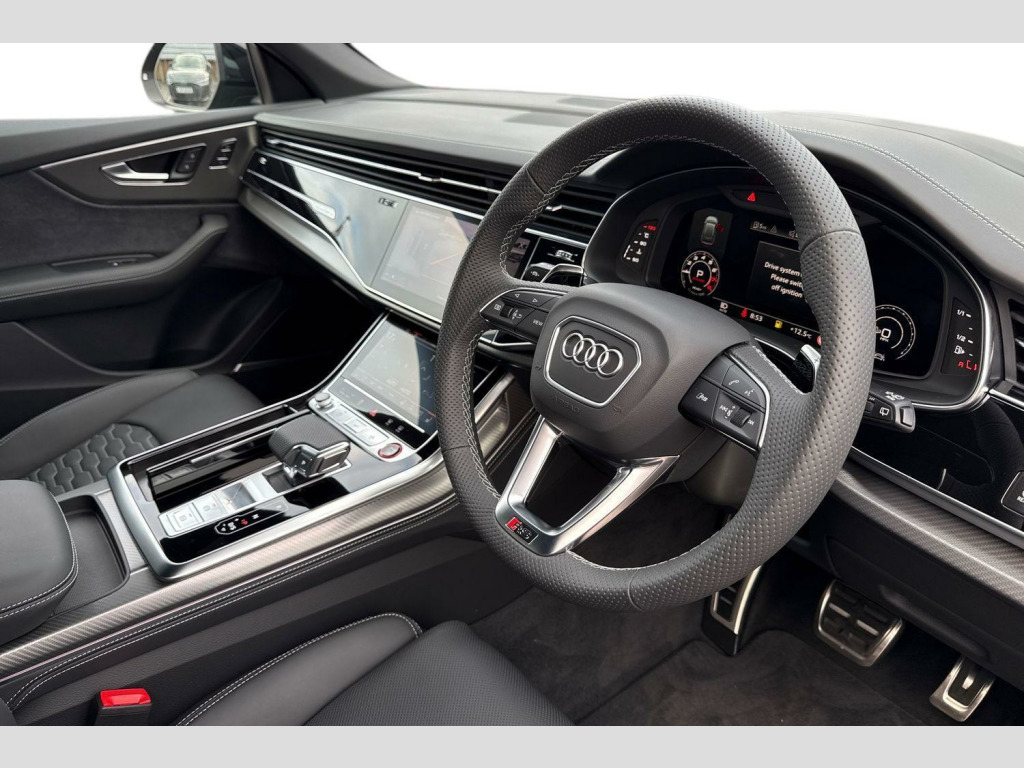 Perforated Valcona Leather - Super Sport Seats - Black with Black Stitching, 22in Alloy Wheels - 10-Spoke Star Design - Galvano Silver, 360 Degree Camera, 4-Way Lumbar Support for Front Seats, 4-Zone Automatic Air Conditioning, AMI - Audi Music Interface, Air Ioniser and Aromatization, All-Wheel Steering, Anti-Theft Alarm, Anti-Theft Wheel Bolts and Wheel Loosening Warning, Audi Connect Navigation and Infotainment (3 Year Subscription From New), Audi Connect Safety and Service - e-call, Audi Connect with Amazon Alexa Integration, Audi HD Matrix LED Headlights with Audi Laser Light, Audi Phone Box Light, Audi Pre-Sense Front, Audi Smartphone Interface, Audi Virtual Cockpit, Auto Dimming and Frameless Rear View Mirror, Bang and Olufsen 3D Premium Sound System, Black Cloth Headlining, Black Styling Package Plus, Camera Based Traffic Sign Recognition, Comfort Front Centre Armrest, Convenience Key, Cruise Control with Speed Limiter, DAB Digital Radio, Door Mirrors - Electrically Adjustable - Heated - Folding - Automatically Dimming with Memory Function and Integrated LED Indicators with Kerb View Function for Passenger Side, Double Sun Visor, Driver - Front Passenger - Front Side and Curtain Airbag System, Driver and Front Passenger Memory Function for the Electrically Adjustable Front Seats, ESC - Electronic Stabilisation Control inc ABS - ASR and EDL, Electric Sunblinds for the Rear Side Windows and Manual Sunblind for the Rear Window, Electric Windows - Front, Electromechanical Active Roll Stabilisation, Electromechanical Power Steering, Extended LED Interior Lighting Package - Multi-Coloured, Exterior Mirror Housings in Black, First Aid Kit and Warning Triangle, Front Seat Ventilation, Front and Rear Floor Mats, Head-Up Display, Headlight Washers, Heated Front Seats, Hold Assist, ISOFIX Child Seat Mounting for Front Passenger, Illuminated Door Sill Trims with RS Logo, Inlays - Aluminium Race, LED Entry Lights - Front and Rear, Lane Departure Warning, MMI Navigation Plus including MMI Touch, Natural Voice Recognition, Operating Buttons in Black - Glass Look, Parking System Plus with 360 Degree Display - Front - Rear and Side Sensors, Pedals in Stainless Steel, Power Operated Tailgate, Privacy Glass - Dark-Tinted Rear and Rear-Side Windows - From B-Pillar Backwards, RS 3-Spoke Heated Leather Multi-function Sport Steering Wheel with Shift Paddles and RS Mode Button, RS Adaptive Air Suspension, RS Audi Drive Select, RS Badges on the Front Wings, RS Coming-Leaving Home Animations in Front and Rear, RS Manhattan Grey Front Spoiler Lip and Rear Diffuser Insert, RS Specific Bumpers in Full Body Colour, RS Specific Styling, RS Steel Brakes with Black Calipers with RS Logo, Rear Bench Seat Plus, Seat Belt Monitoring, Signature LED Daytime-Running Lights, Standard Pedestrian Protection Measures, Steering Column - Electrically Adjustable with Memory, Tool Kit, Tyre Pressure Loss Indicator, Tyre Repair Kit, Upper and Lower Interior Elements in Leather, Windshield with Heat Insulated Glass, quattro All-Wheel Drive with Sport Differential